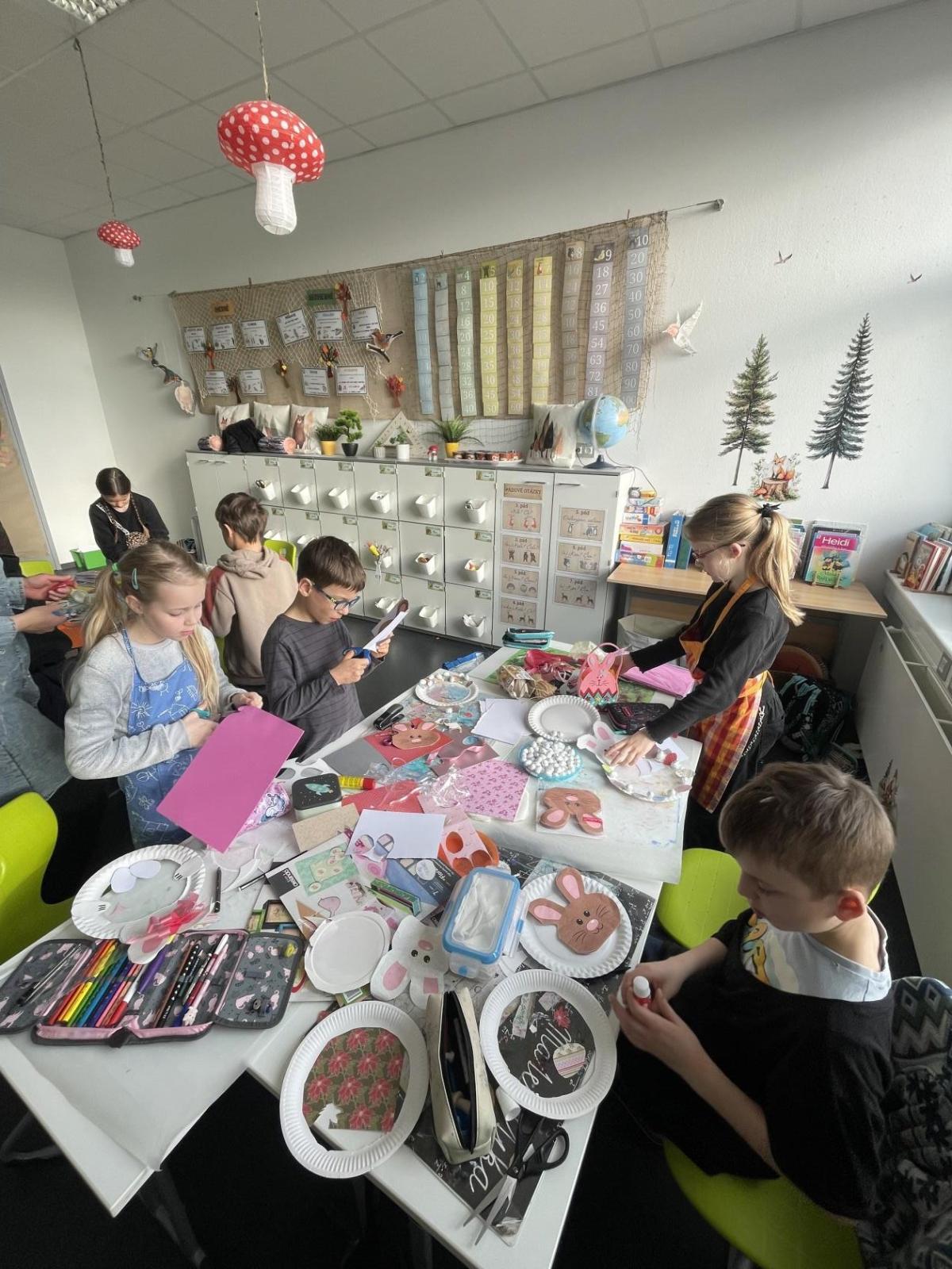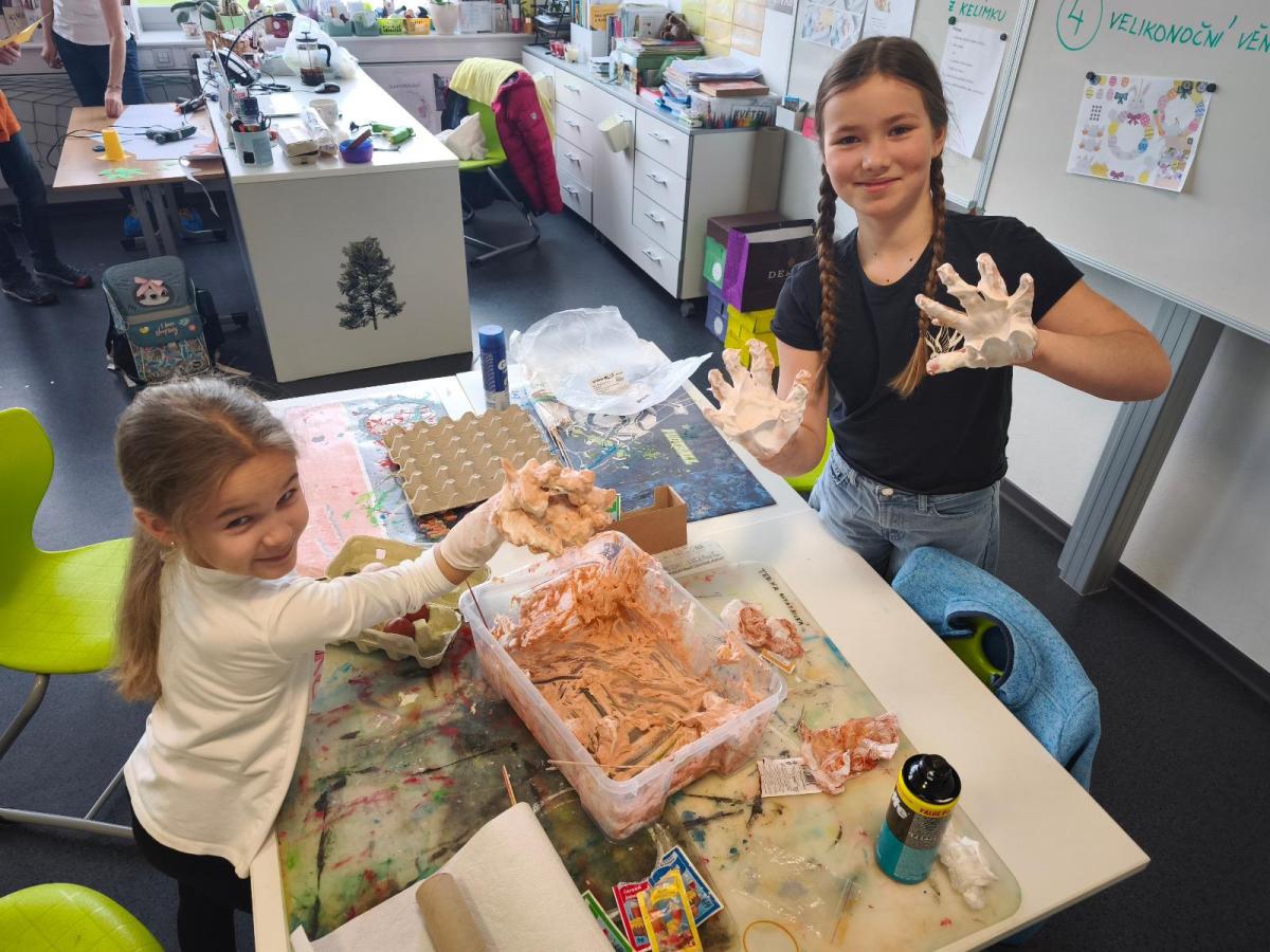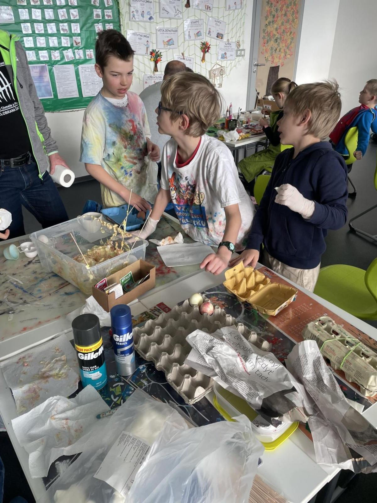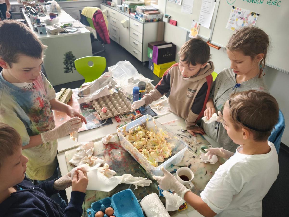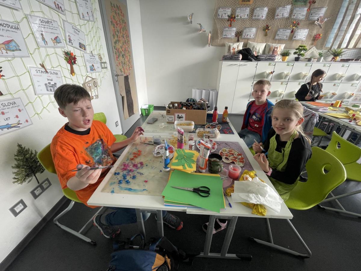 Vrcholnou akcí našeho březnového tvoření byly velikonoční tvořivé dílny, na kterých se k nám připojili i rodiče. Velmi si vážíme pomoci paní Bušové, Hubové, pana Petráše a Milfaitových, kteří se aktivně zapojili a pomohli vytvořit příjemnou a přátelskou atmosféru.