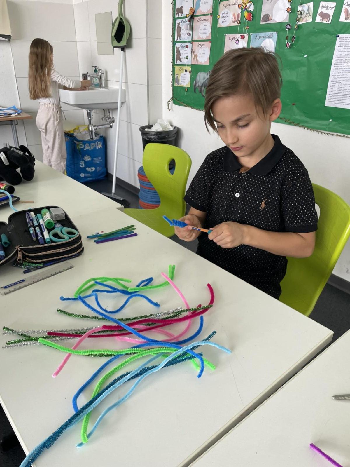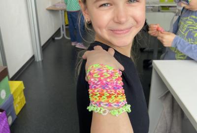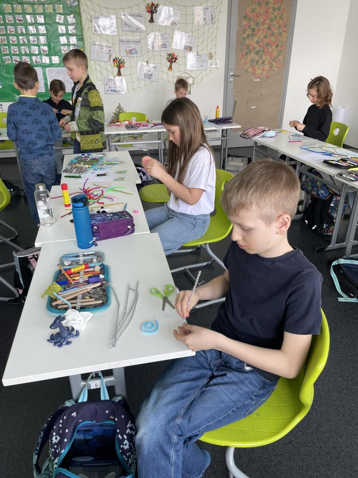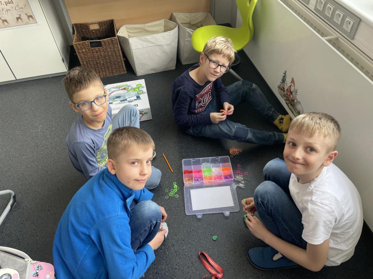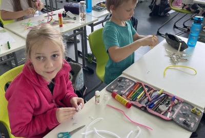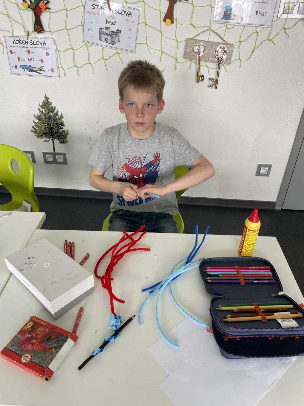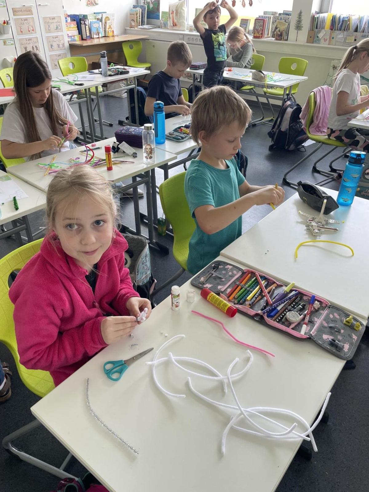 Jednou z oblíbených činností bylo vyrábění náramků z barevných gumiček. Děti si procvičily jemnou motoriku, trpělivost a zároveň si odnesly krásný vlastnoručně vyrobený doplněk. Velký úspěch mělo také tvoření z barevných drátků, kdy děti popustily uzdu fantazii a vytvářely originální tvary i dekorace.