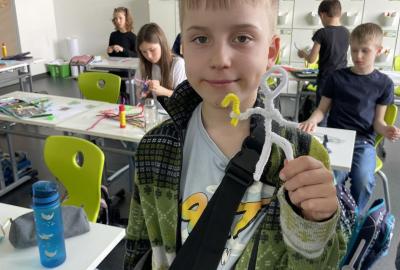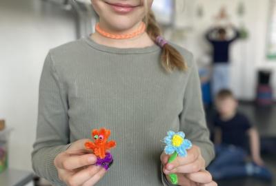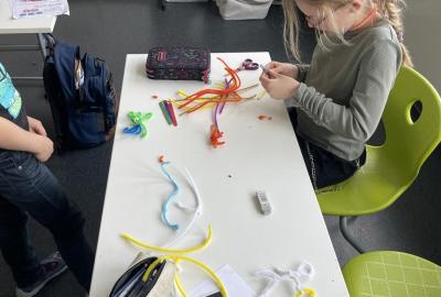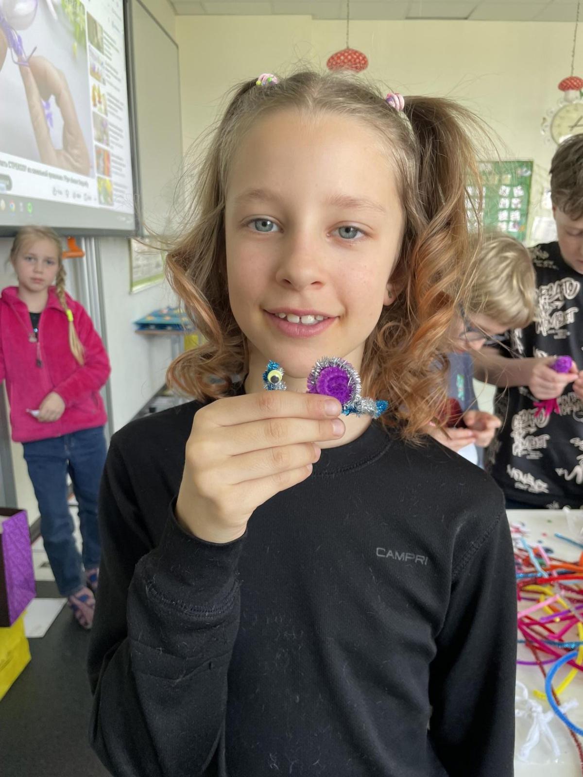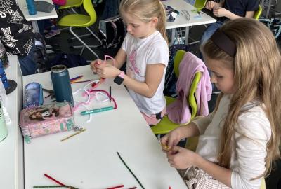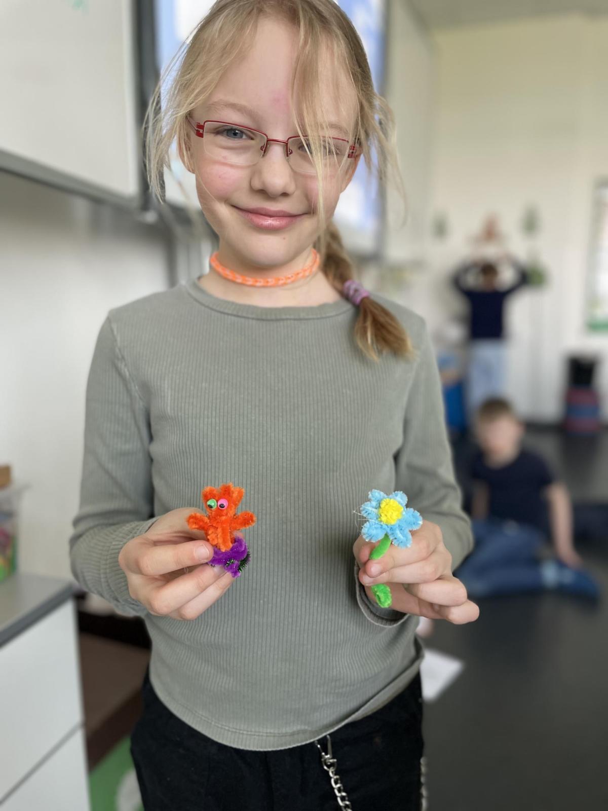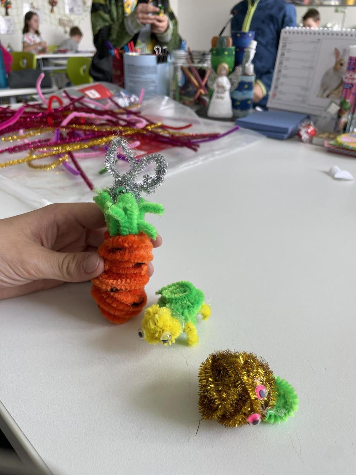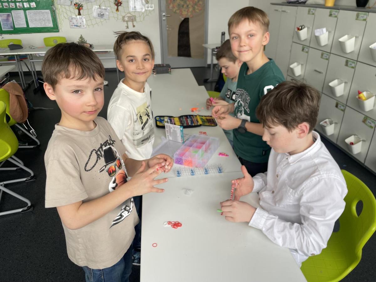 Jednou z oblíbených činností bylo vyrábění náramků z barevných gumiček. Děti si procvičily jemnou motoriku, trpělivost a zároveň si odnesly krásný vlastnoručně vyrobený doplněk. Velký úspěch mělo také tvoření z barevných drátků, kdy děti popustily uzdu fantazii a vytvářely originální tvary i dekorace.
