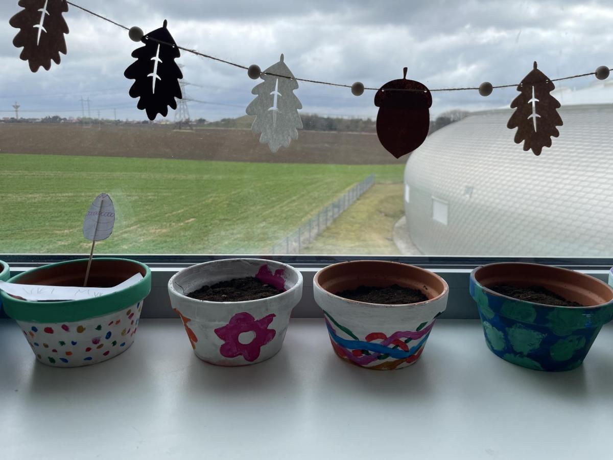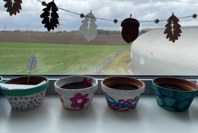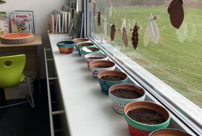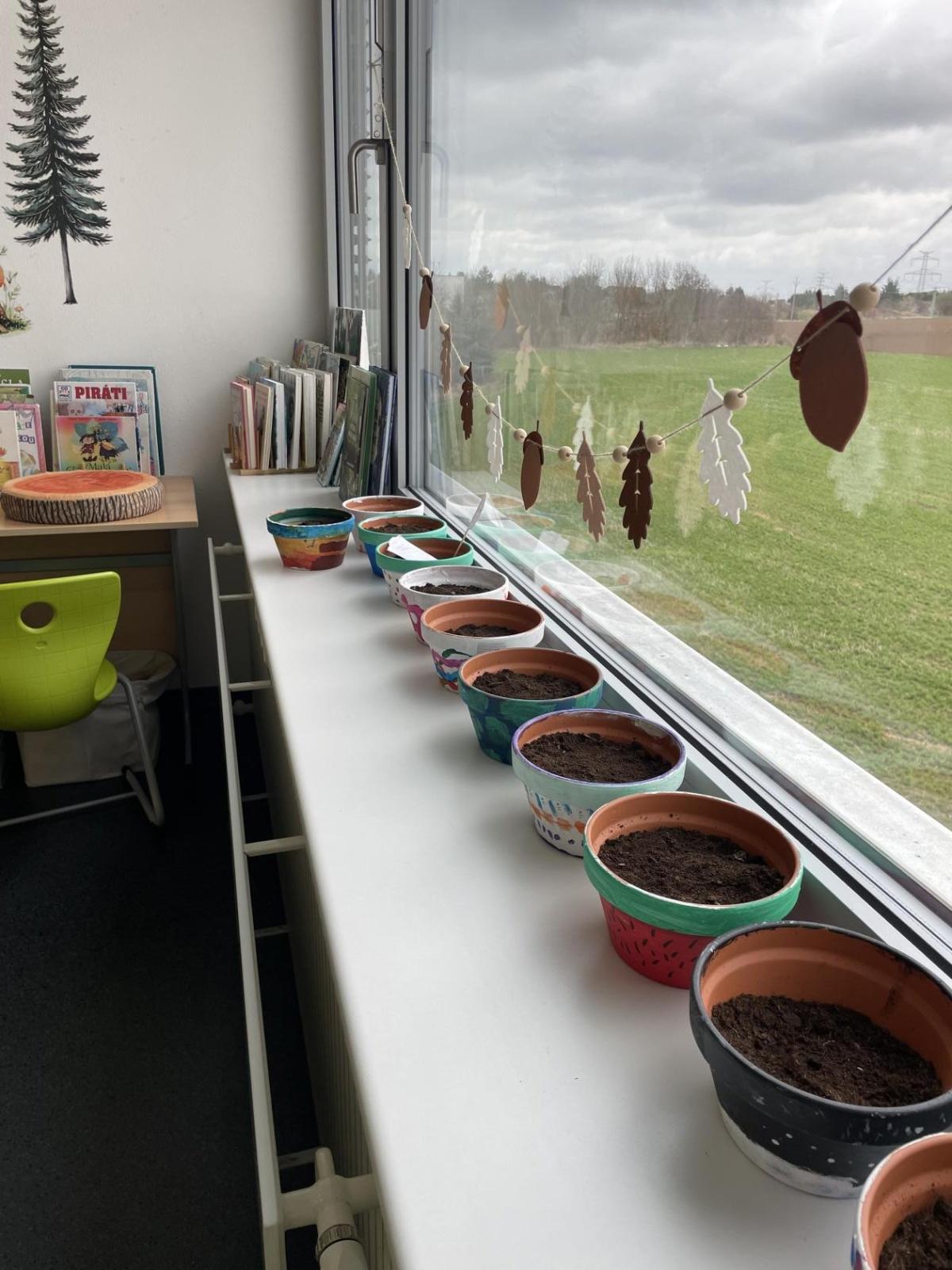 S příchodem jara jsme se pustili i do sázení. Děti si samy pomalovaly květináče a následně do nich zasely osení – mladý ječmen. S nadšením pak sledovaly, jak jejich rostlinky postupně rostou a zelenají se.