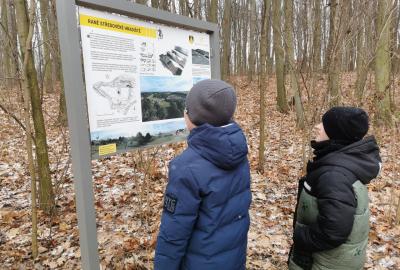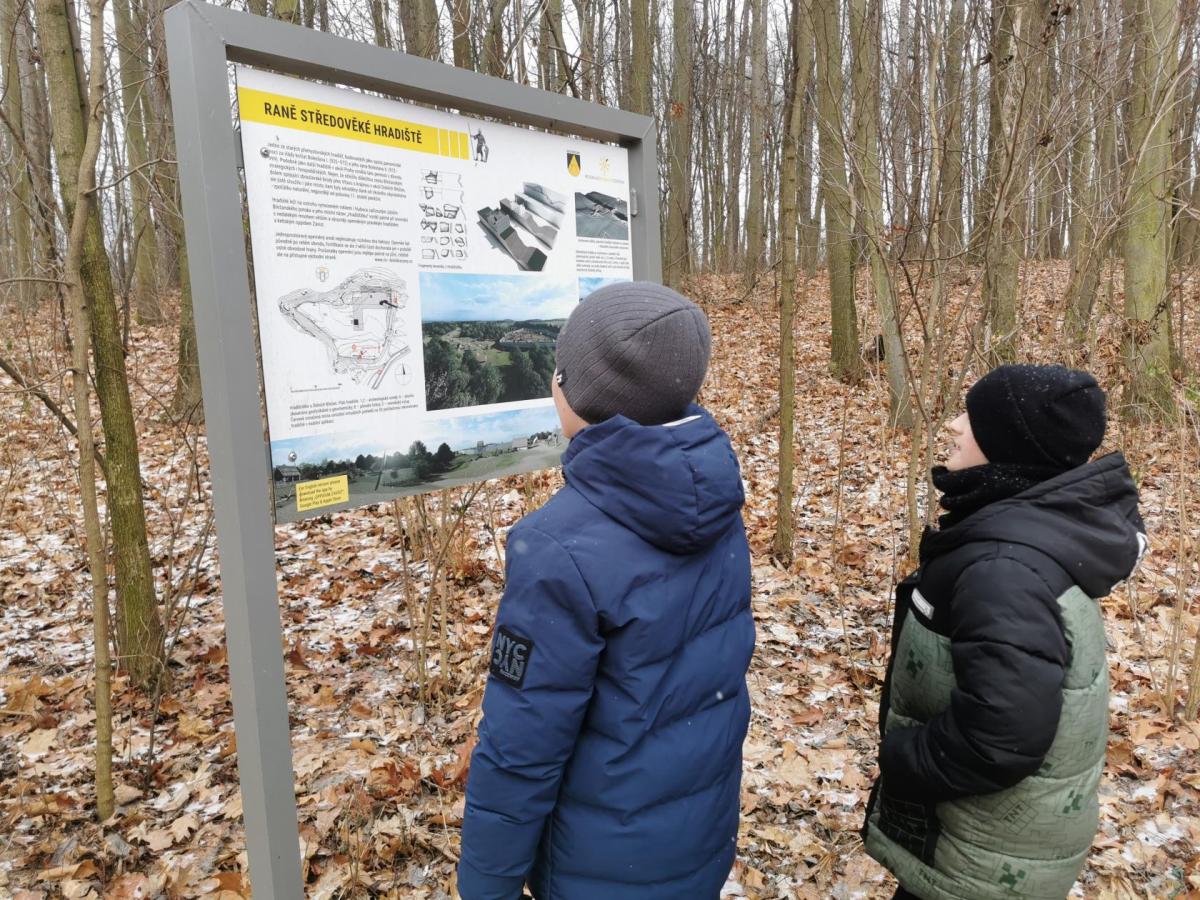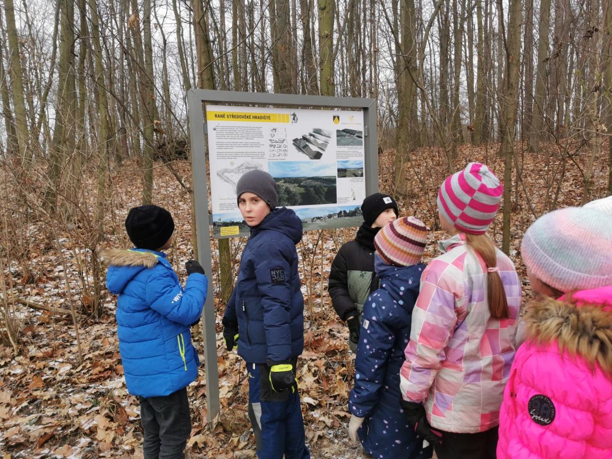 Navštívili jsme Hradišťátko – raně středověké hradiště v Dolních Břežanech, které kdysi chránilo důležitou cestu údolím. Dozvěděli jsme se, že vzniklo už v 10. století za vlády přemyslovských knížat Boleslava I. a II., a dodnes zde můžeme spatřit zbytky opevnění v podobě mohutného valu nad Břežanským údolím.