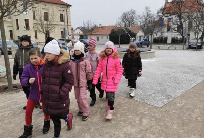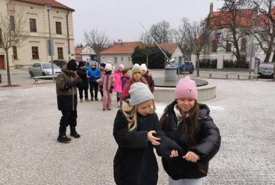 Procházka vedla přes náměstí V. Michalika, kde se nacházejí sluneční hodiny. Dozvěděli jsme se, že tento způsob měření času pochází už ze starověku, který se na území Čech neodehrával.