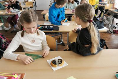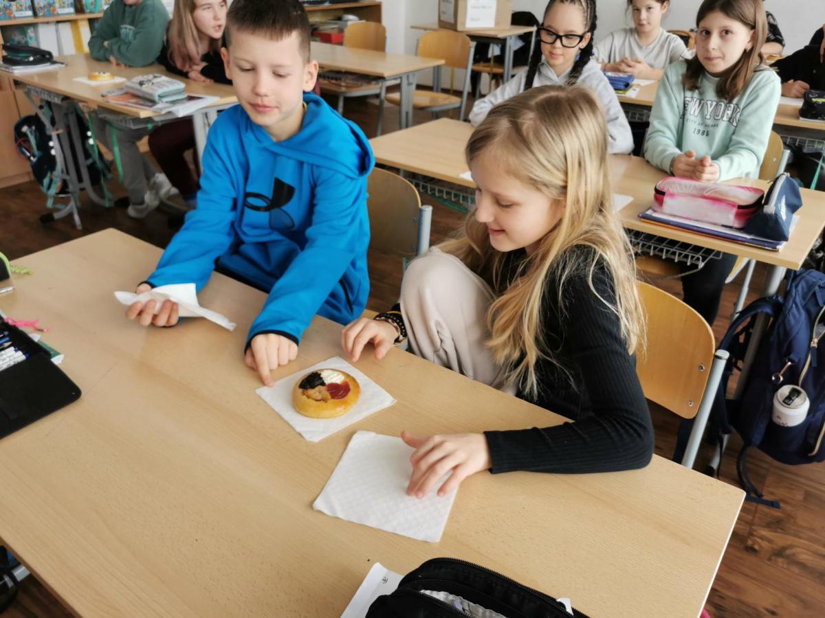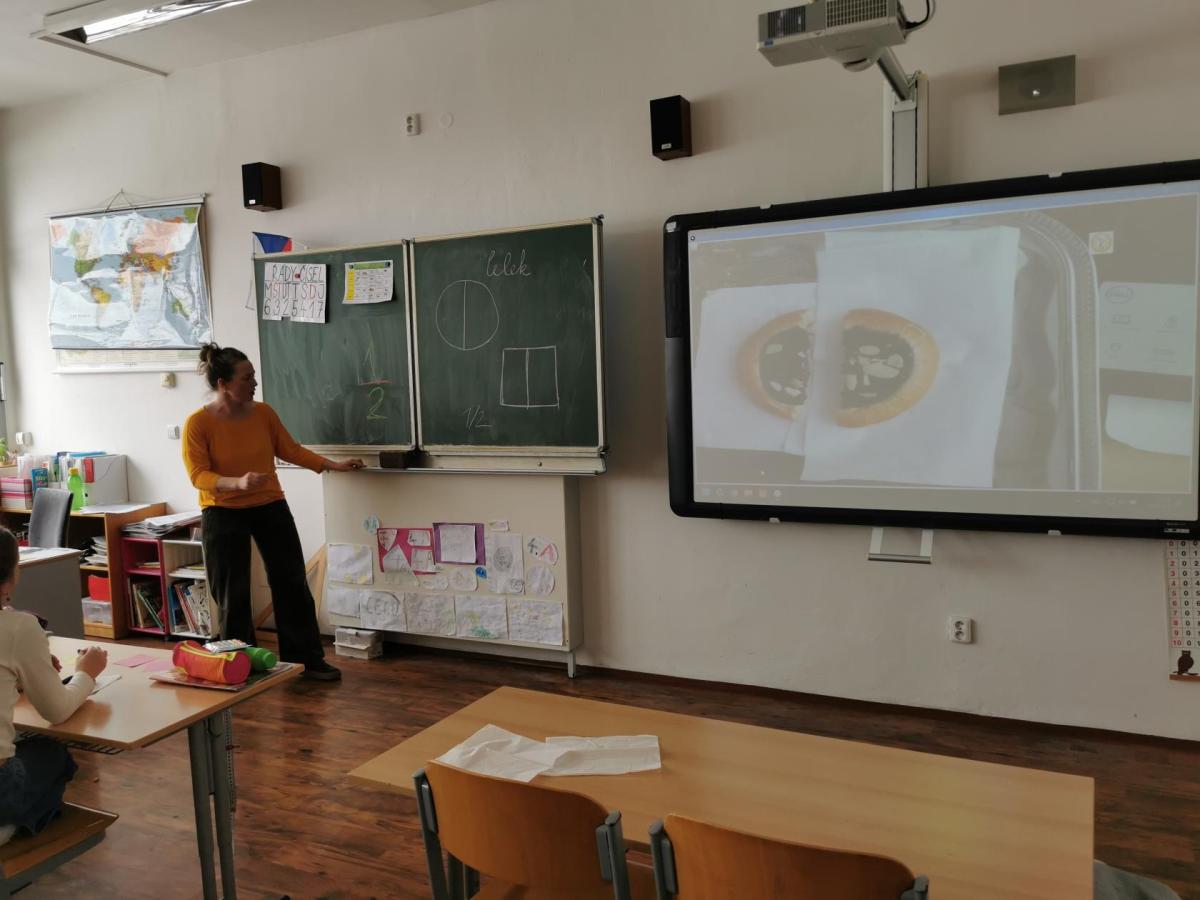 Masopust a s ním nové téma v matice – zlomky. Celek jsme nelámali jen obrazně, ale i doslova. Koláček se stal názornou pomůckou a zlomky najednou dávaly smysl. Rozklad čísla, když znám řád čísel, tak je opravdová hračka.