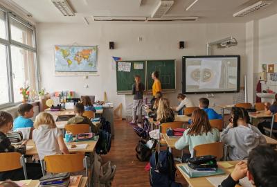 Titulní fotografie mluví za vše – otevřené dveře do naší třídy a na nich přehled medailových stavů zimních olympijských her v Itálii.