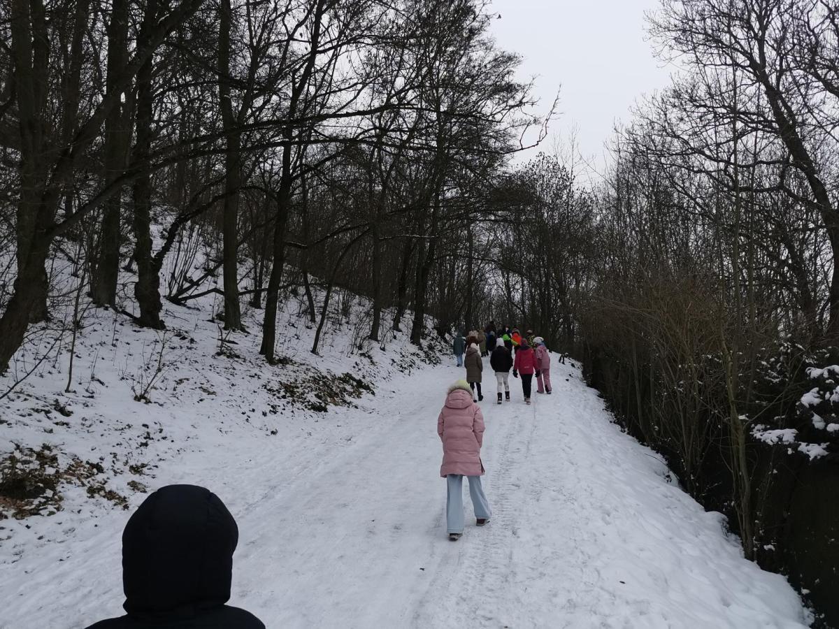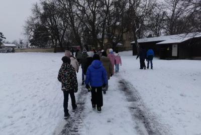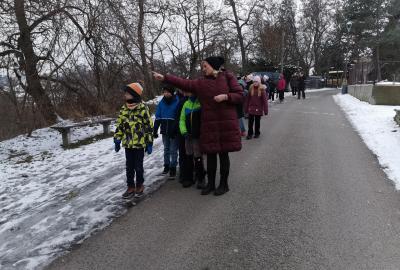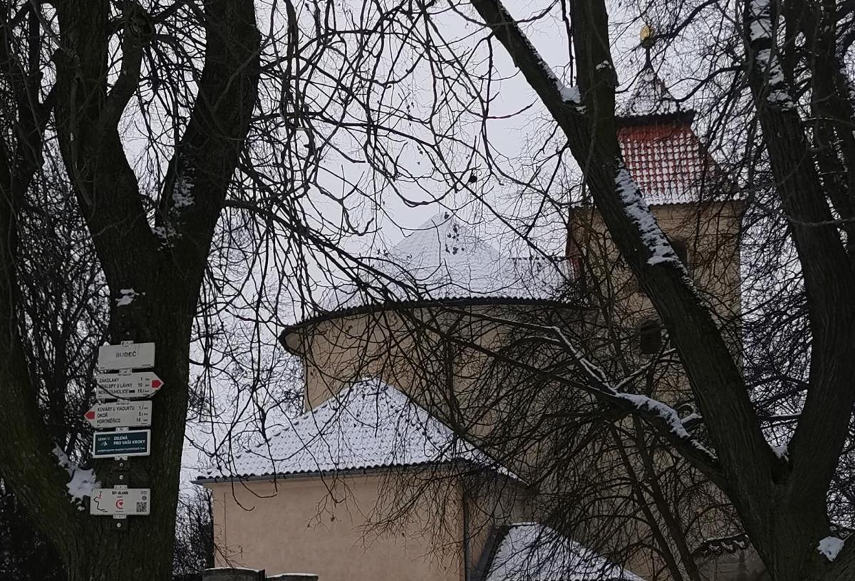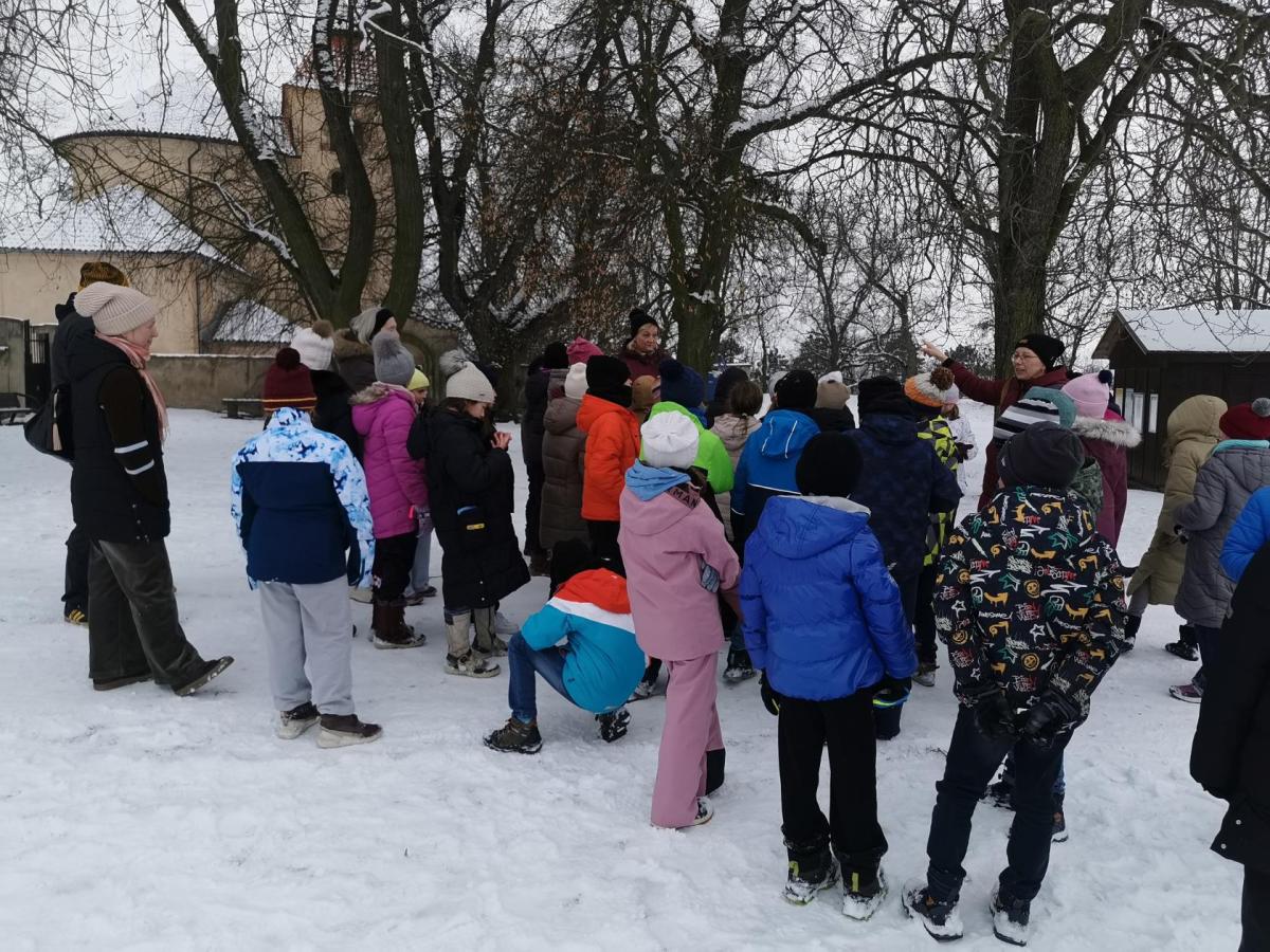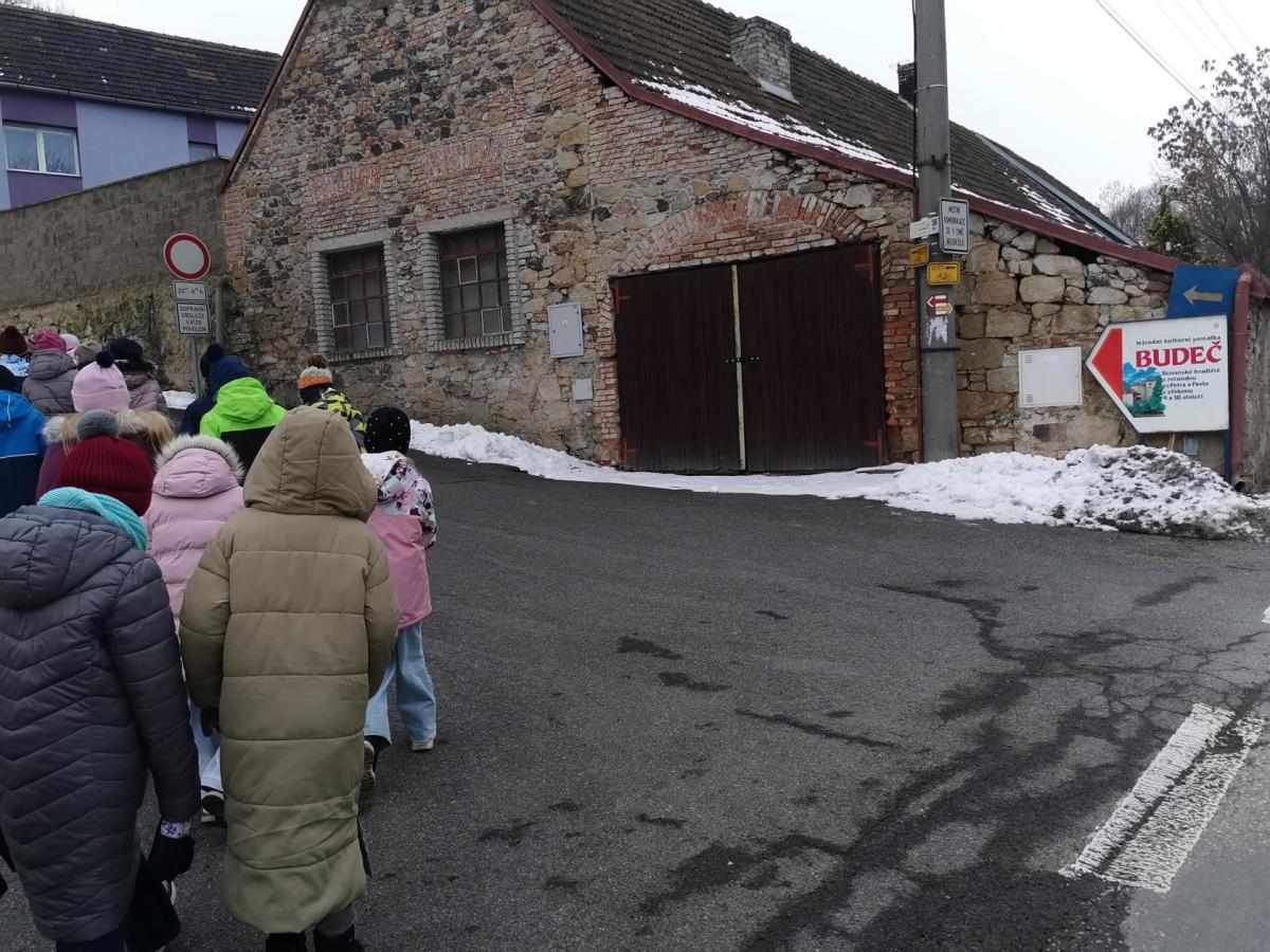 Poté jsme pokračovali na Budeč. Po červené turistické značce jsme se vydali po klouzavé ledovce asi 1 kilometr k rotundě. Paní průvodkyně nám nejdříve vyprávěla o tom, že Budeč je možná ještě starší než Levý Hradec.