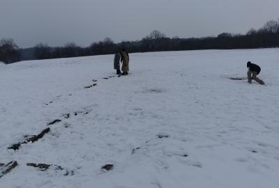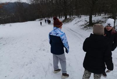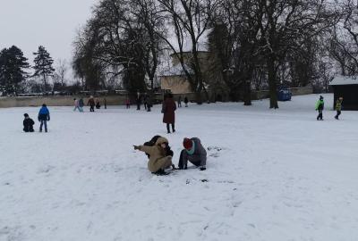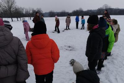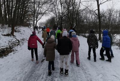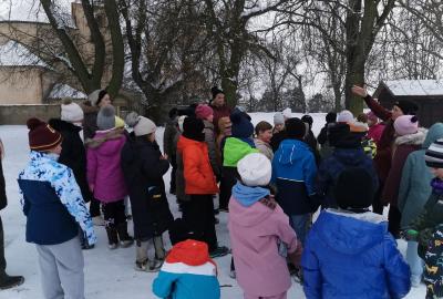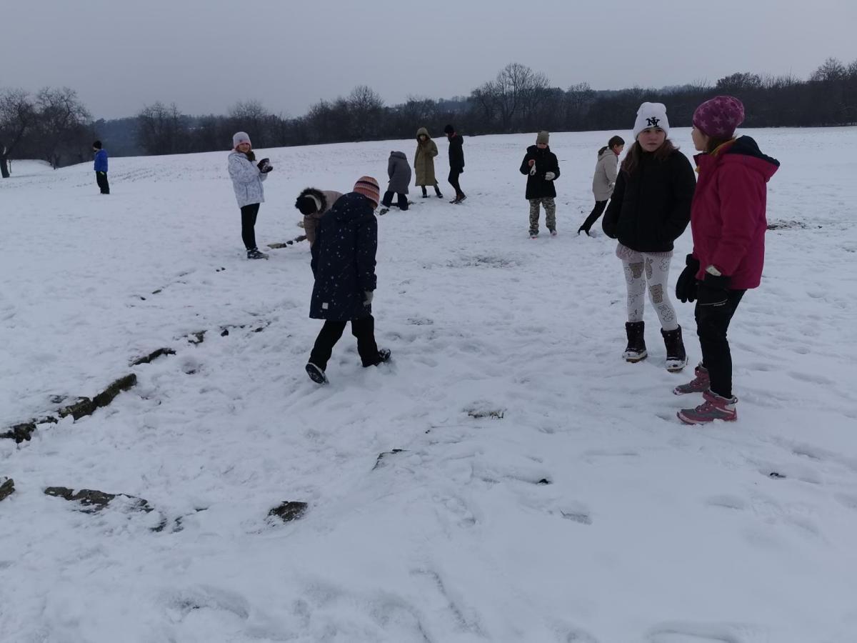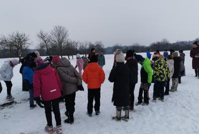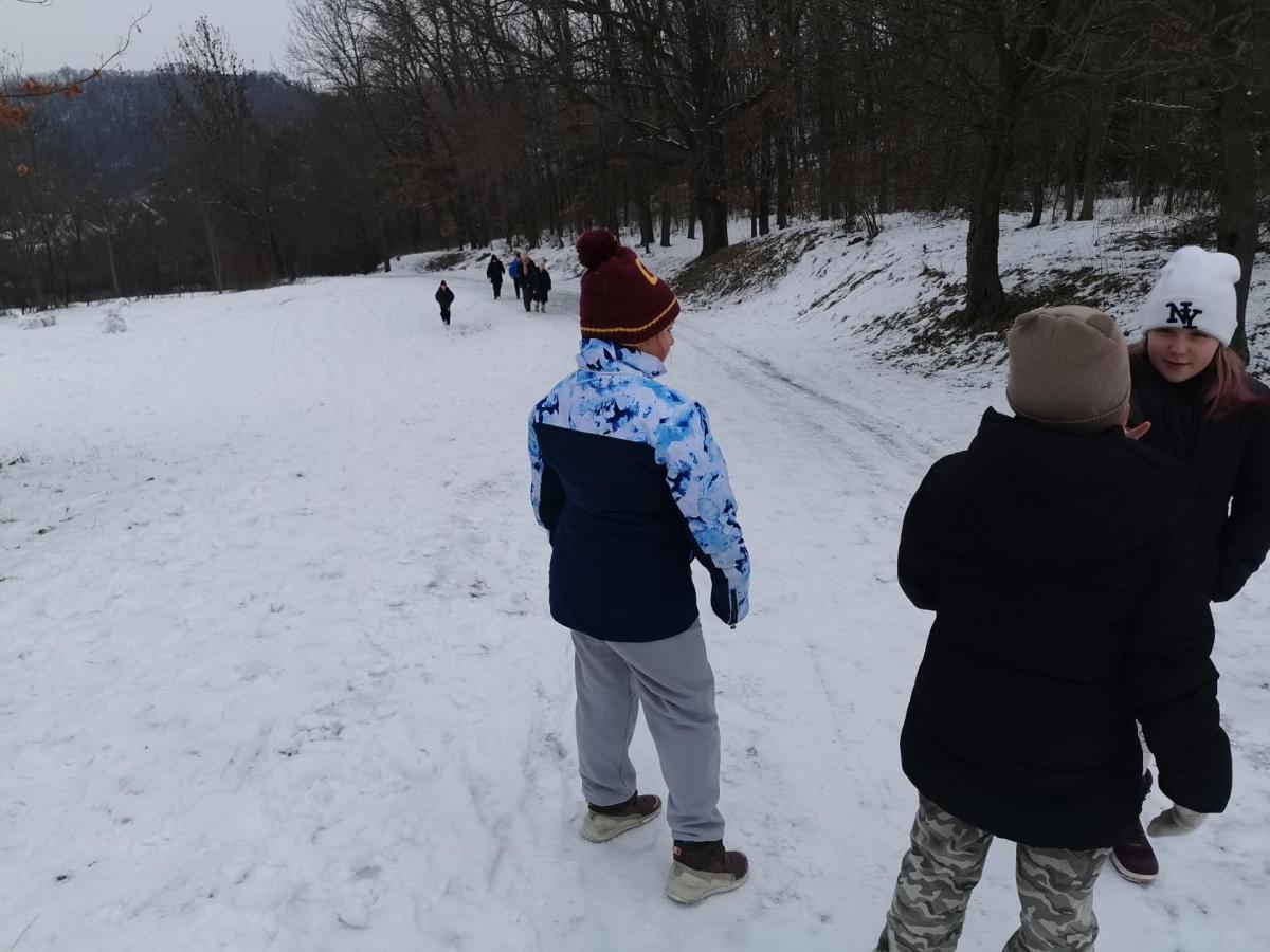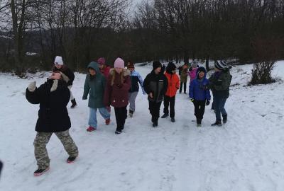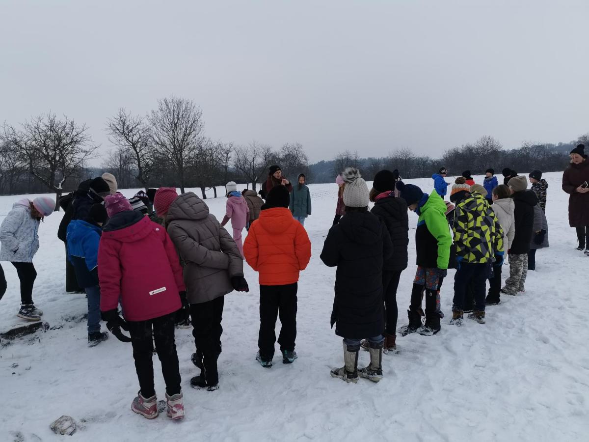 Poté jsme pokračovali na Budeč. Po červené turistické značce jsme se vydali po klouzavé ledovce asi 1 kilometr k rotundě. Paní průvodkyně nám nejdříve vyprávěla o tom, že Budeč je možná ještě starší než Levý Hradec.