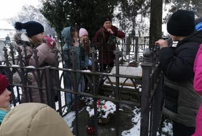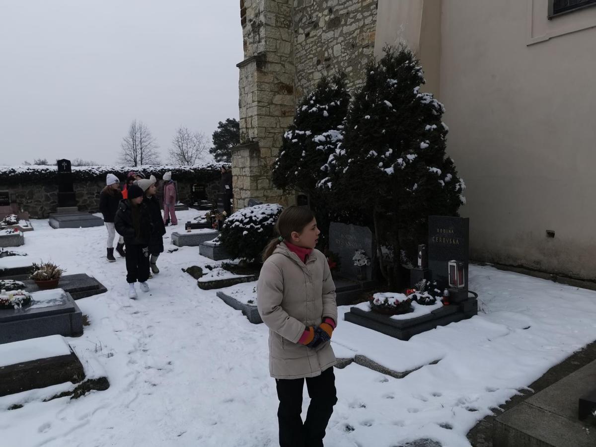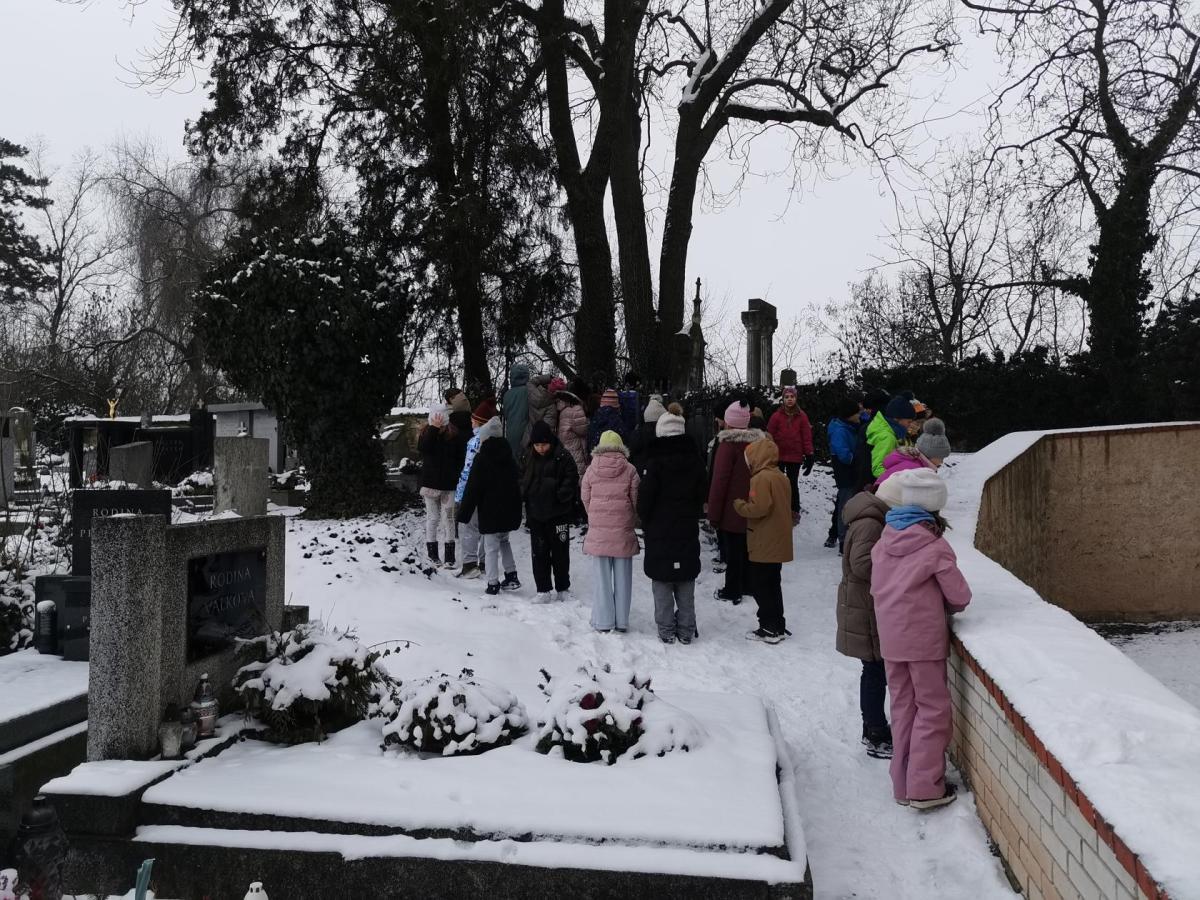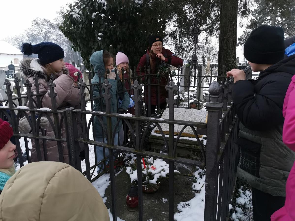 Na závěr nám paní průvodkyně ukázala hrob Karla Slavoje Amerlinga, významného pedagoga 19. století, který je pohřben na budečském hřbitově. Inspirován výukou svatého Václava na Budči chtěl založit školu, kde by se lidé učili nejen číst a psát, ale také se starat o hospodářství a dobytek. Dnes bychom takovou výuku mohli přirovnat k pěstitelským dílnám.