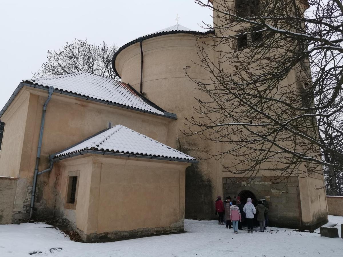 Nejprve jsme přijeli na Levý Hradec, kde sídlil náš první přemyslovský kníže Bořivoj. Právě tady založil první křesťanský kostel v Čechách. Kostel jsme si prohlédli pouze zvenku, protože návštěvu interiéru si necháme na léto.