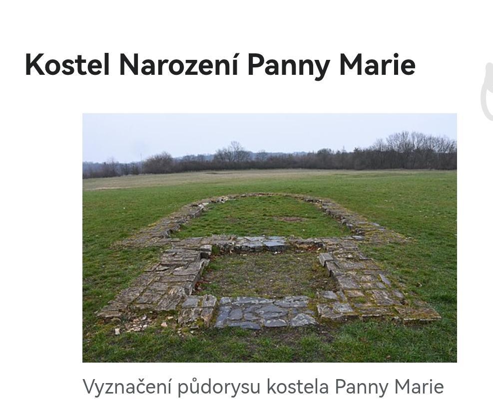 Ukázala nám půdorys Kostela Narození Panny Marie, který byl zasypaný sněhem. Pečlivě jsme si prohlédli kamenné pozůstatky z opuky. Kostel byl určen hlavně pro bohatší obyvatele hradiště, kterých zde žilo asi 80–100. Archeologové zjistili, že kostel je o 100 let starší než rotunda. Na místě se také našlo hodně dřeva, které mohlo patřit ke schodišti ke zvonici z doby Rudolfa II.