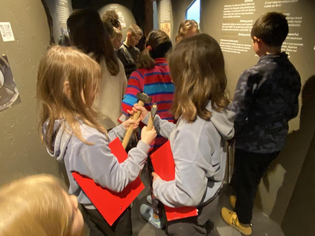Vydali jsme se na výlet do Jílového u Prahy. V místním muzeu jsme absolvovali zajímavou prohlídku s názvem Cesta zlata, během které se děti dozvěděly mnoho informací o historii těžby zlata v tomto regionu. Při prohlídce se také symbolicky setkaly s Karlem IV., který je s těžbou zlata v této oblasti úzce spojen. Velkým zážitkem pro děti bylo i to, že si na památku mohly samy vyrazit vlastní minci a najít si kousek zlata.