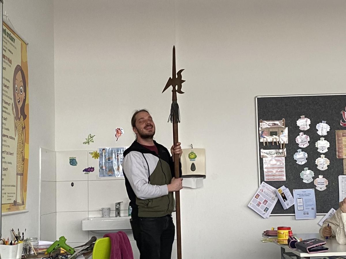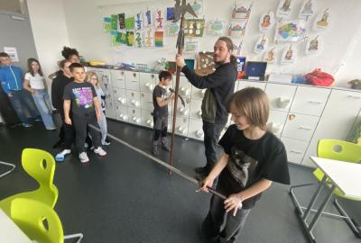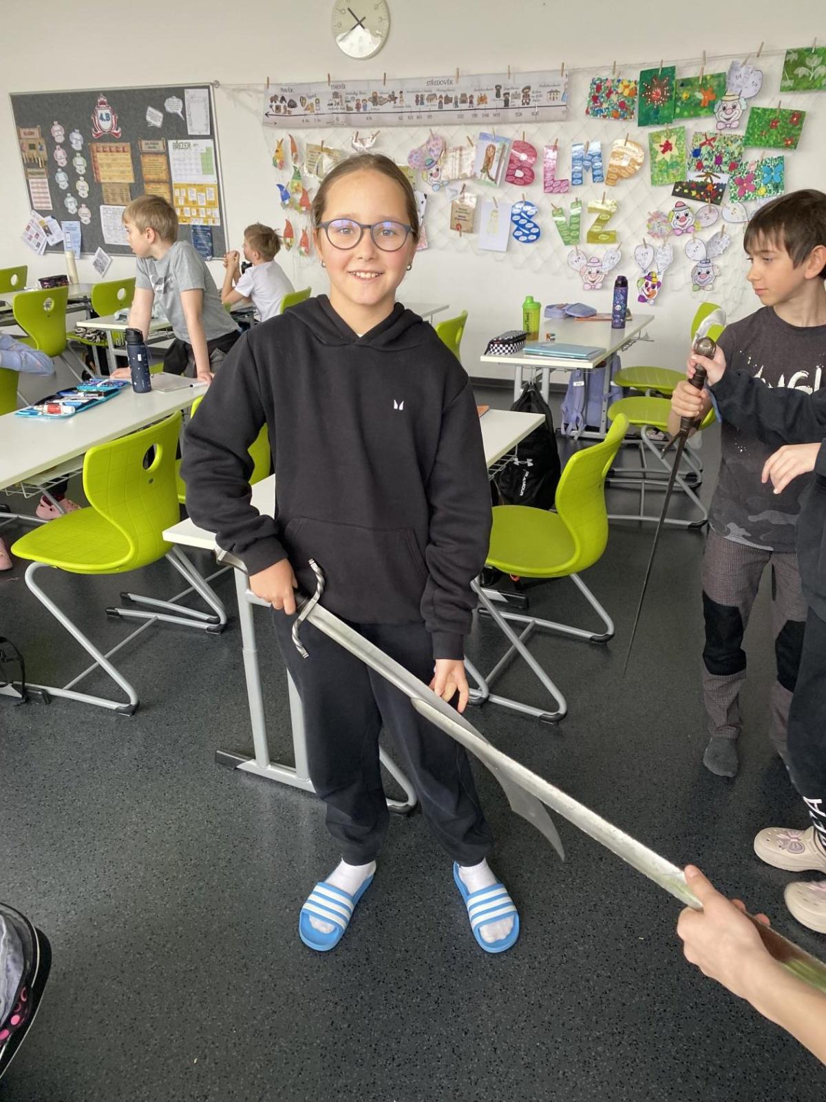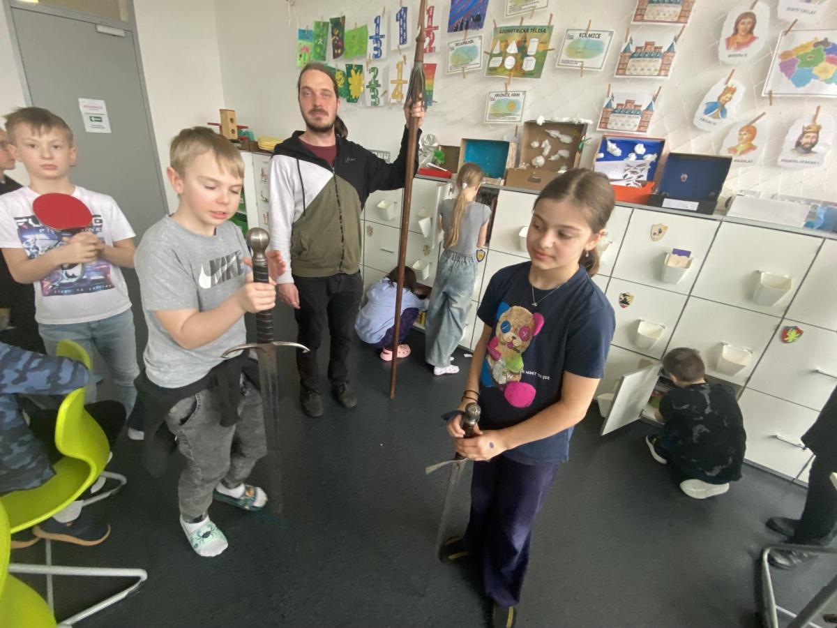 V naší třídě jsme zažili netradiční a velmi zajímavé zpestření výuky. Navštívil nás šermíř, který dětem přiblížil svět historických zbraní a rytířských soubojů.
