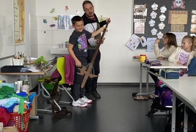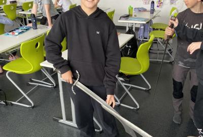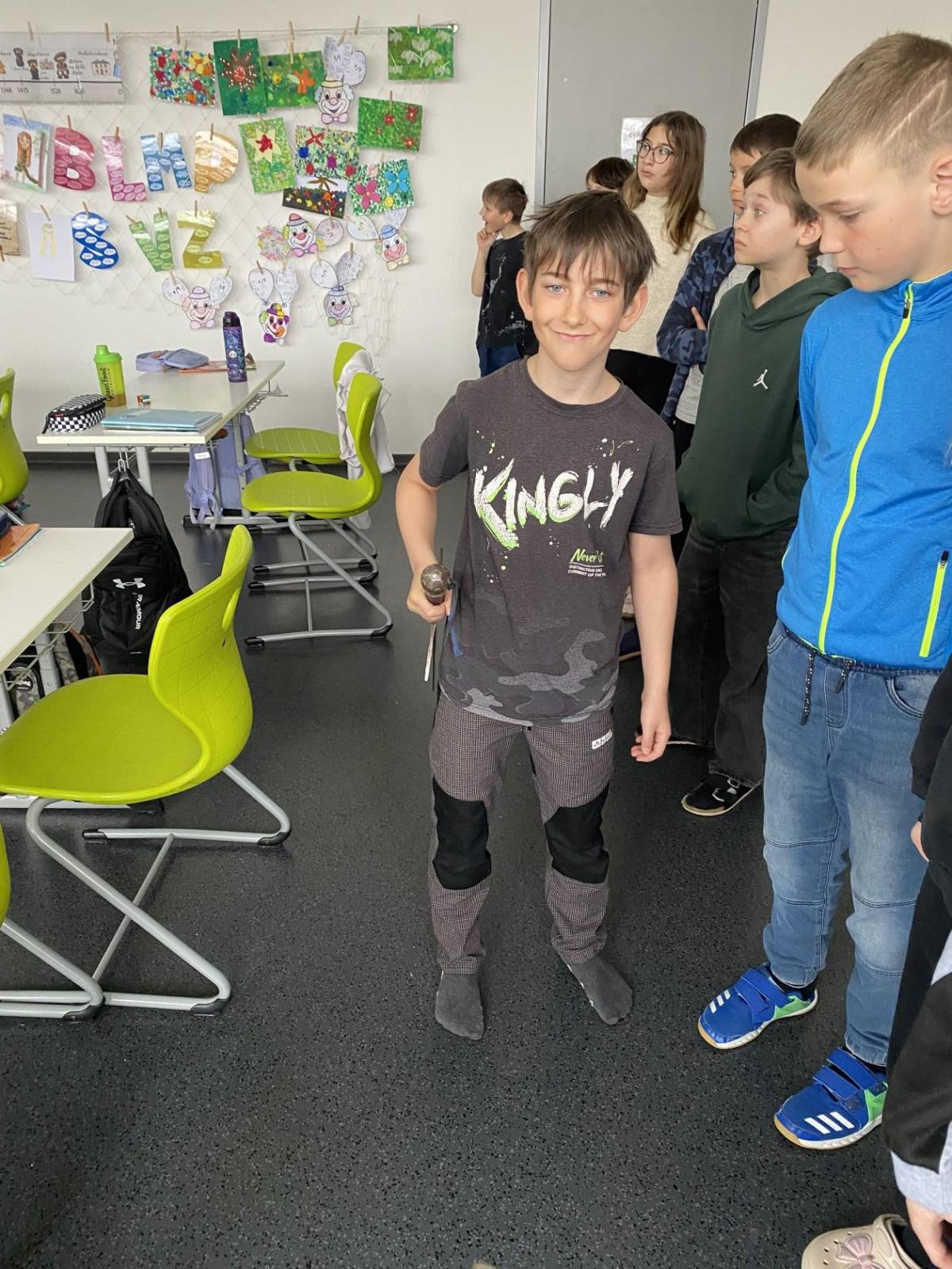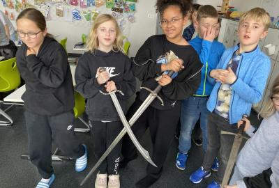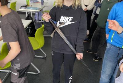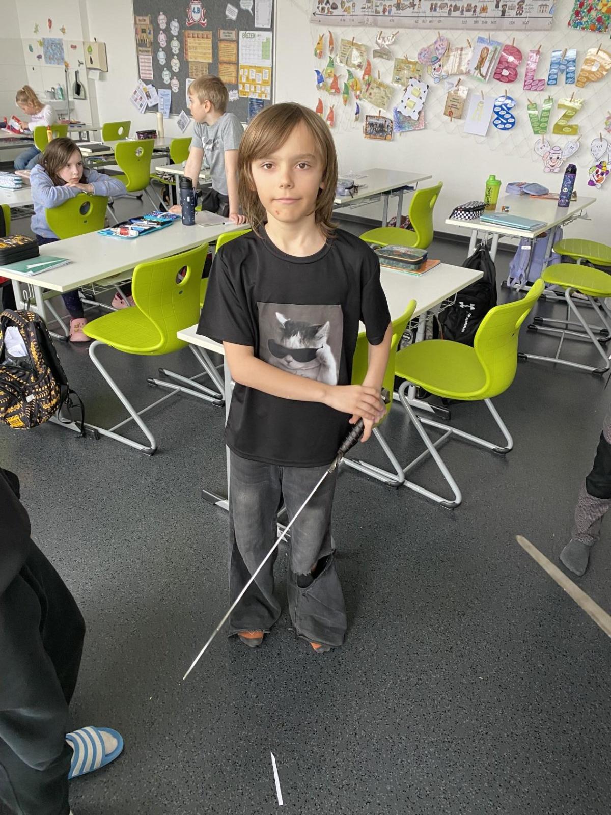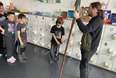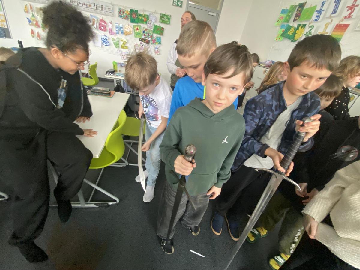 V naší třídě jsme zažili netradiční a velmi zajímavé zpestření výuky. Navštívil nás šermíř, který dětem přiblížil svět historických zbraní a rytířských soubojů.