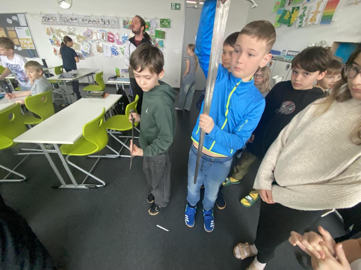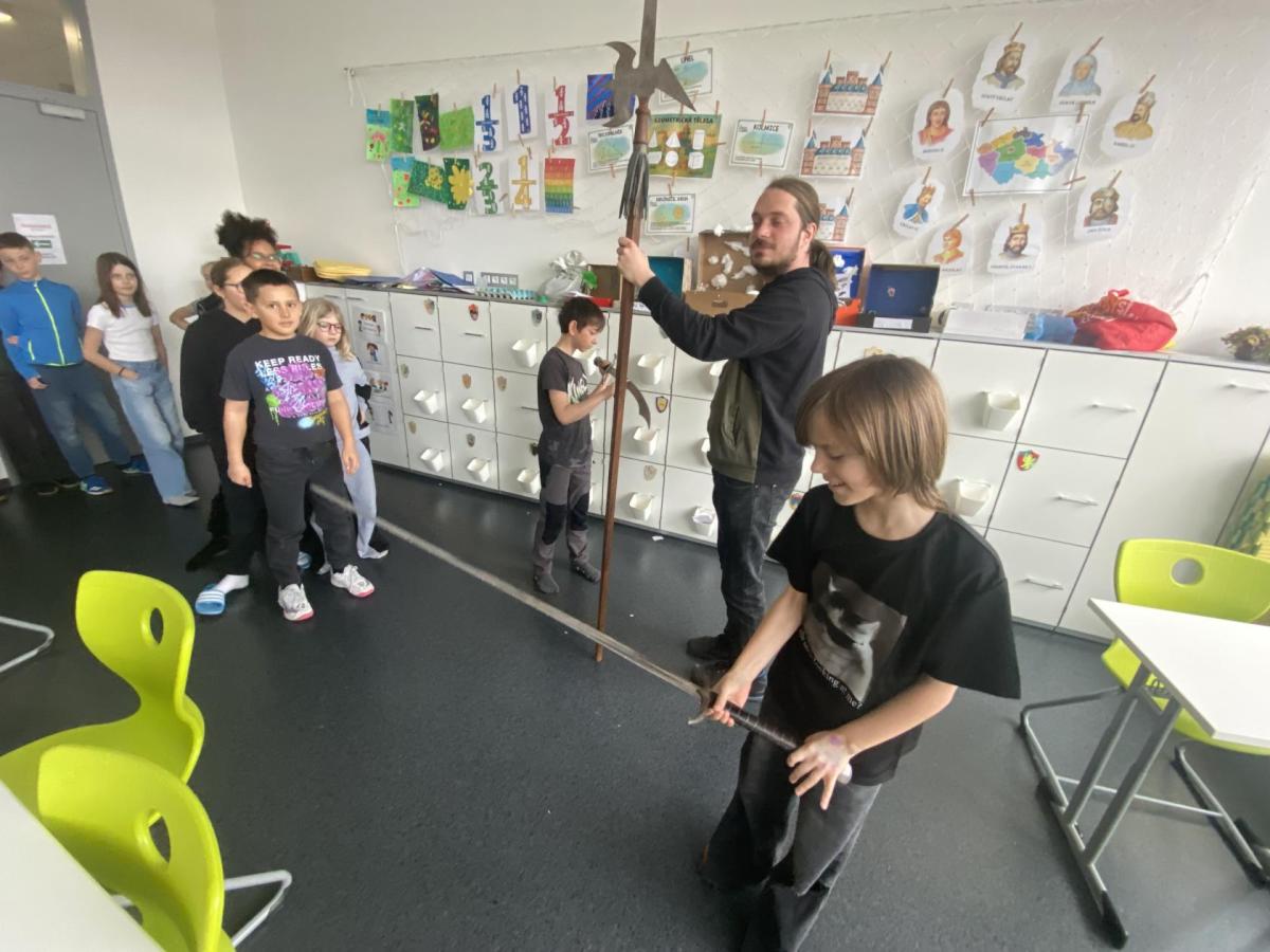 Během poutavého vyprávění se žáci dozvěděli mnoho zajímavostí o životě rytířů, jejich výzbroji i o tom, jak se v minulosti bojovalo. Měli možnost vidět různé druhy historických zbraní, dozvědět se, k čemu sloužily, a některé si dokonce mohli zblízka prohlédnout.