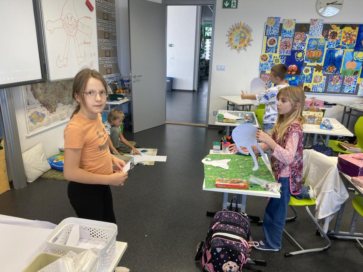 Výtvarku jsme tento čtvrtek pojali hodně předvánočně. Sotva jsme zamávali sv. Martinovi a jeho doprovodu, začali jsme přemýšlet, jak vyzdobit třídu a chodbu, abychom se rozloučili s podzimem a pomalu se začali chystat na to nejkrásnější období - na Vánoce. Výtvarnou výchovu máme letos jen jednou za čtrnáct dní, takže času moc nezbývá. Paní učitelka tedy navrhla, že bychom si mohli namalovat a vyrobit malého skřítka, který zamává podzimu a později přivítá advent. A tak jsme se do toho dali! Připravili jsme si čtvrtky, barvy, nůžky, vatu...... a další potřebný materiál. Vybrali si ten správný prostor a začali kreslit, stříhat a barvit skřítkovo tělíčko. Po dvou hodinách se to naší chodbou začalo mihotat různými podižvíky. To se naši skřítkové čile hlásili k světu! Zuzka navrhla, že bychom jim mohli udělat z role papíru sněhovou cestičku, aby se jim na naší nástěnce líbilo :). Paní učitelka ji za nápad pochválila a dala se do jeho realizace. A když jsme přišli v pátek ráno do školy, už se na nás skřítci z nástěnky hezky usmívali.