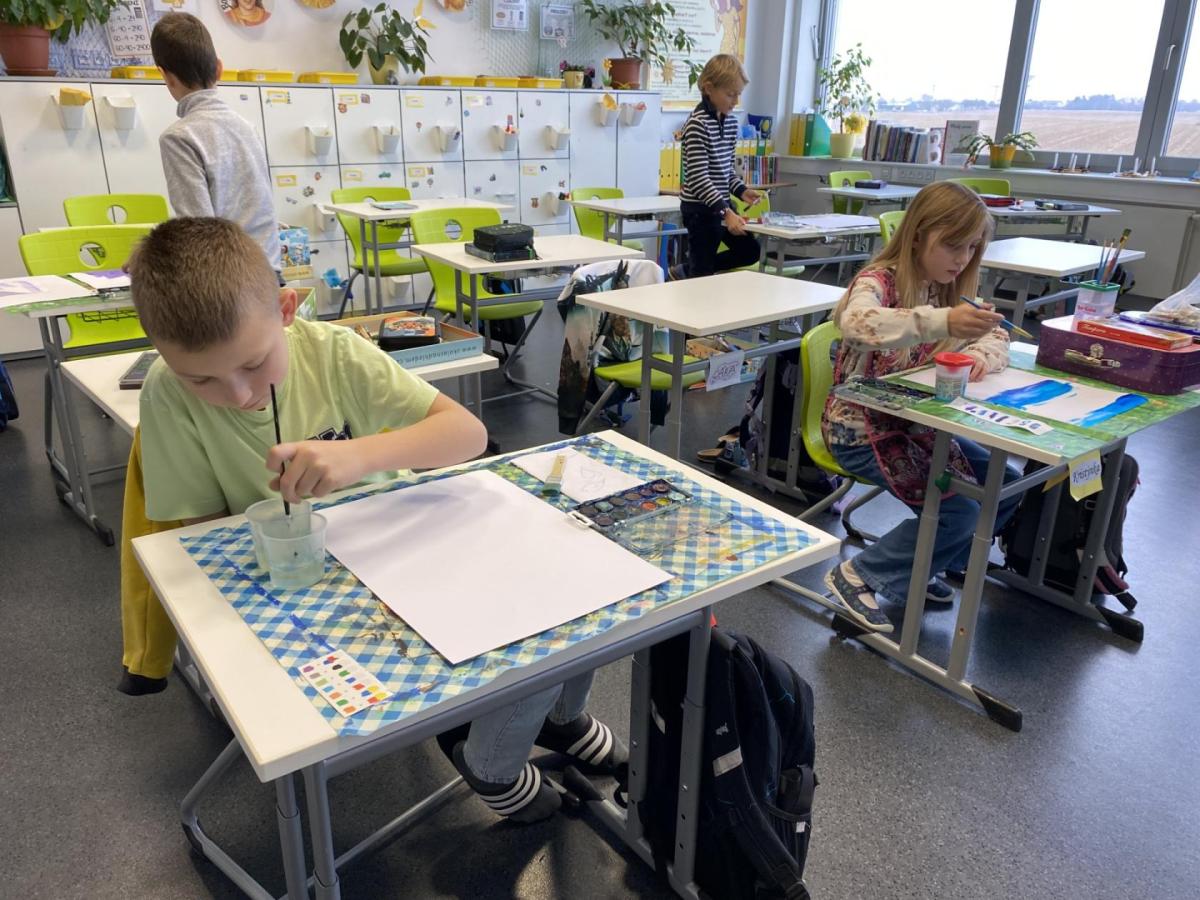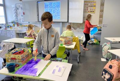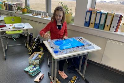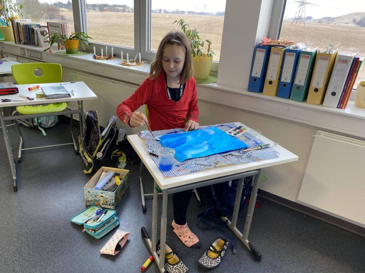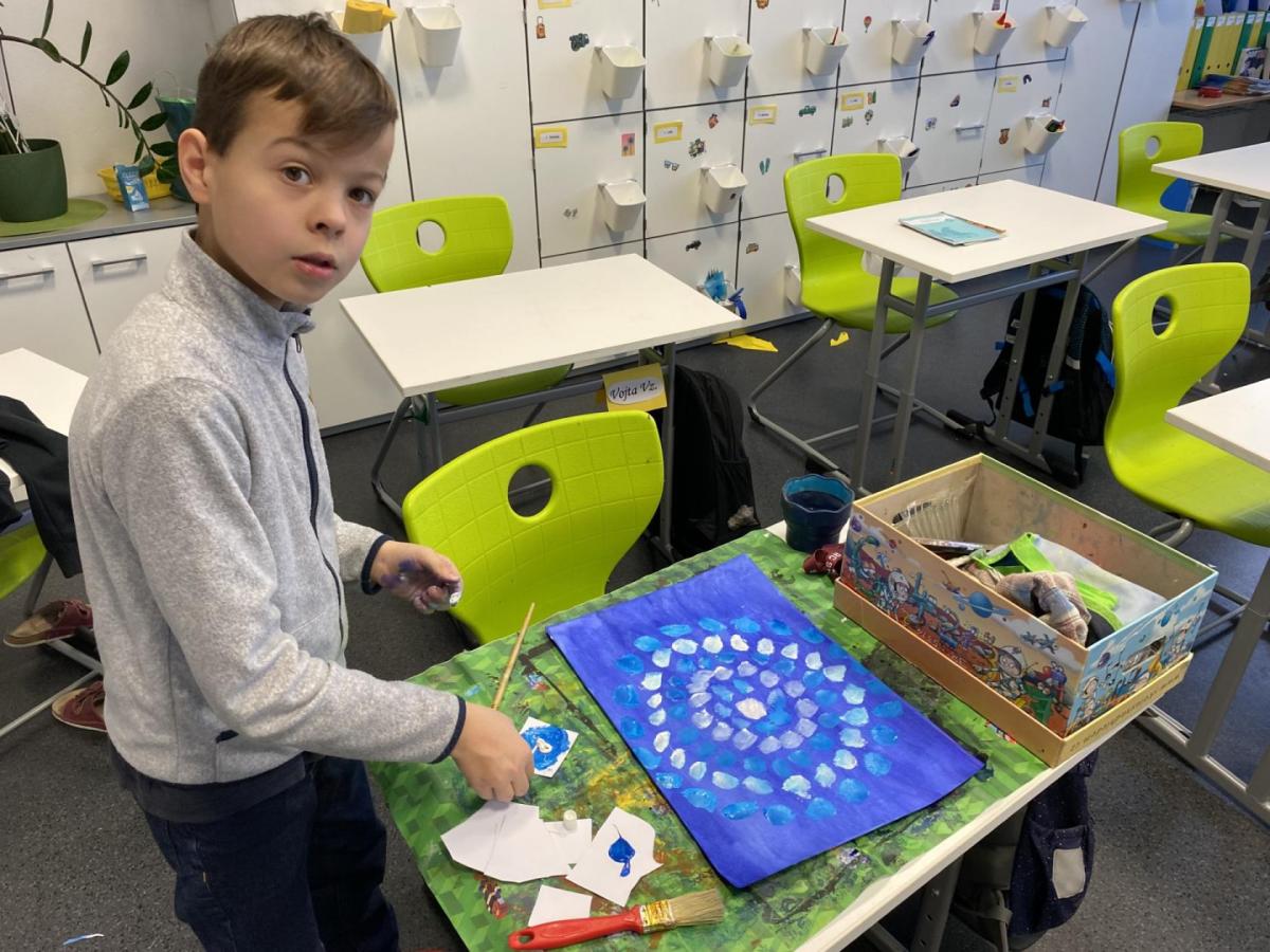 Během výtvarné výchovy se nám podařilo přivolat tu pravou zimu - sníh, led a mráz.