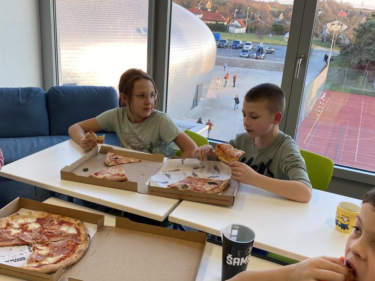 Když jsme už už usínali, přišla paní učitelka s návrhem: "A kdo si dá půlnoční fotbálek?". No jasně, že všichni! Rychle jsme se zvedli, utíkali chodbami a za chvíli už volali vítězné:" Gól!" I přes únavu jsme do hry dali všechno - smích a nadšení se rozléhaly celou halou. Byl to dokonalý závěr nabitého večera.