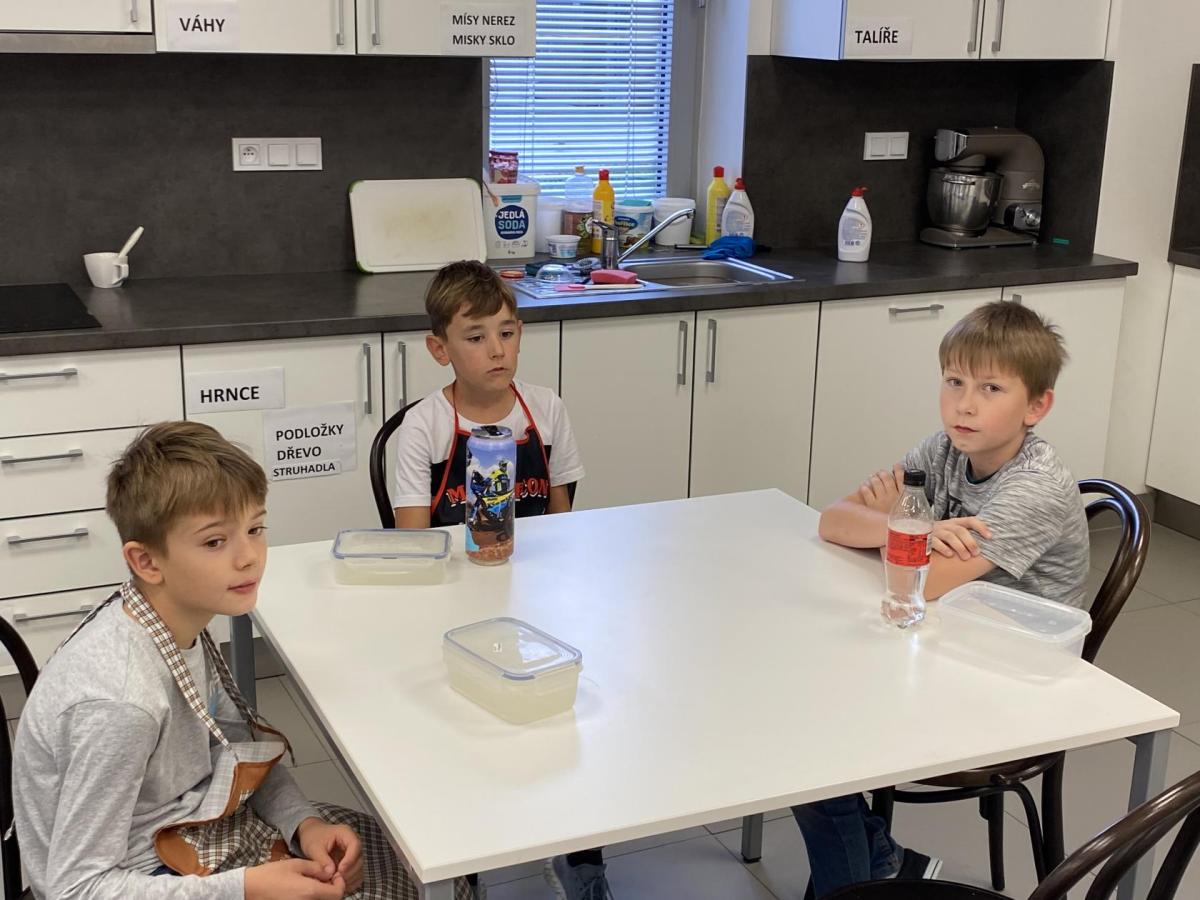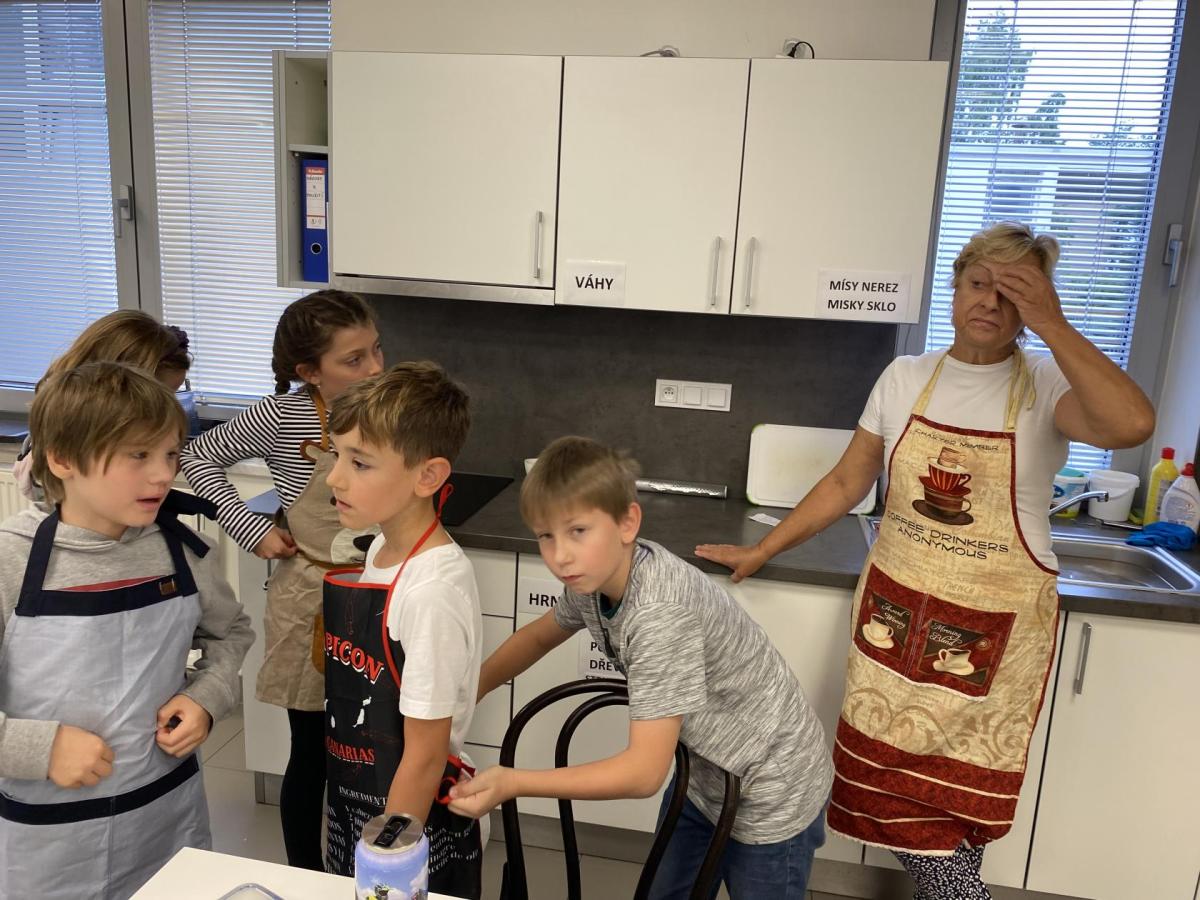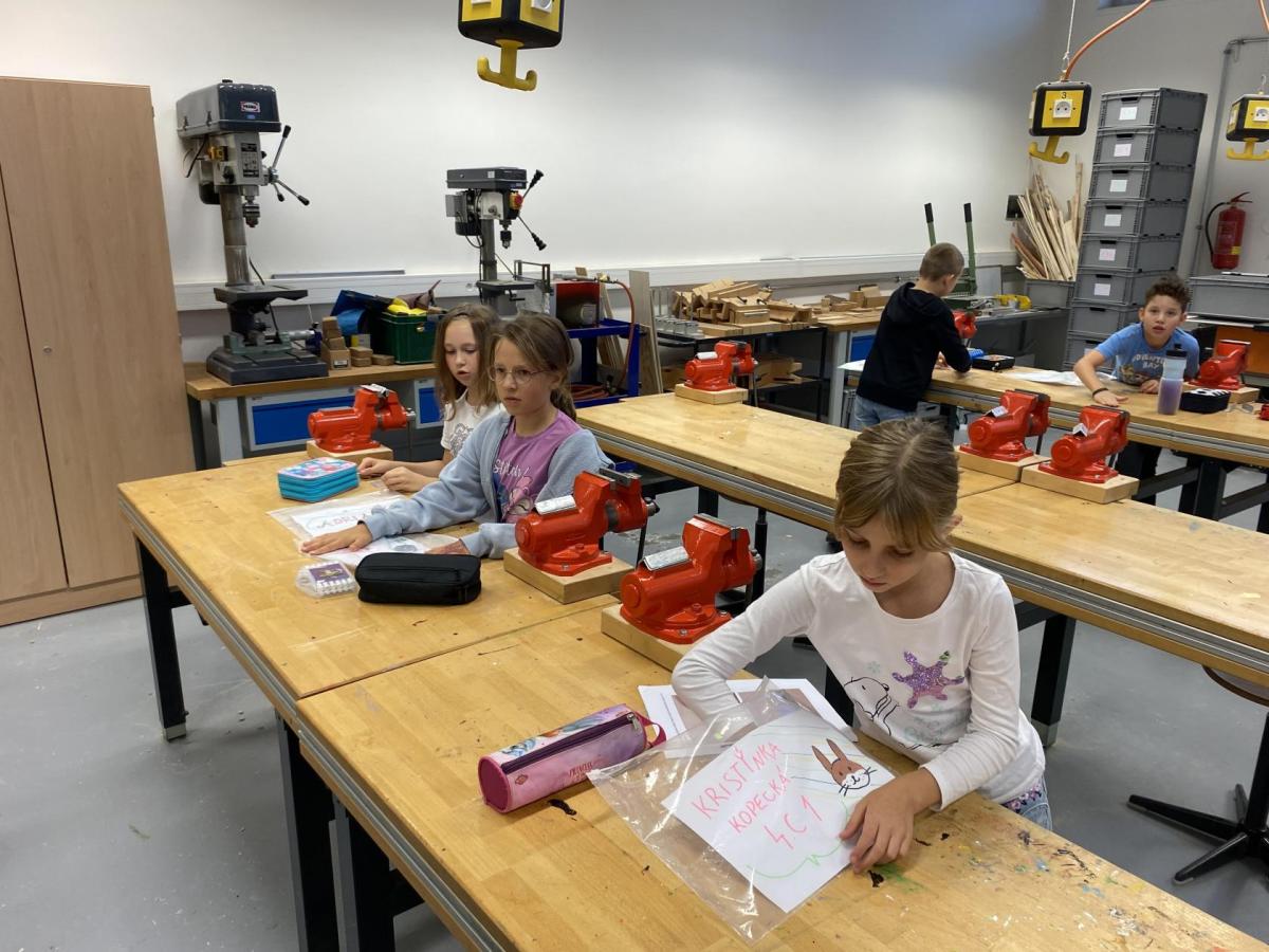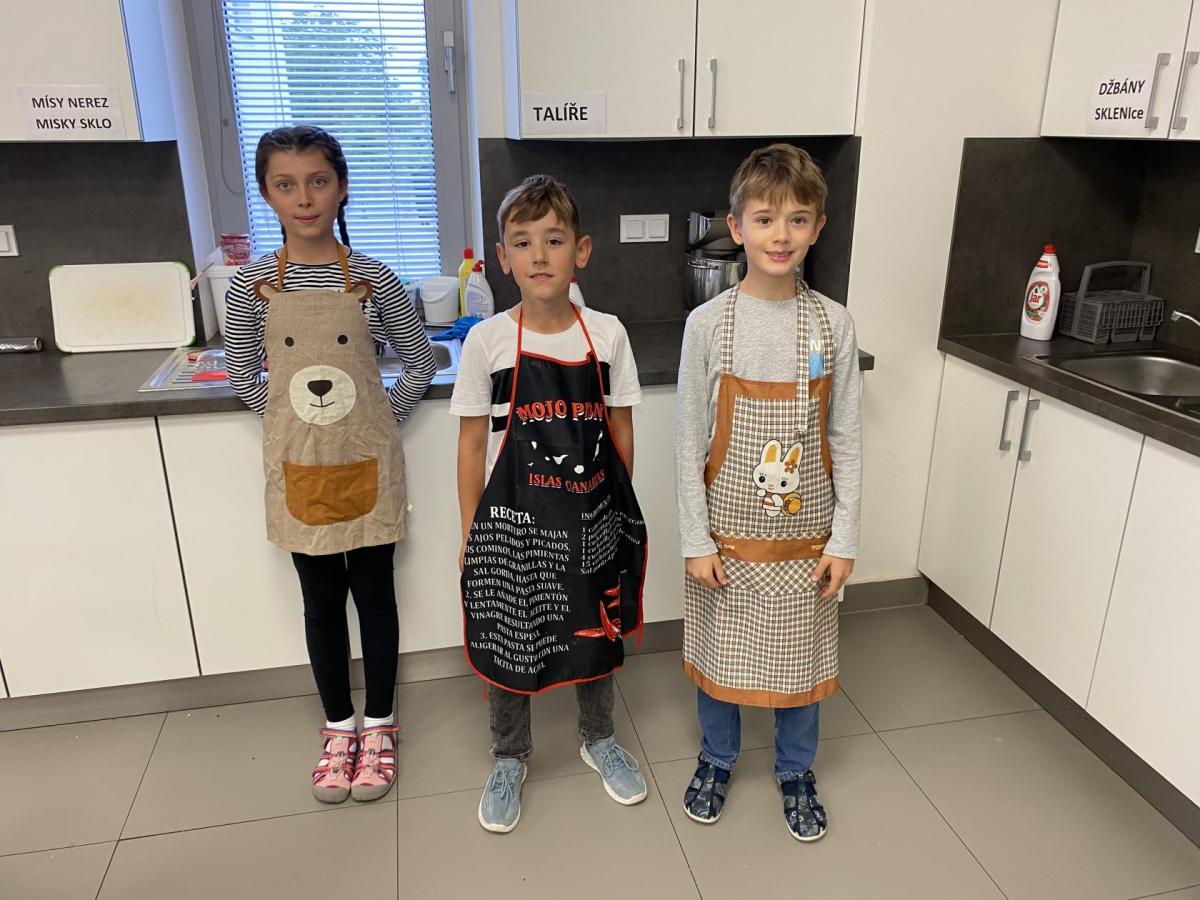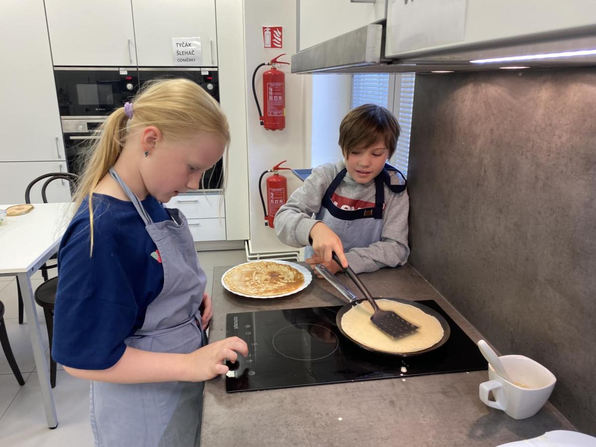 Letos nás čtvrteční odpoledne opravdu moc baví. Nejprve nás pan učitel Šimek pozve do počítačové učebny, kde se pod jeho vedením učíme první důležité aktivity na počítačích. Už jsme se naučili pracovat s programem Bakaláři, kam nám letos všichni učitelé zapisují známky, domácí úkoly, učivo a další požadavky k jednotlivým předmětům. Po informatice se rozdělíme na dvě poloviny a už se těšíme na pana učitele Honzu, který si nás odvede do technické dílny. Tu už známe z loňského roku, takže víme, že nás zde u pracovních "ponků" čekají svěráky, vrtačky, kladívka, pilky... a další pomůcky potřebné k výrobě předmětů ze dřeva i kovu. Prvním rokem chodíme do kuchyňky s paní učitelkou Strnadovou. Dnešní hodina pod jejím vedením patřila palačinkám. Mouka, mléko, vajíčka a pěkně pečlivě vyšlehat do hladkého těsta. Vůně palačinek přilákala i naši paní učitelku. A protože je vážně na sladké, dostala od nás jednu voňavou ochutnávku! Paní učitelka říkala, že jsme moc šikovní a palačinku slupla jedna dvě. V pololetí se obě skupinky vymění, aby si všichni vyzkoušeli kuchyňku i dílnu. Tak se těšíme, co nás čeká za týden.