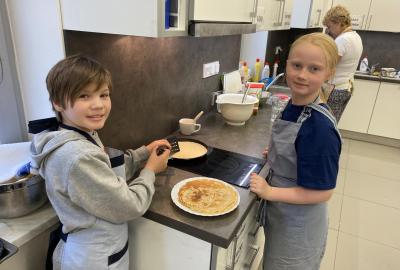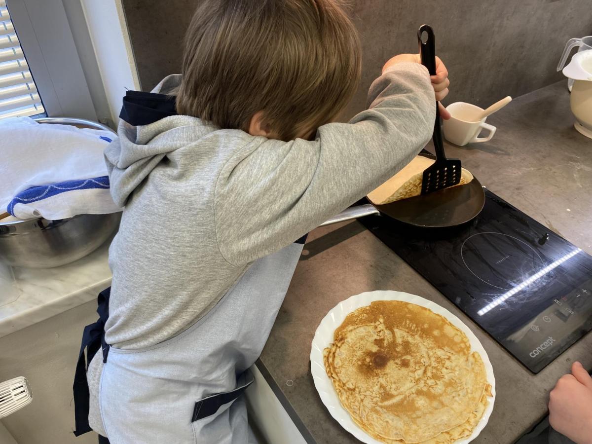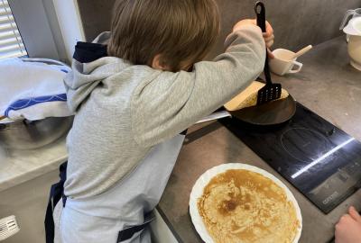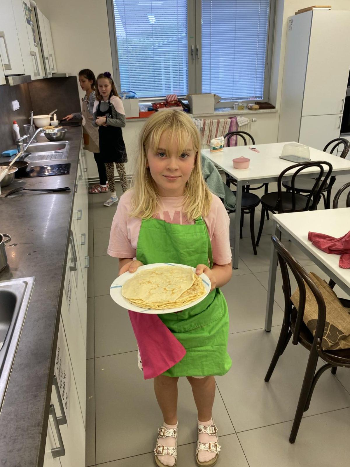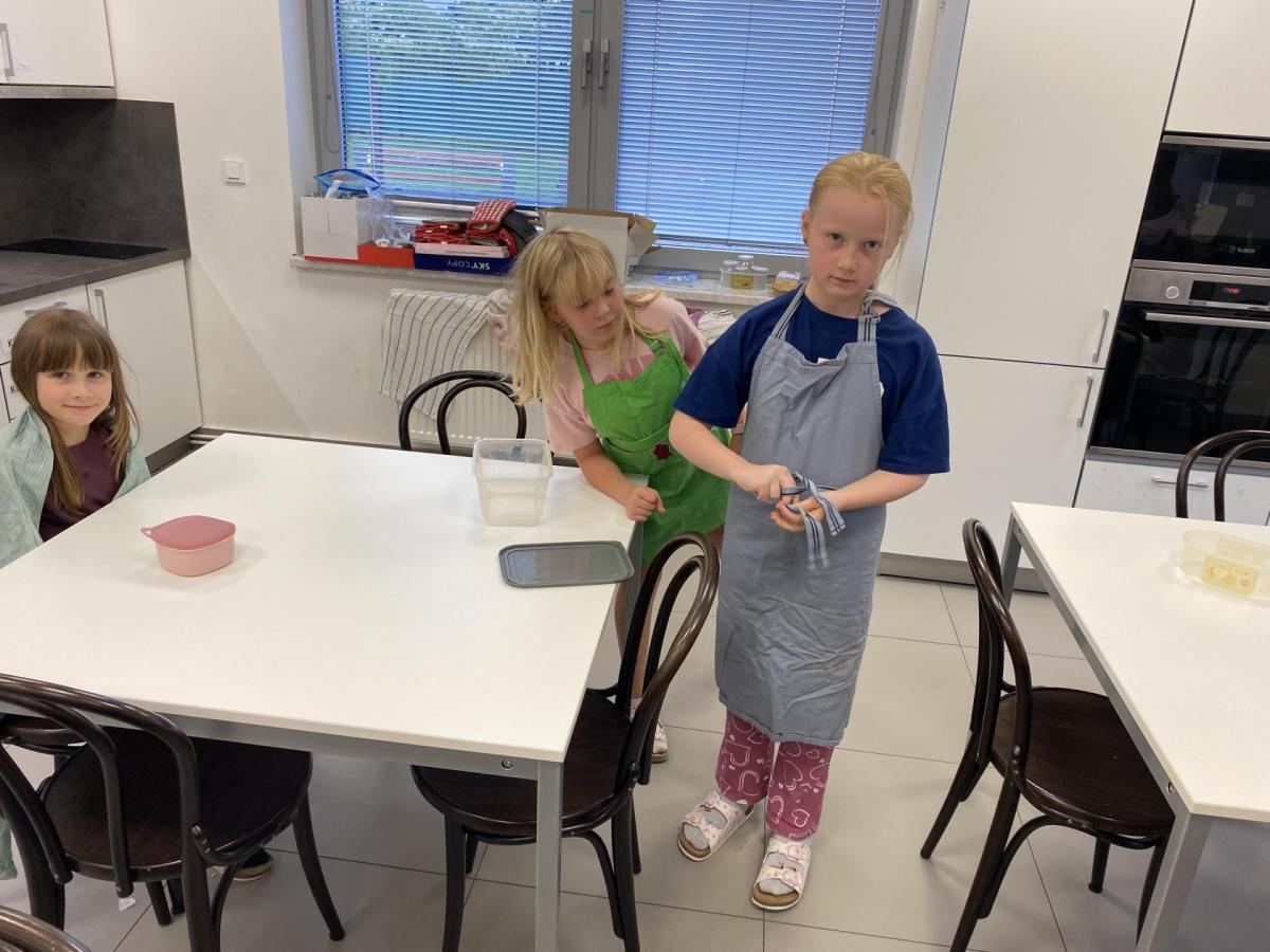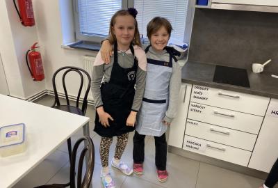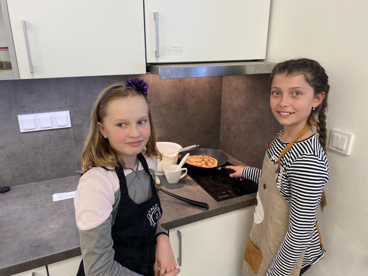 Letos nás čtvrteční odpoledne opravdu moc baví. Nejprve nás pan učitel Šimek pozve do počítačové učebny, kde se pod jeho vedením učíme první důležité aktivity na počítačích. Už jsme se naučili pracovat s programem Bakaláři, kam nám letos všichni učitelé zapisují známky, domácí úkoly, učivo a další požadavky k jednotlivým předmětům. Po informatice se rozdělíme na dvě poloviny a už se těšíme na pana učitele Honzu, který si nás odvede do technické dílny. Tu už známe z loňského roku, takže víme, že nás zde u pracovních "ponků" čekají svěráky, vrtačky, kladívka, pilky... a další pomůcky potřebné k výrobě předmětů ze dřeva i kovu. Prvním rokem chodíme do kuchyňky s paní učitelkou Strnadovou. Dnešní hodina pod jejím vedením patřila palačinkám. Mouka, mléko, vajíčka a pěkně pečlivě vyšlehat do hladkého těsta. Vůně palačinek přilákala i naši paní učitelku. A protože je vážně na sladké, dostala od nás jednu voňavou ochutnávku! Paní učitelka říkala, že jsme moc šikovní a palačinku slupla jedna dvě. V pololetí se obě skupinky vymění, aby si všichni vyzkoušeli kuchyňku i dílnu. Tak se těšíme, co nás čeká za týden.