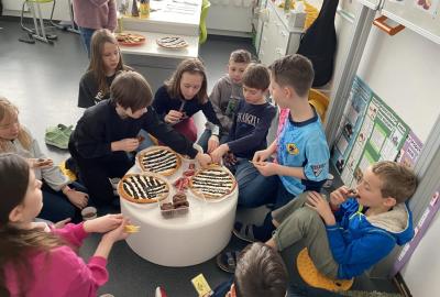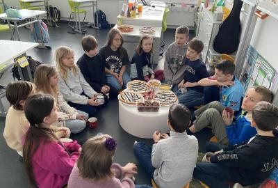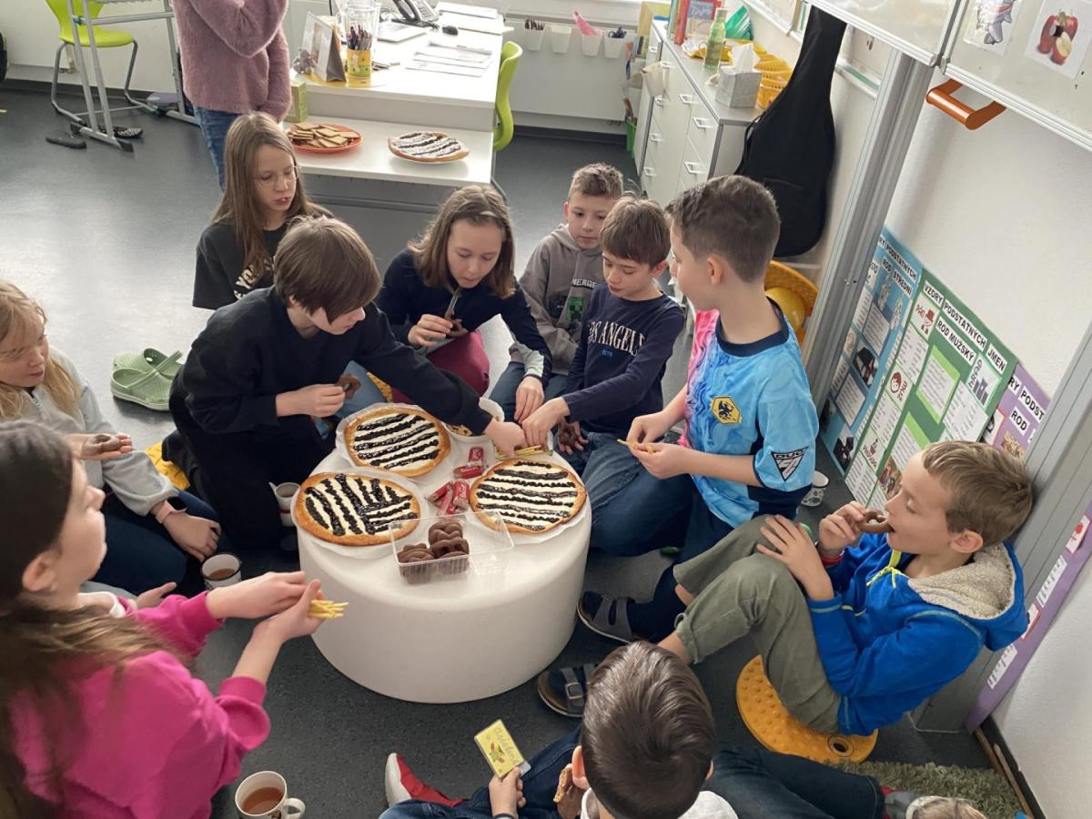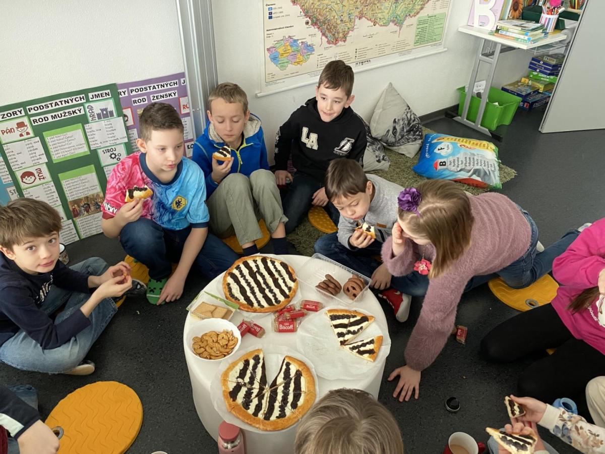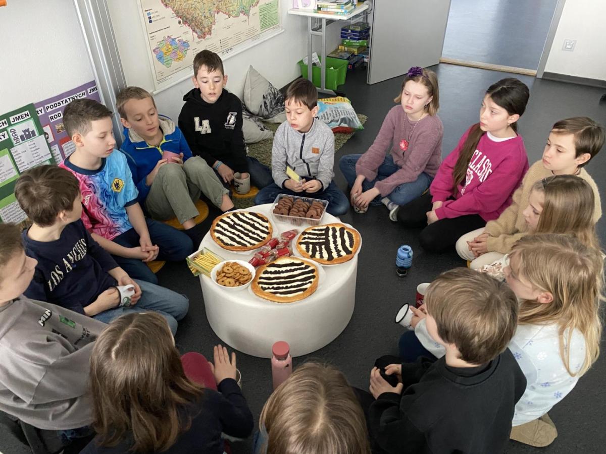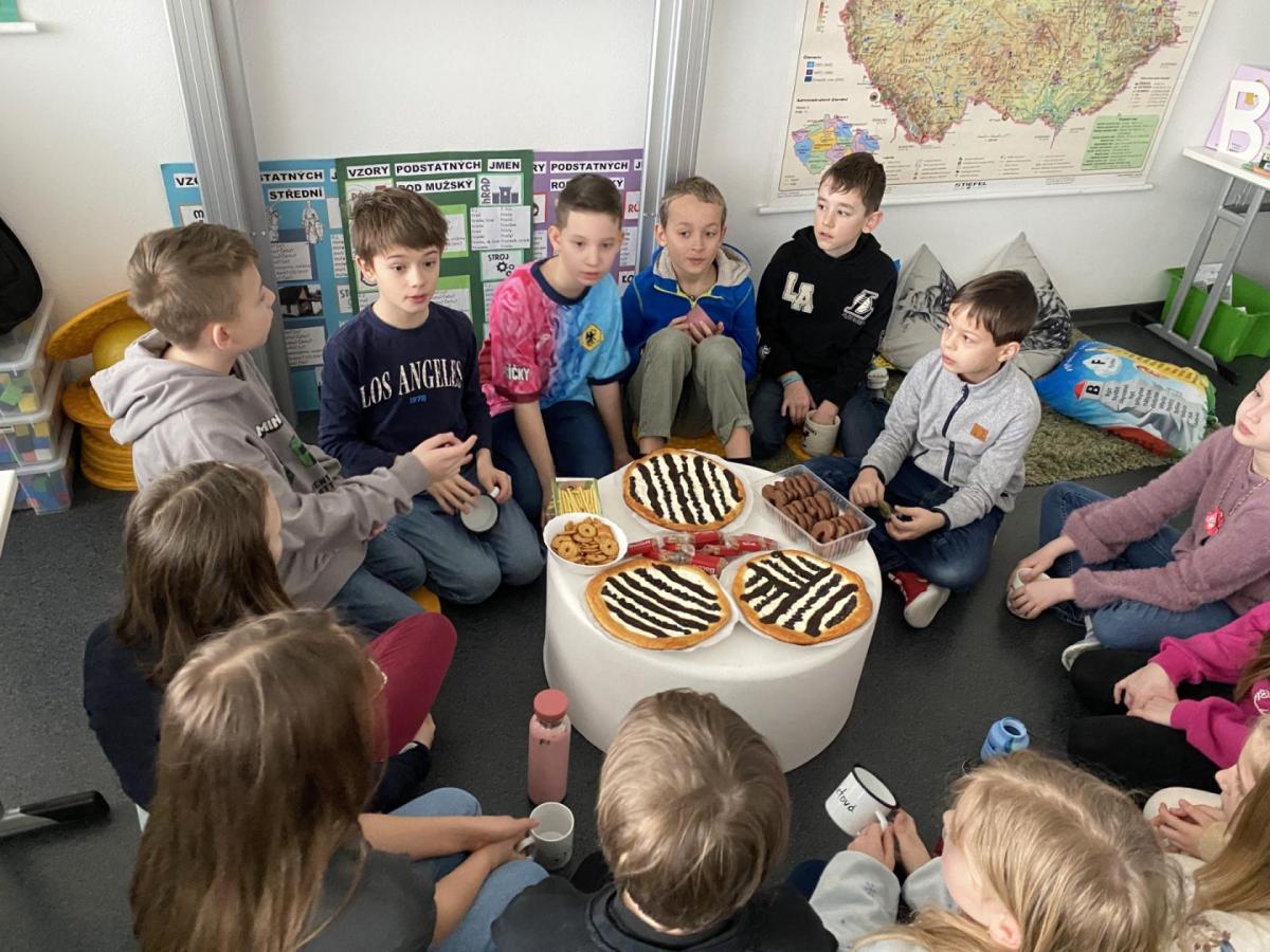 Třídní blok jsme zahájili opět opravdu příjemně - společnou snídaní nejen výborných chodských koláčů, které doma připravil Péťa za vydatné pomocí maminky. U dobrého jídla panovala pohodová nálada. V tomto úvodním kruhu jsme využili možnost povídat si i jinak než jen o škole.