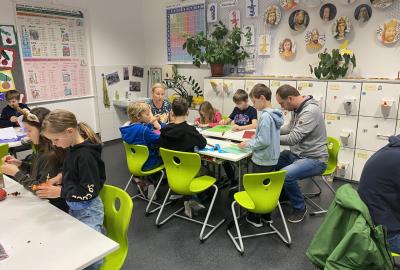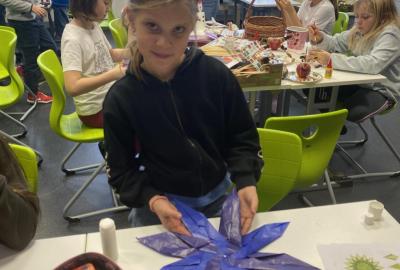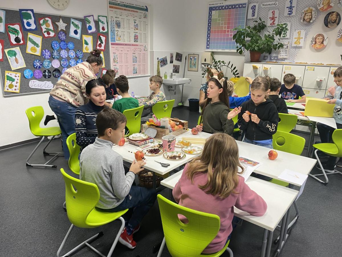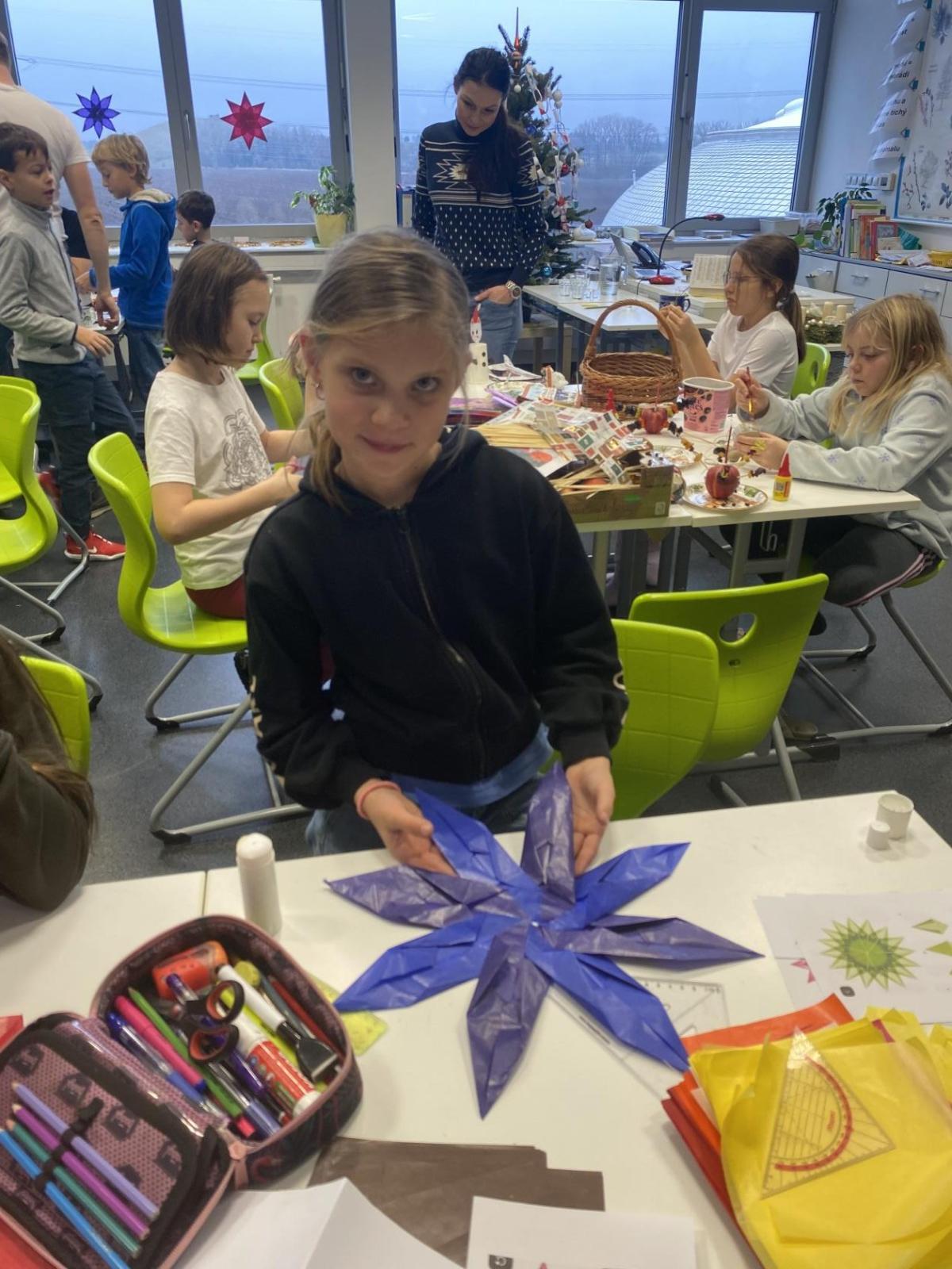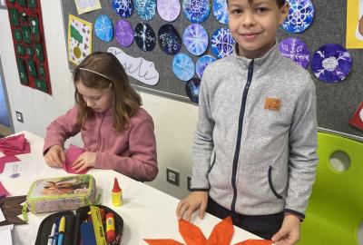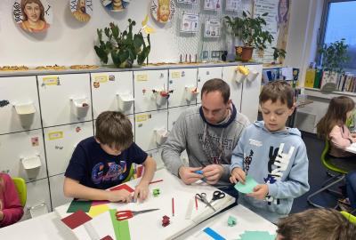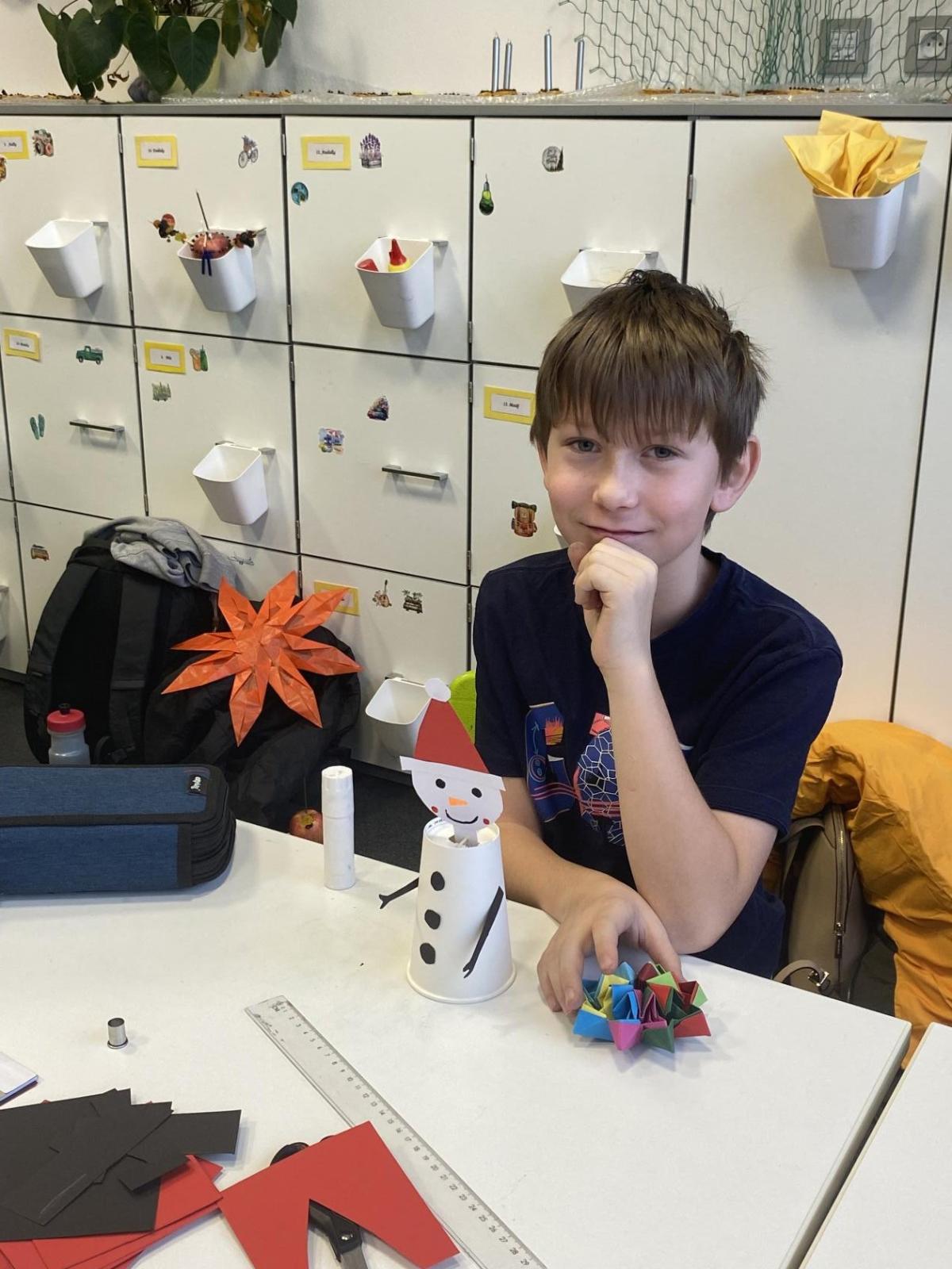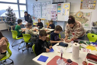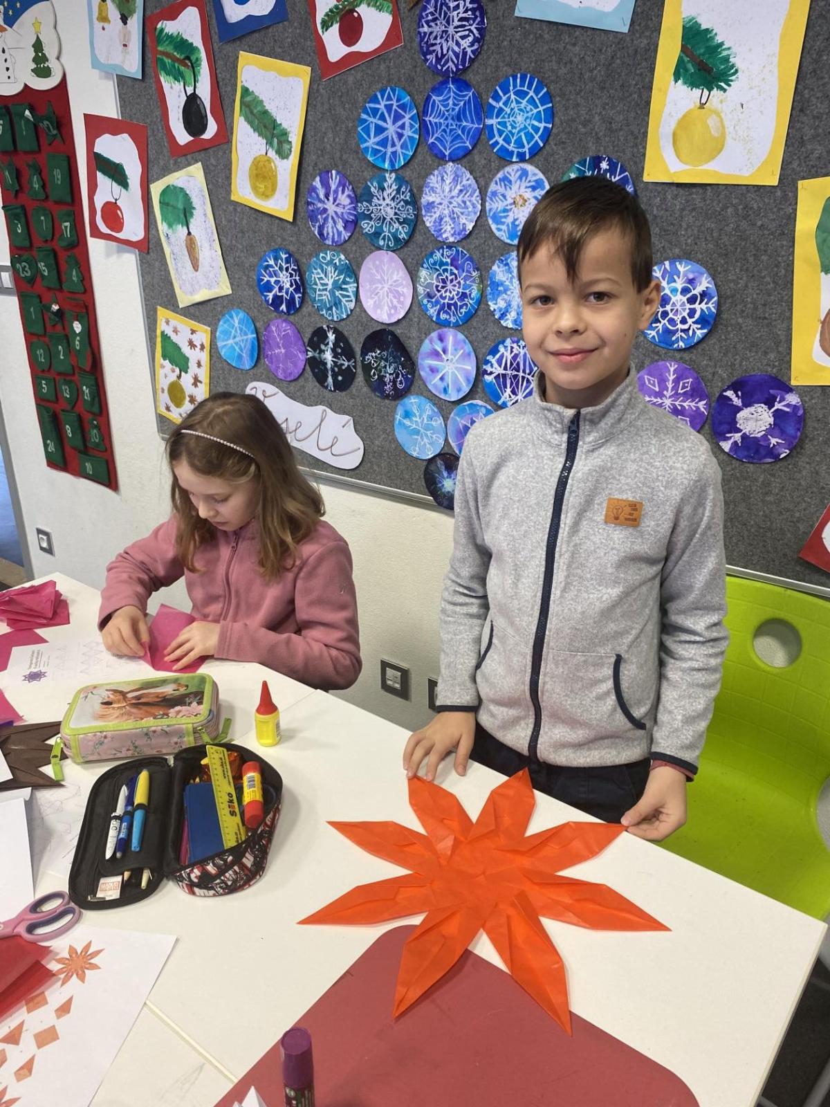 Jak to už s těmi tradicemi bývá, tato tvořivá, patří u nás ve třídě k nejoblíbenějším! Každý rok se těšíme, kdy za námi přijdou naši rodiče na celé dopoledne a na jakém krásném výrobku s nimi budeme pracovat. Maminka našeho Péti, za vydatné pomoci Sebíkova taťky, nás naučila skládat pohyblivý ornament z kartonu. V dílničce, kterou již tradičně vedli tatínkové Vojtíka a Matěje, jsme si vyrobili sněhuláčka z papírových kelímků. Každé vánoční období za námi do dílniček chodí také Zarinčina maminka, a vždy s sebou přinese nějaký neobvyklý nápad. Tentokrát to byla skládaná hvězda na okno z hedvábných papírů. Voňavou dílničkou nás provedla maminka naší Evelínky, protože jsme zde tvořili krásné svícky z jablíček a různým dalších dobrůtek. A ten, kdo byl při vyrábění svícnu rychlejší, si mohl ještě ozdobit kartonová srdíčka a kouličky ubrouskovou technikou. Všechny dílničky jsme si vážně moc a moc užili a výrobky se povedly nad očekávání. Naši kreativitu ocenila i paní ředitelka, která se zastavila na malou tvořivou ochutnávku. Čtyři dopolední hodiny plné nadšení, úsměvů, pohody a vánoční nálady uběhly jako mávnutím kouzelného proutku a my jsme se našimi maminkami a tatínky museli rozloučit. Poděkovali jsme jim bouřlivým potleskem a paní učitelka ještě s mrknutím oka přidala, že už se těší na Velikonoce. Určitě si zase něco hezkého vyrobíme. Tak moc a moc děkujeme a jsme vážně rádi, že vás to s námi stále baví!