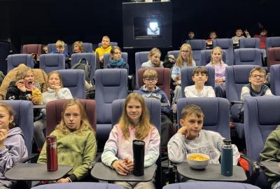 Po občerstvení na Staroměstském náměstí páťáci pokračovali do Edison Filmhub v Jeruzalémské ulici, kde na ně čekalo promítání filmu Medvědí princ. Velkolepé, srdečné a chytře vtipné vyprávění na motivy jedné z nejmilovanějších skandinávských lidových pohádek. Příběh o lásce, chamtivosti a odvaze, odehrávající se v krásné norské krajině děti mohly vidět v předpremiéře a moc se jim líbil.