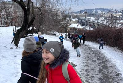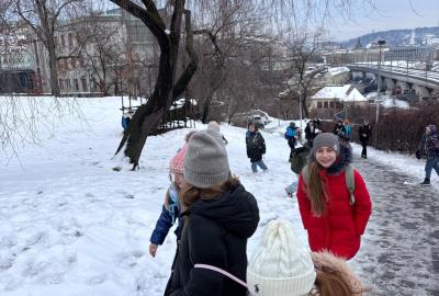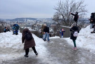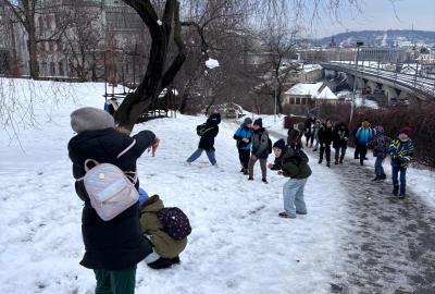 Protože cestou nahoru leželo v okolí ještě mnoho zbylého sněhu, strhla se mezi dětmi také bitva. Naštěstí jen sněhová a v přátelském duchu! Kluci a holky si ji ale opravdu užili!