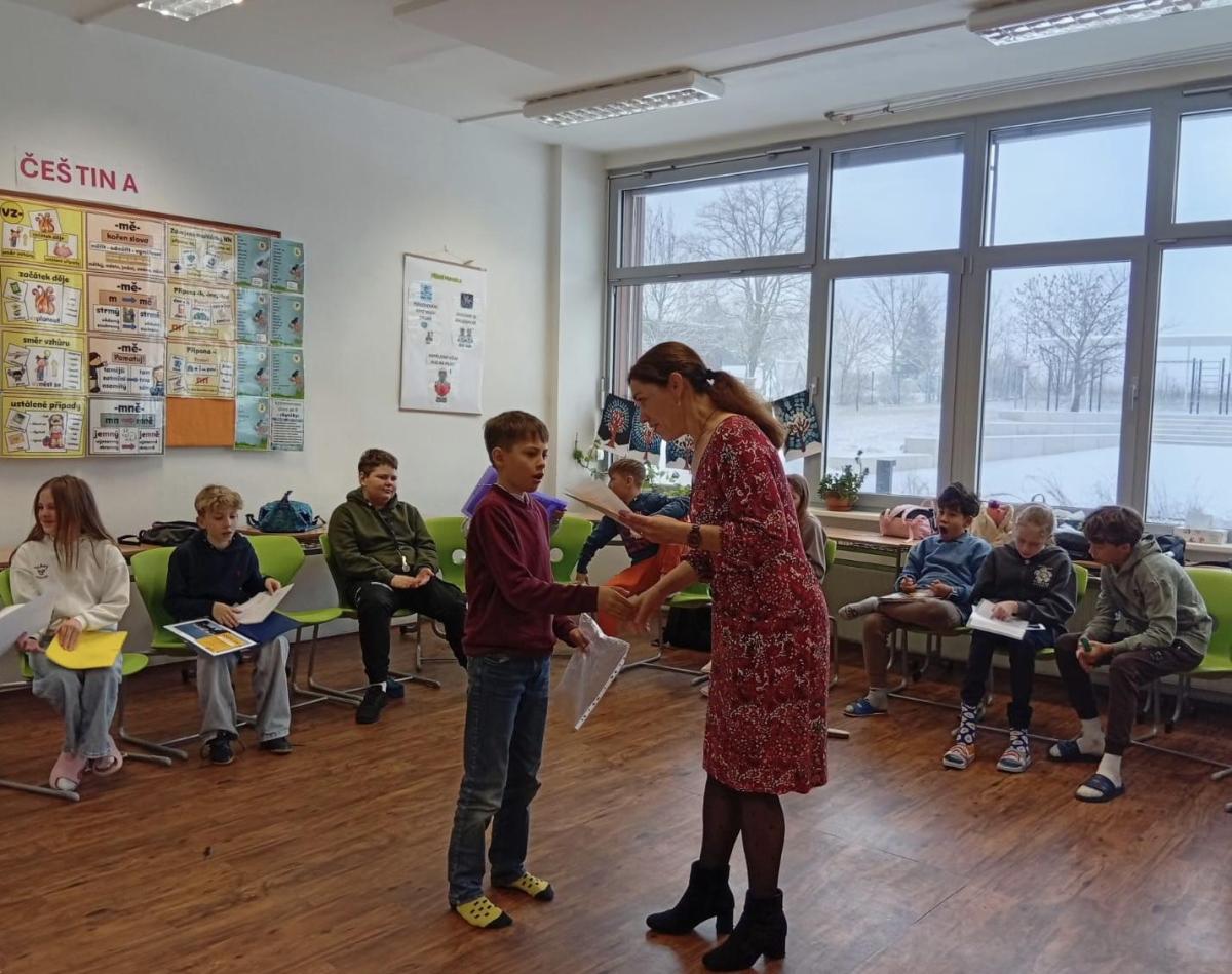 Ve čtvrtek 29.1. jsme se sešli ráno ve třídě v trošku slavnostní náladě. Kromě již tradiční KiVa lekce nás čekalo zhodnocení celého pololetí a hlavně VYSVĚDČENÍ!