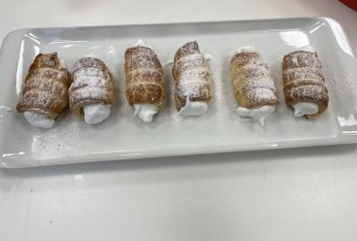 Čas konce 1. pololetí se nachýlil ke svému konci. Děti dnes v tomto školním roce byly v kuchyňce naposledy. A tak si každý z dětí mohl připravit dle svého nápadu obložené chleby, či chlebíčky. Vyvrcholením hodiny pak byla příprava kremrolí s bílkovým italským sněhem.