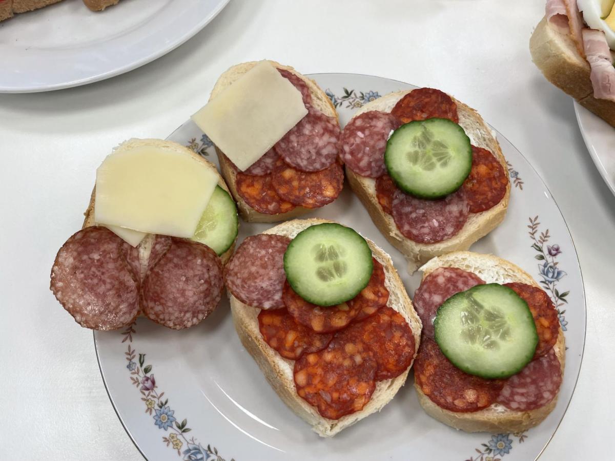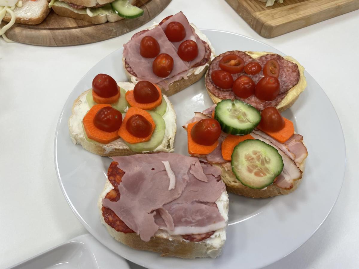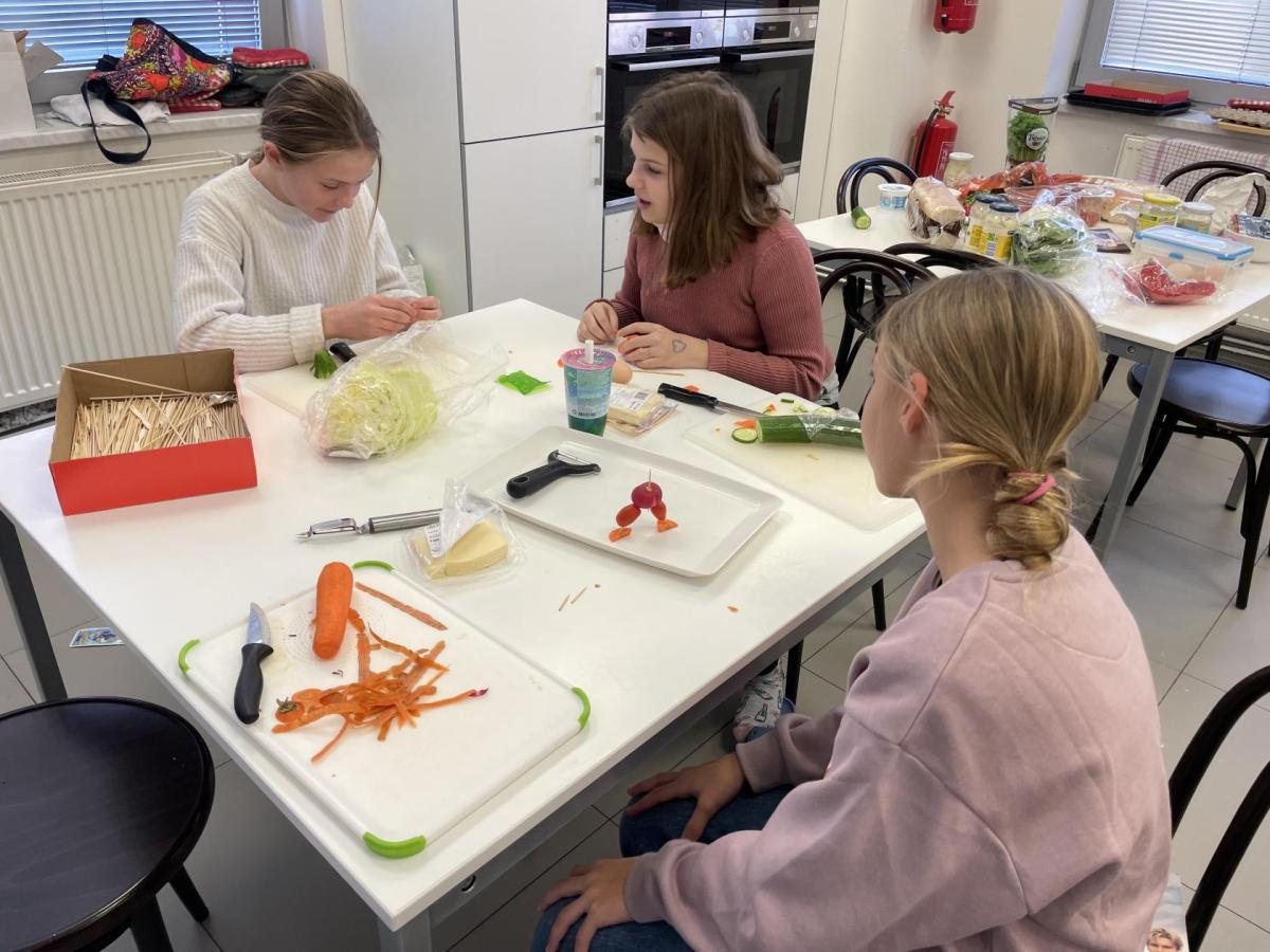 Dnešní hodina vaření se nesla v duchu přípravy pohoštění na párty. Nepřipravovaly se pouze chlebíčky, ale ze surovin, které se používají na přípravu chlebíčků, měly děti za úkol vyrobit "ozdoby", které prostřený stůl s chlebíčky vyladí na vyšší level. Byla jsem zvědavá, jak tento úkol splní. A tak jsem děti vyfotila pouze v samém začátku práce - a pak už jejich výslednou práci. Byla jsem mile překvapená, co děti vše vymyslely.
