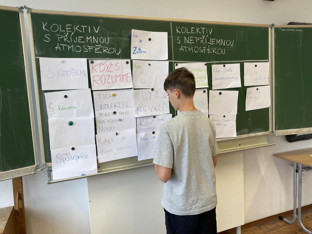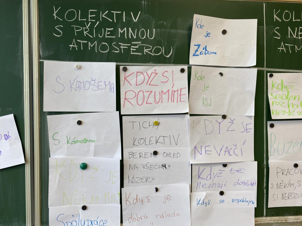 Zajímavá byla také diskuze o tom, jak vypadá kolektiv s příjemnou atmosférou a naopak kolektiv, ve kterém se lidé necítí dobře. Výsledek práce ve skupinkách jsme pečlivě zaznamenali a rozebrali. Na závěr lekce děti formulovaly tři přání pro třídu, která směřovala ke zlepšení vztahů a vytvoření přátelštějšího prostředí.