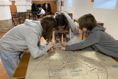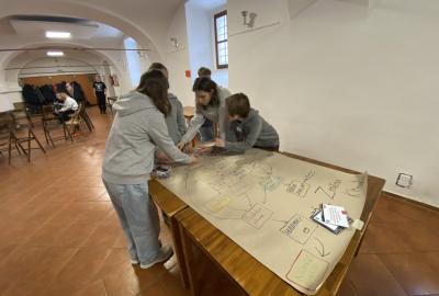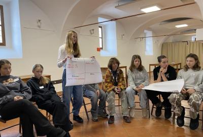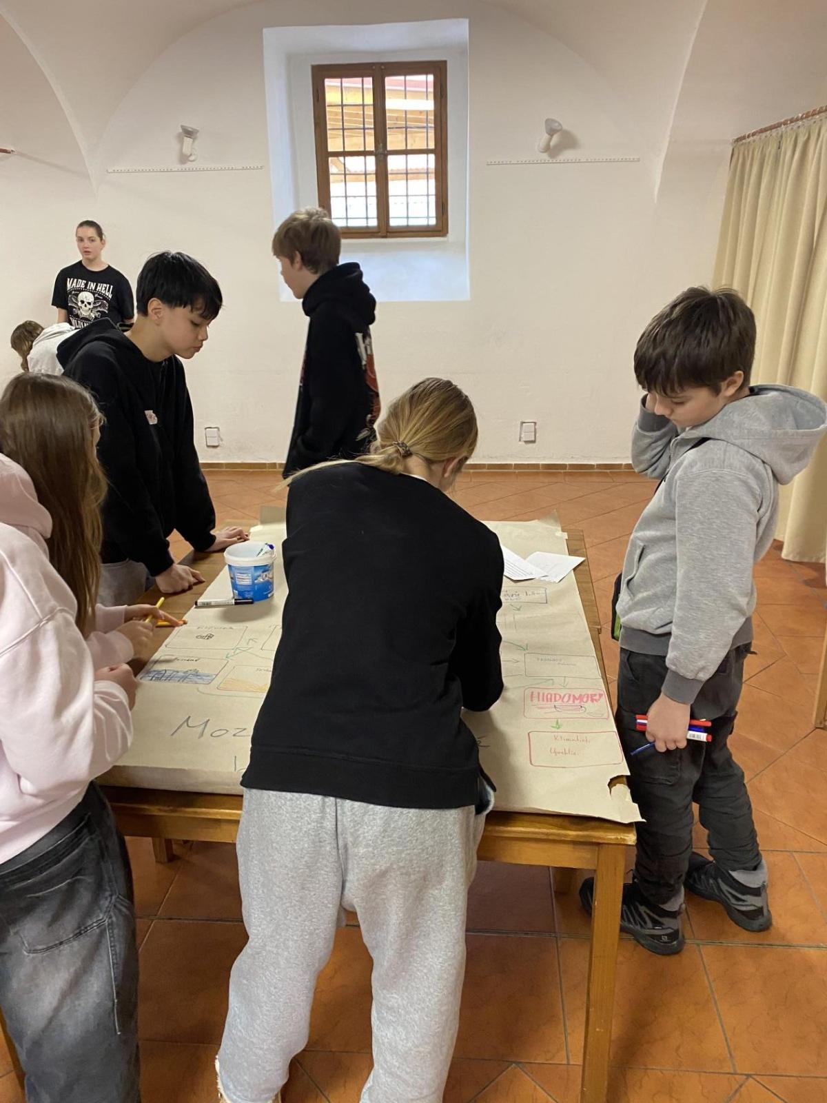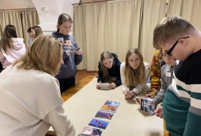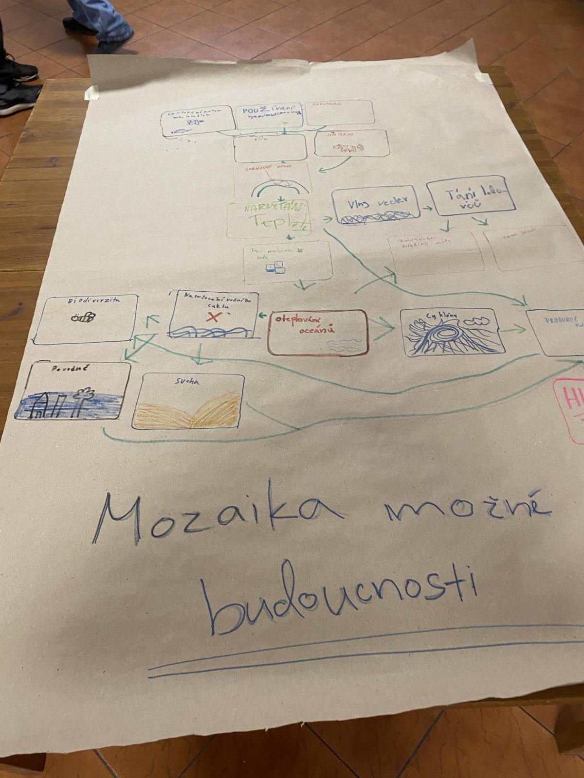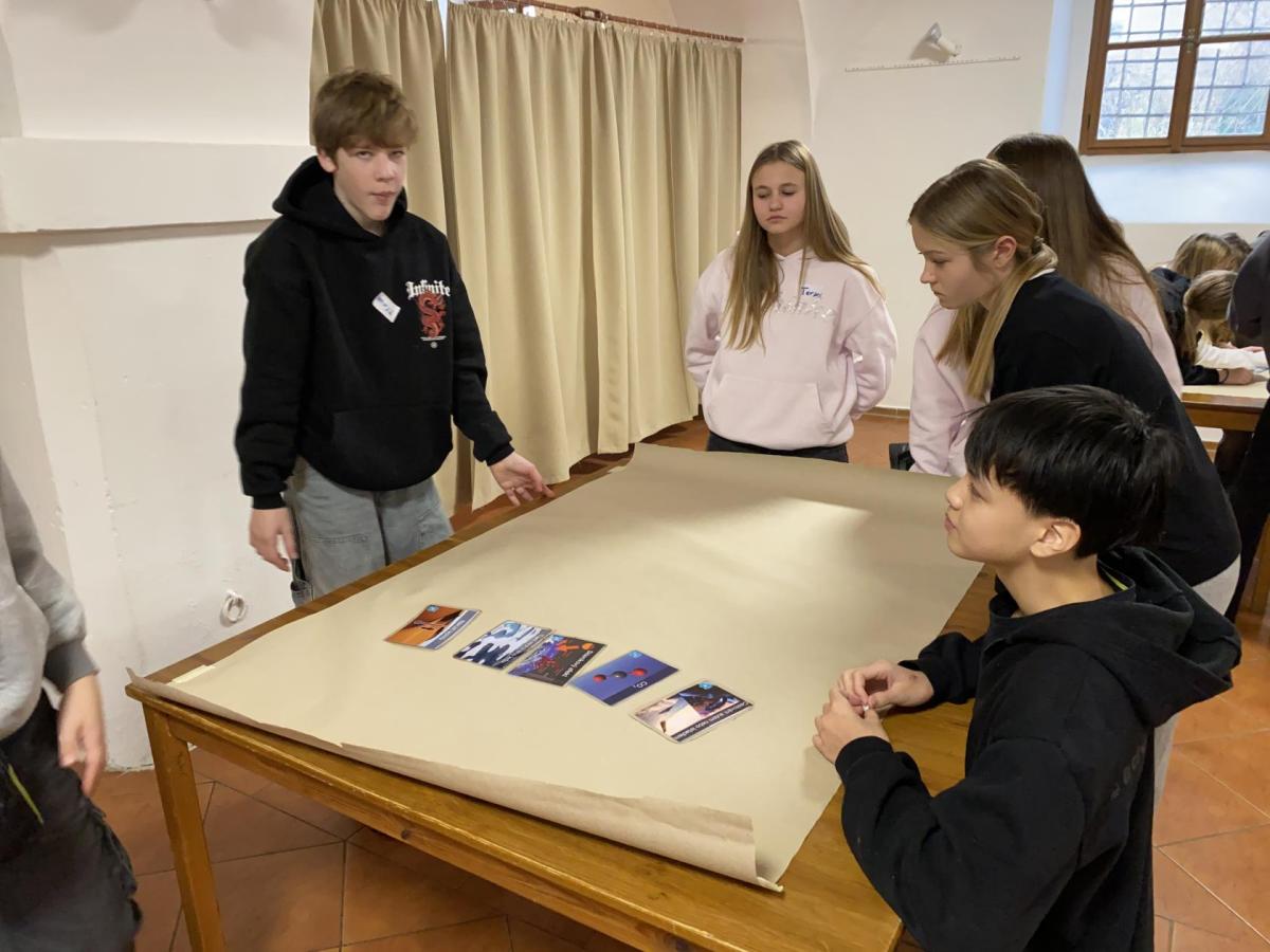Sedmáci navštívili Toulcův dvůr, kde pomocí obrázkové karetní hry přicházeli na souvislosti problému klimatické změny. Tato hra byla součástí mezinárodně osvědčeného workshopu Climate fresk neboli Klimatické mozaiky.