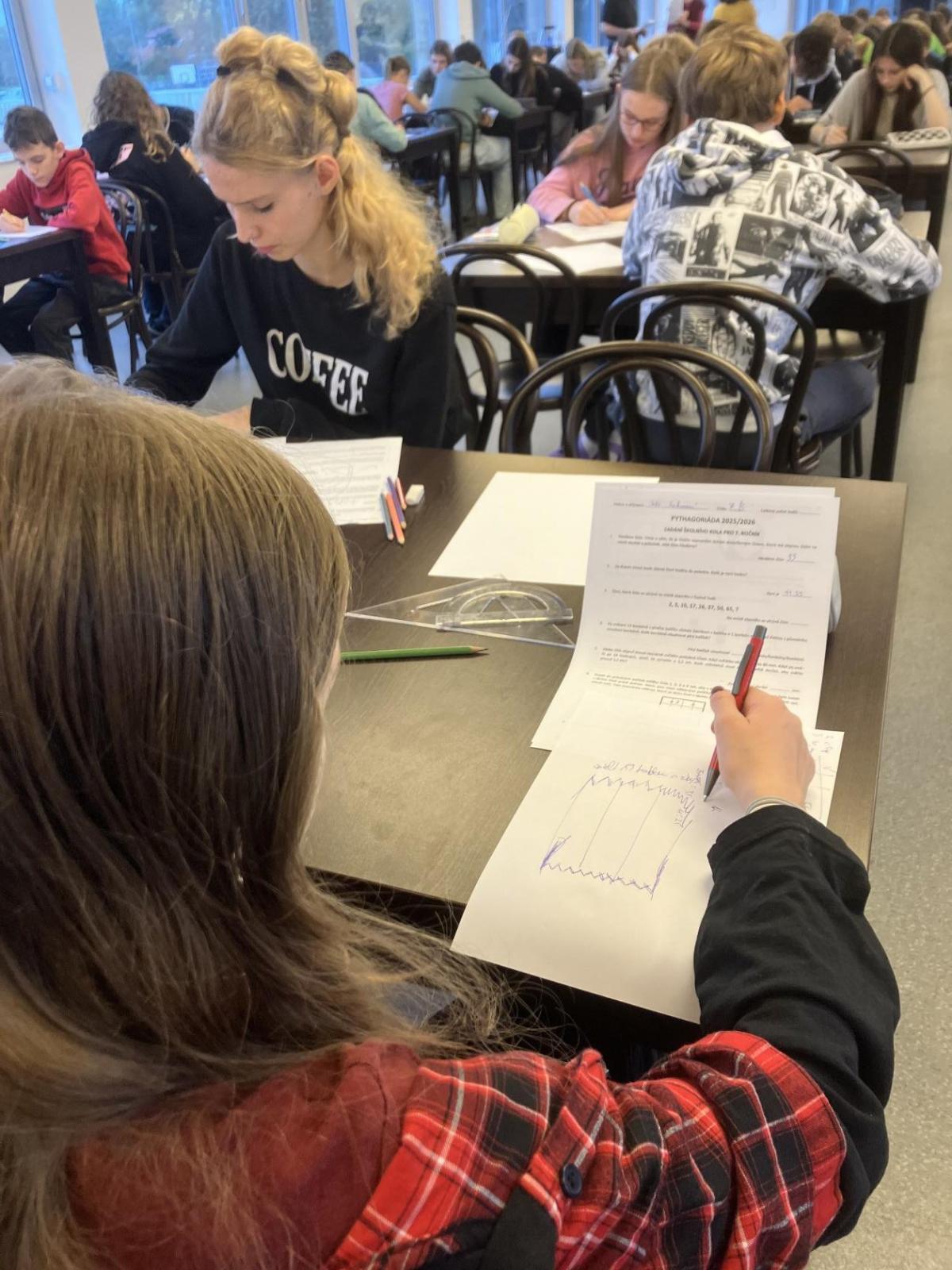 V pátek 17. 10. 2025 jsme pro žáky 6. až 9. ročníků uspořádali školní kolo matematické soutěže Pythagoriáda.