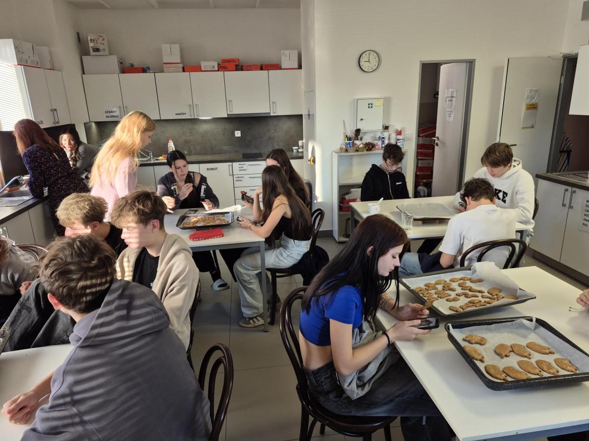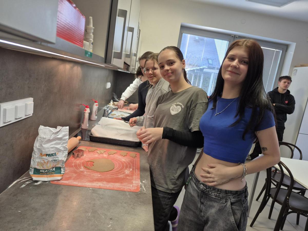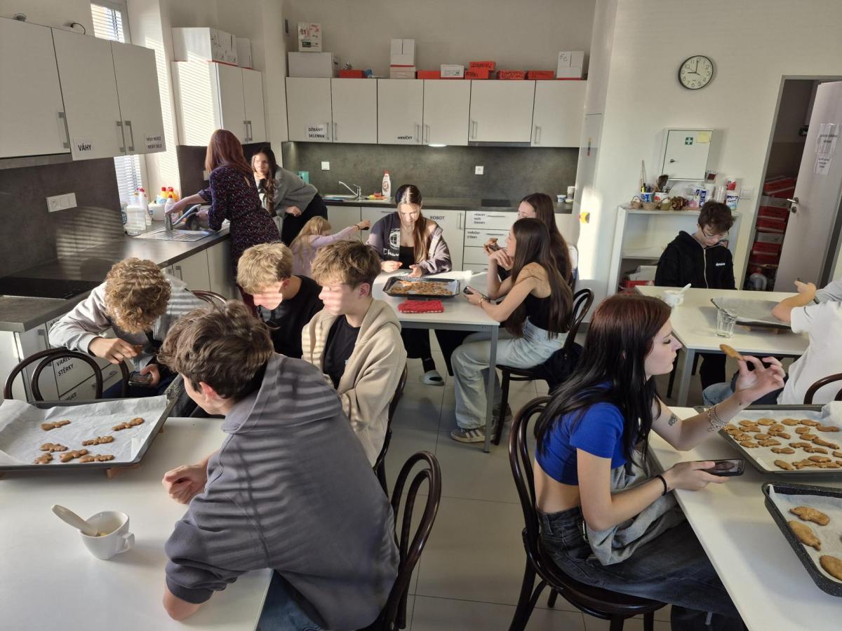 Část třídního bloku 19.11. jsme strávili ve školní kuchyňce. Ovládla nás vánoční nálada a upekli jsme si perníčky. Mohli bychom je nechat odpočinout a změknout.....ale to víte, na konci pečení už nezbyl ani jeden. Po návratu do třídy nás čekalo naopak velmi těžké téma. Naše škola se opět zapojila do akce Bubnovačka a my si připomněli, že každý nemá takové štěstí a nemůže žít život bez násilí. O to víc jsme se snažili vytvořit hluk při společném bubnování a podpořit tak ty, kteří nejsou slyšet.
