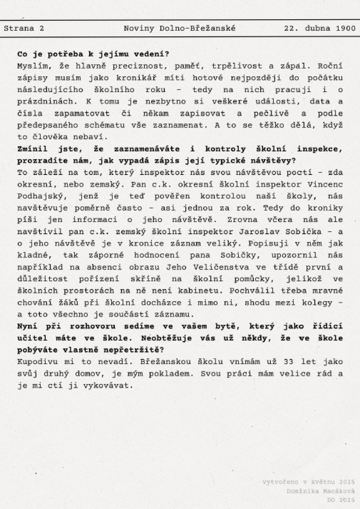 200 let břežanské školy: Damas Muchka – řídící učitel a kronikář, osobnost regionálního významu