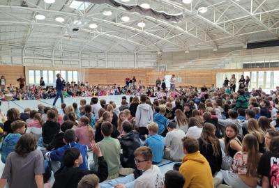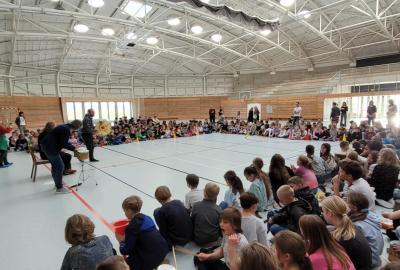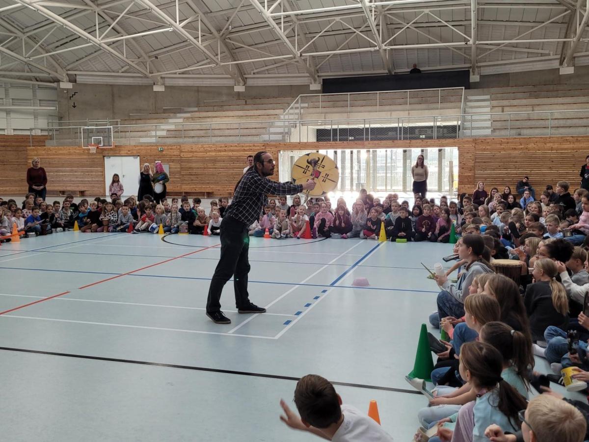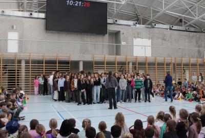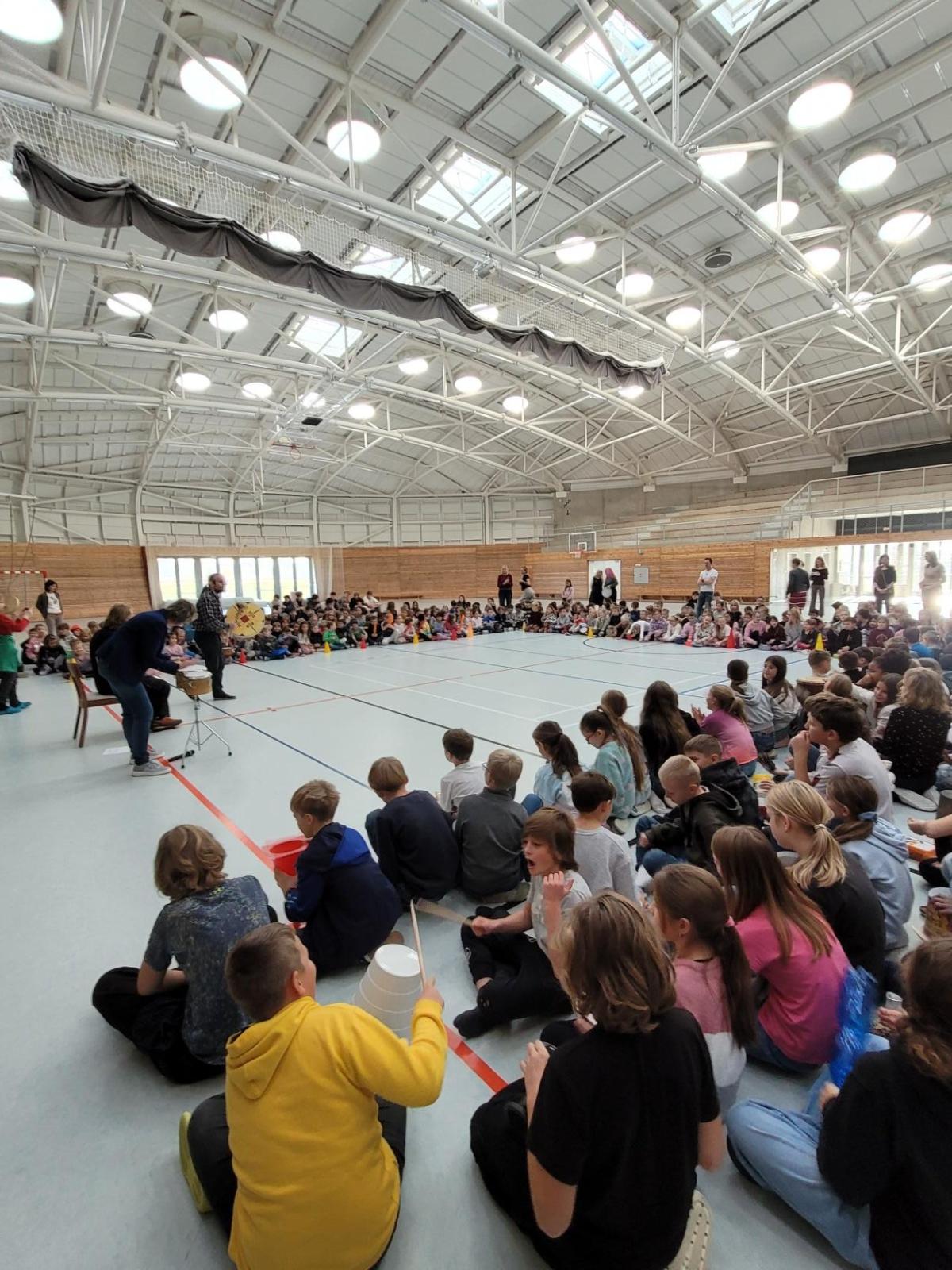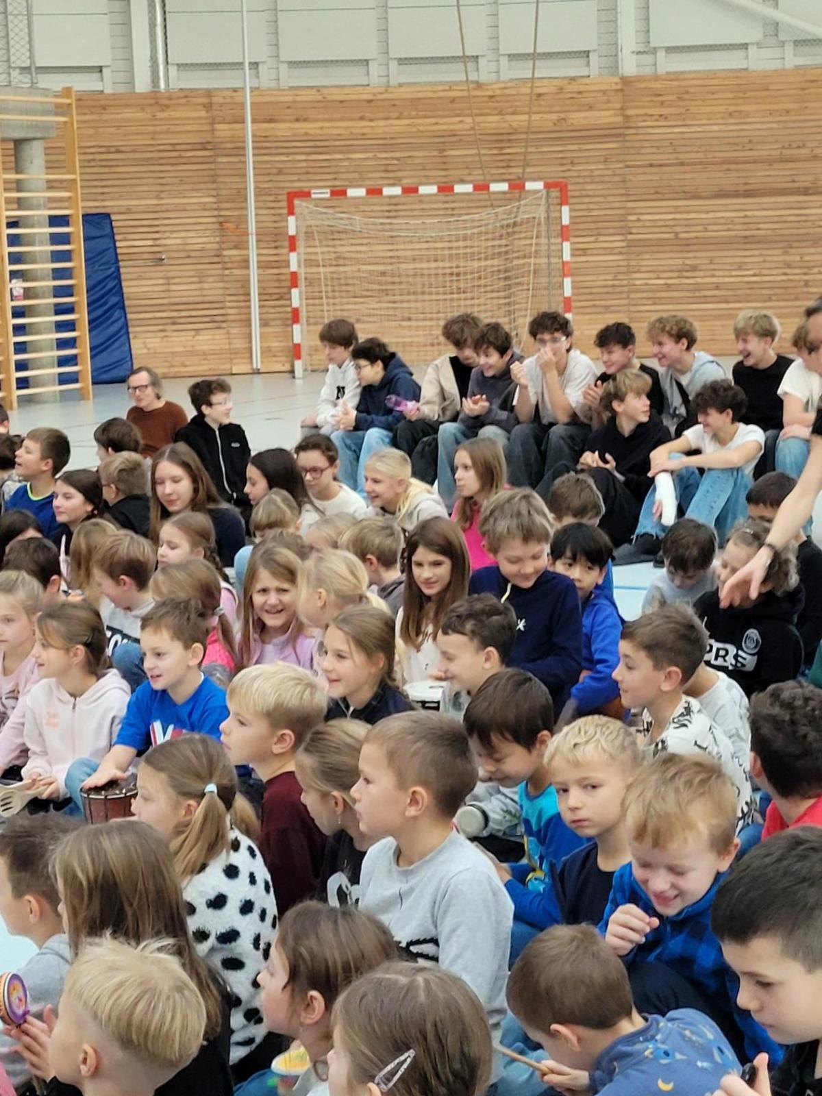 Ve středu 19. listopadu jsme se již potřetí připojili k celorepublikové akci Bubnovačka. Zvuk bubnů, které symbolicky dávají hlas dětským obětem domácího násilí, se nesl celou republikou, a to včetně Pražského hradu – akci totiž podpořil i prezident Petr Pavel. Břežanská škola nemohla chybět, a tak se žáci i zaměstnanci školy sešli v naší sportovní hale, aby společně zabubnovali pro dobrou věc.