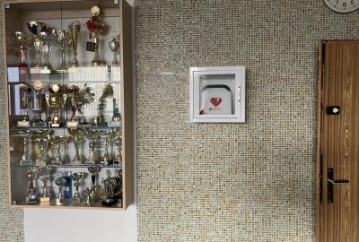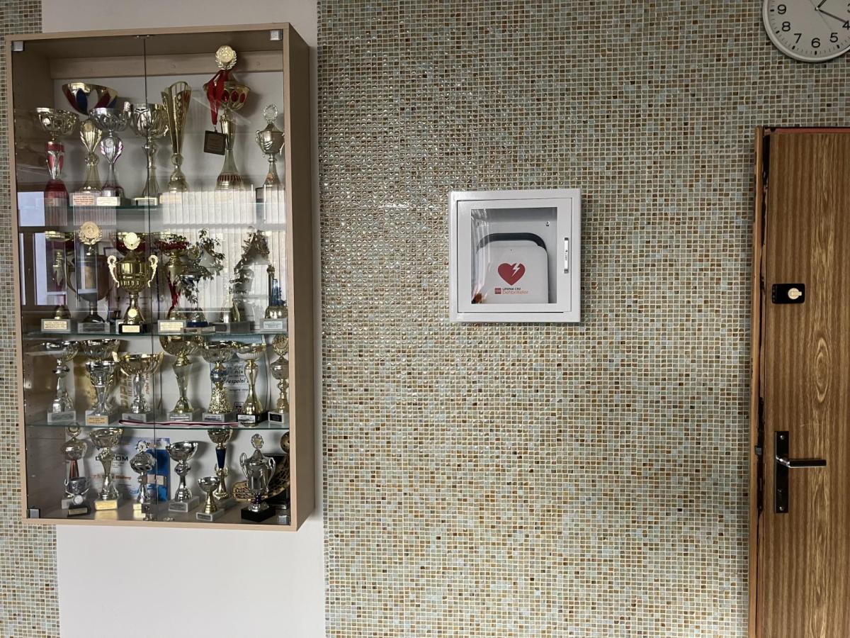 V komplexu školy byly nově nainstalovány dva plně automatizované AED defibrilátory, které jsou připraveny k použití v případě náhlé zástavy oběhu. Jejich umístění bylo zvoleno tak, aby byly co nejdostupnější v různých částech školy. První AED se nachází ve středu školy, v centrální hale původní budovy školy (z ulice Na Vršku). Druhý AED je umístěn ve vstupním krčku sportovní haly (u stanoviště správce haly).