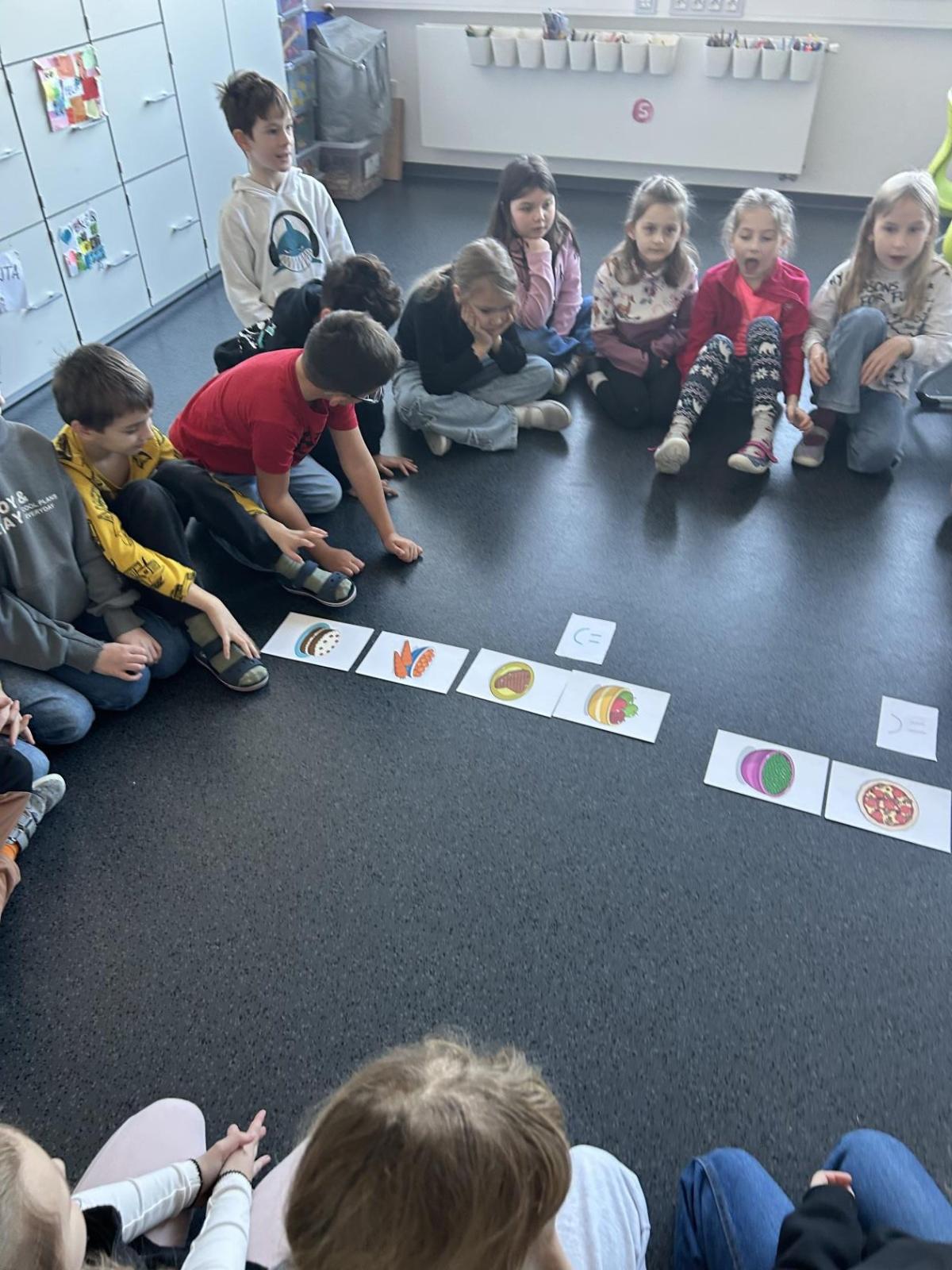 V hodině angličtiny s paní učitelkou Štambachovou jsme se tentokrát věnovali tématu The Lunch – jídlo a oběd. Děti se seznamovaly s novými anglickými slovíčky pomocí obrázků, poslechu a společného opakování. Učily se názvy různých jídel, jako je apple, banana, pizza, chicken, carrots a další, a postupně si je upevňovaly v krátkých aktivitách.