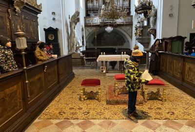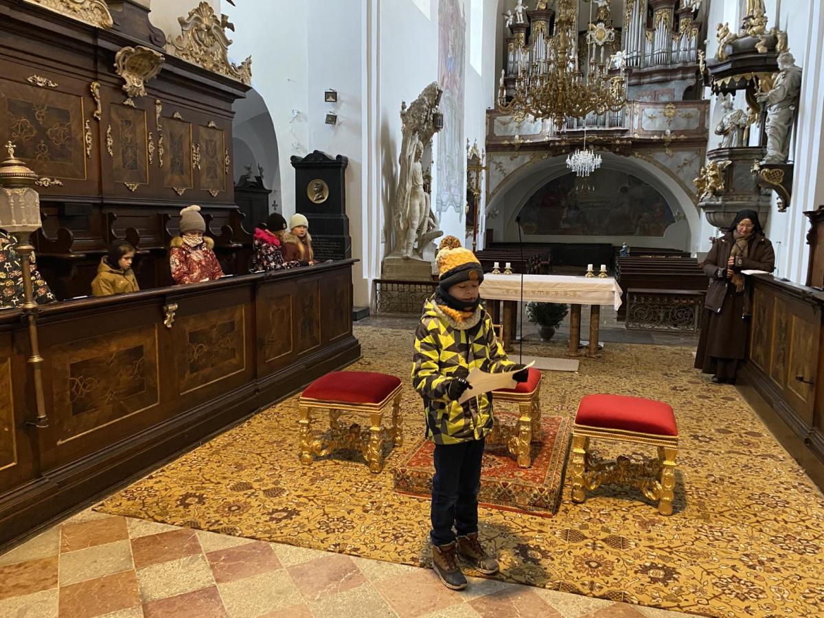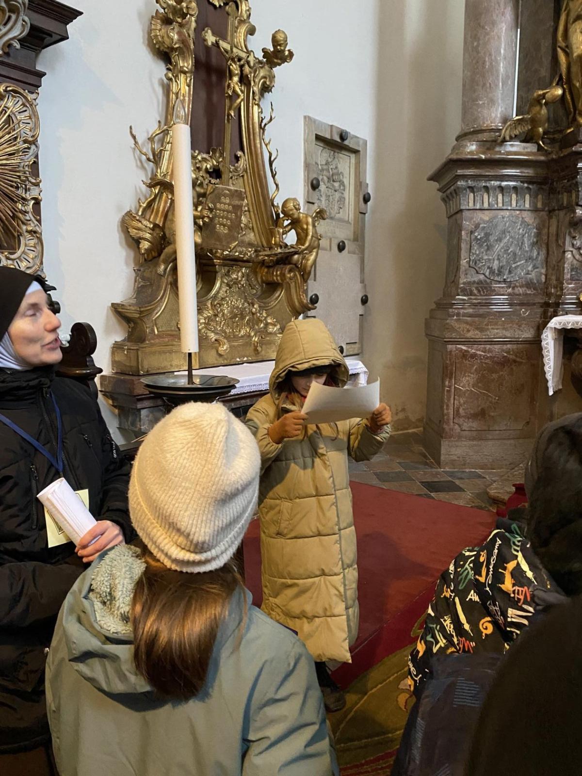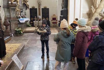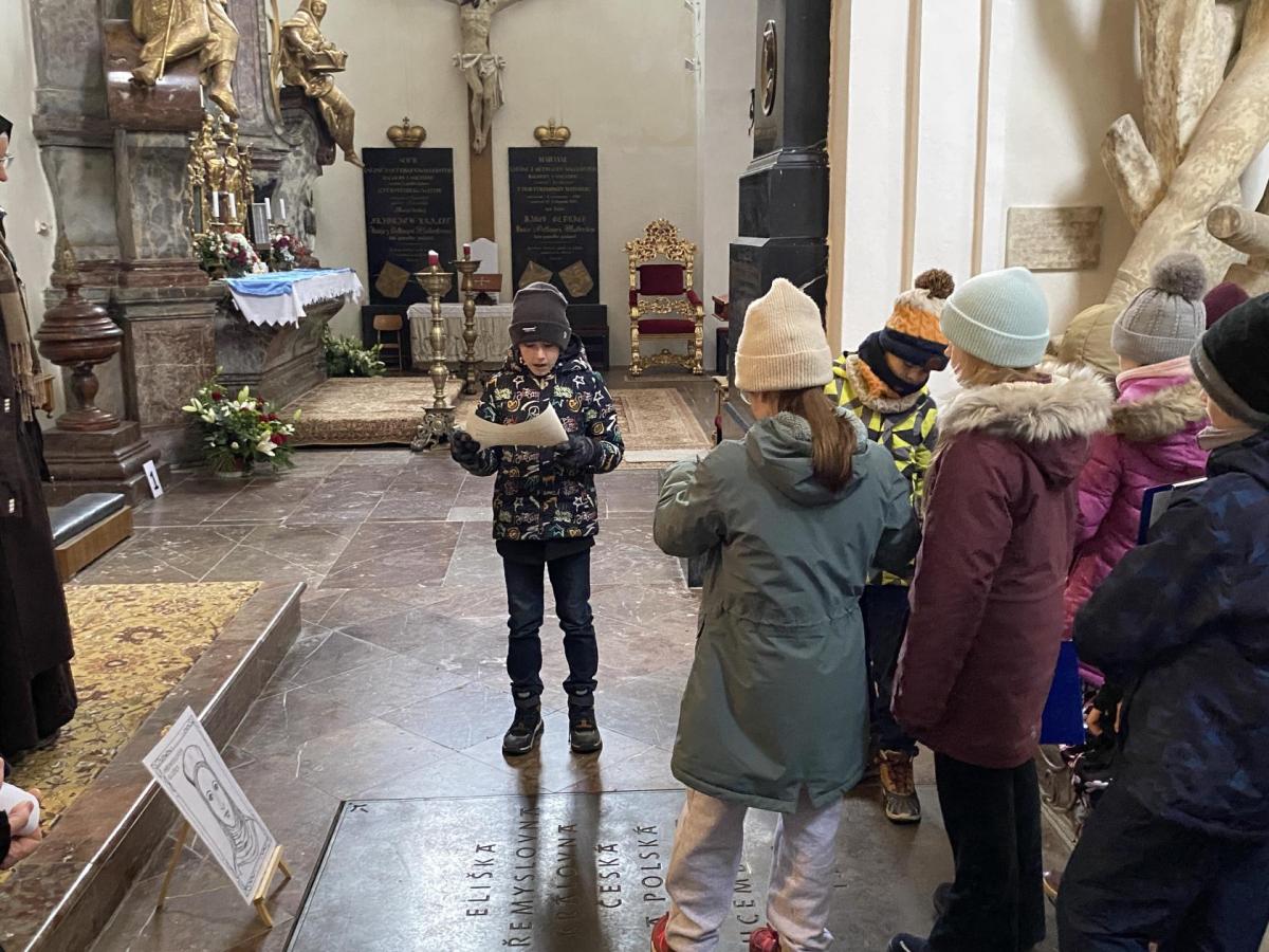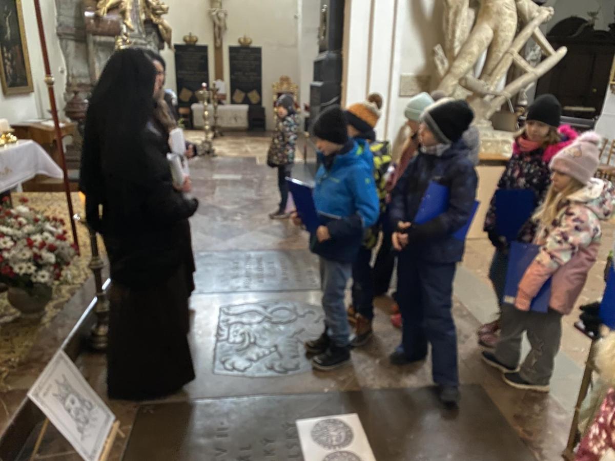 Prohlédli jsme si vybavení a uměleckou výzdobu vnitřních prostor kostela. Dozvěděli se více o jeho historii i o každodenním životě mnichů, kteří byli v minulých dobách významnými představiteli vzdělanosti. Významnou částí programu bylo také čtení ze Zbraslavské kroniky. Zopakovali jsme si význam těchto knih (kronik), do kterých se zaznamenávaly důležité události své doby, a tím nám dnes pomáhají lépe historii porozumět.