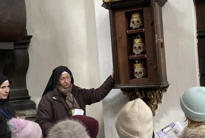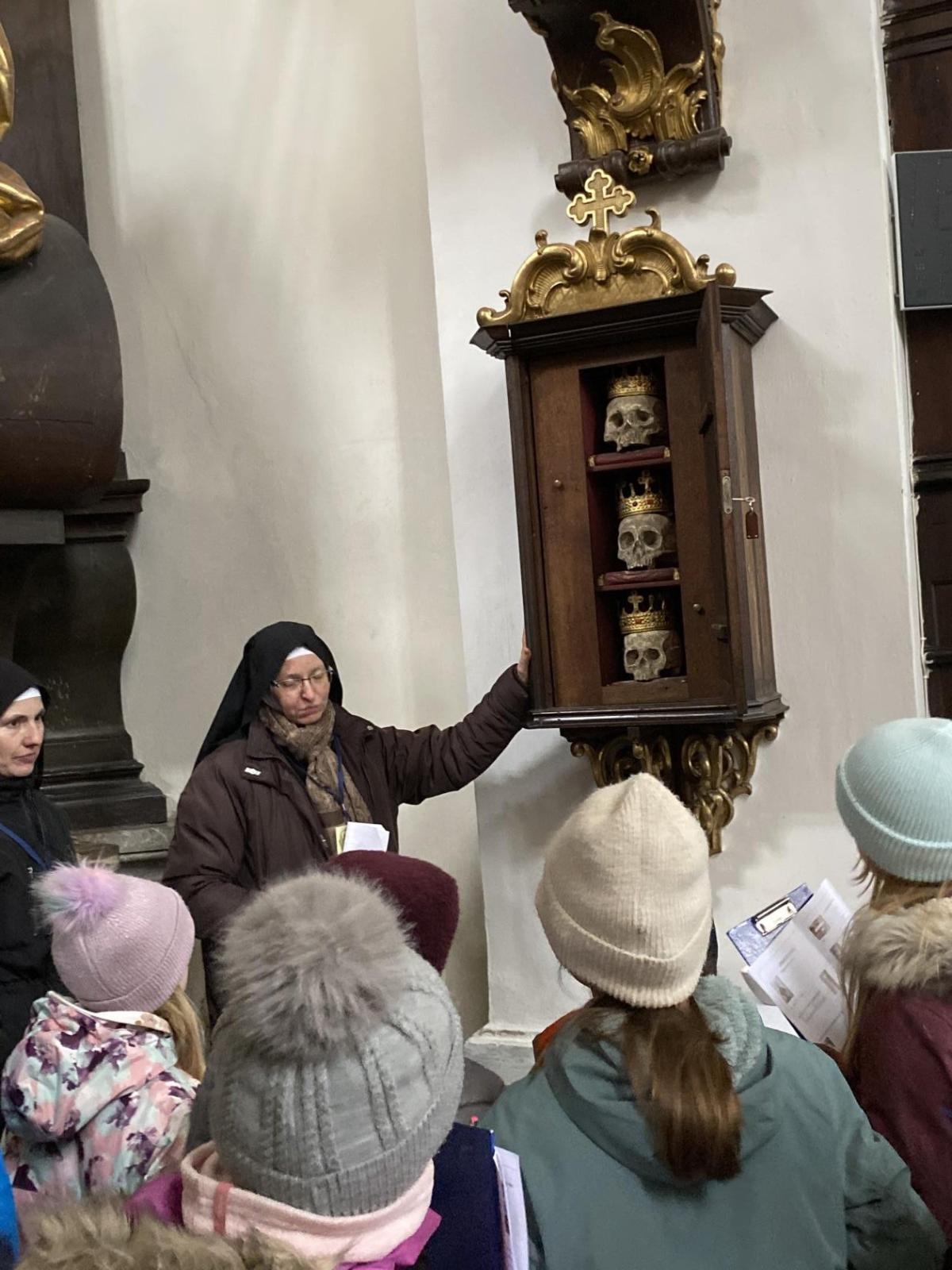 Prohlídkou Zbraslavského kláštera a zámeckého areálu, jehož součástí je i barokní kostel sv. Jakuba Většího, nás provedly sestry karmelitky - Jitka a Anastazia. Během prohlídky jsme si připomněli především osobnost Elišky Přemyslovny, matky a manželky. Zastavili jsme se u jejího hrobu a vyslechli si zajímavosti z jejího života i z osudu dalších potomků Přemyslovců a Lucemburků, kteří jsou s tímto místem spojeni.