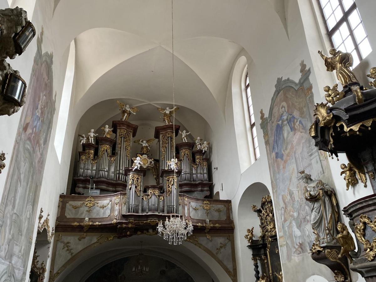 Milým překvapením byla pozvánka na nejvyšší část chrámové lodi, kde byly na hudební kruchtě (kůru) umístěny nádherné barokní varhany. Směli jsme si jejich píšťaly nejen prohlédnout, ale i dotknout se jejich těla. Sestra Jitka nám na varhany zahrála a dokonce nám prozradila, že tyto zbraslavské mají píšťal téměř dva tisíce! Zážitek to byl obrovský! Vůbec je velmi zajímavé poznávat české dějiny přímo na místech, kde se skutečně odehrály. Tak se těšíme na další historické toulání!