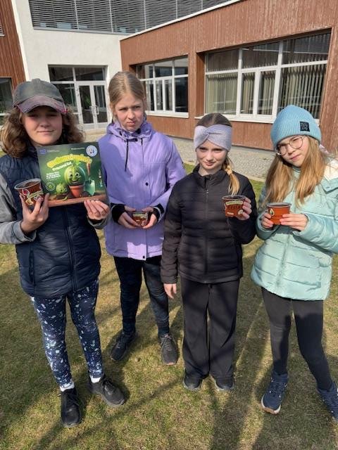 Protože sluníčko hezky svítilo, vyrazili páťáci také na hřiště školy, kde se proběhli. A hlavně si připravili květináče a zaseli semínka dvou druhů melounů. Sady na zasetí jsme obdrželi z projektu Ovoce a mléko do škol. Po loňské zkušenosti s cherry rajčaty se letos páťáci pustí do pěstování melounů. Uvidíme, jak budou úspěšní a zda se někdo v létě pochlubí melounem. A pokud se žákům nepodaří melouny vypěstovat, nevadí, i tak pro ně bude cenná zkušenost, že vypěstovat si "něco na zub" není tak jednoduché.