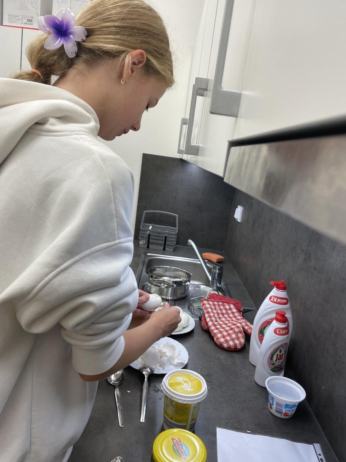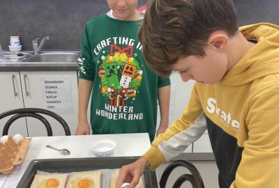 Dnes v kuchyňce panovala skvělá nálada, všechny děti pracovaly s nebývalým nasazením, každá skupinka dětí pracovala samostatně podle psaného receptu. Všichni jsme si hodiny vaření moc hezky užili.