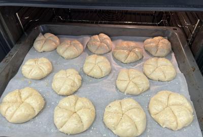 Vstoupili jsme do 2. pololetí školního roku 2025/2026 - v kuchyňce se vystřídaly děti a opět jsme začali oblíbenými řízky. Na třech pracovištích kluci obalovali a smažili kuřecí řízky. Nepřipravovali jsme jen řízky. Kluci podle receptu připravili piškot. Kaiserky z kynutého těsta dopadly na výbornou, jen se po nich zaprášilo. Vlastně, vše se snědlo - a tak to má být.