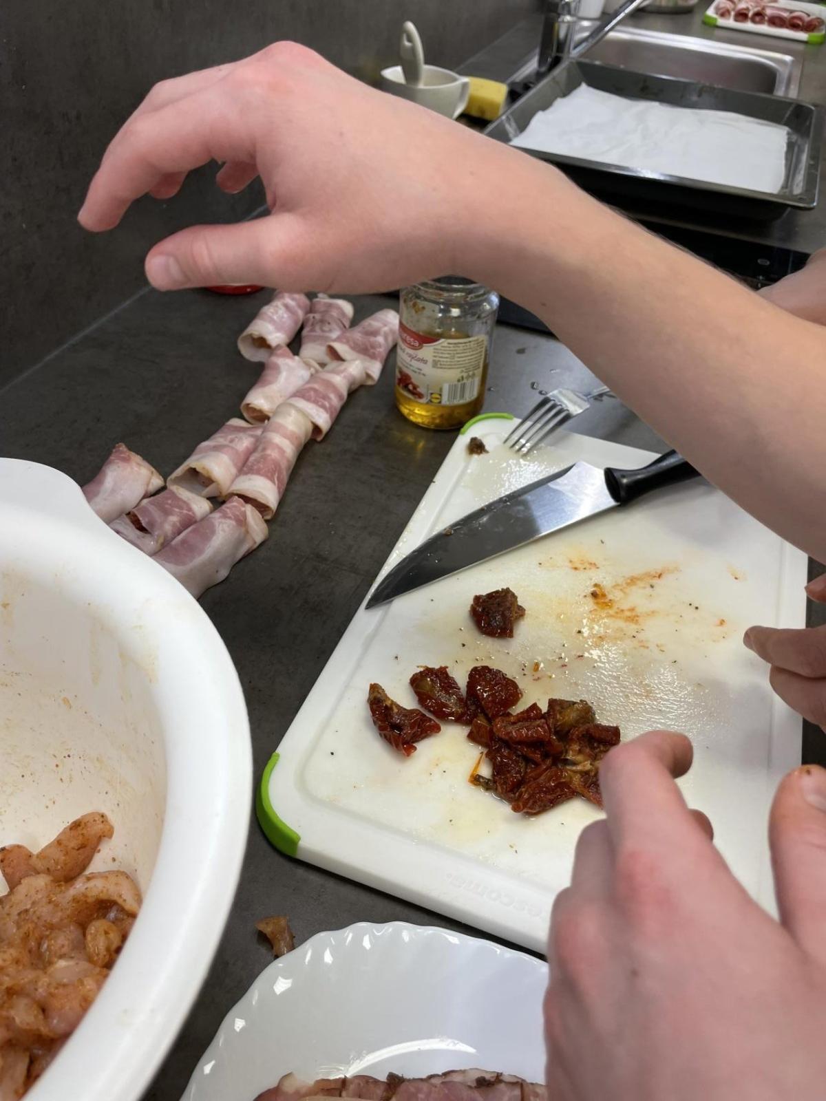Jednoduché, ale na pohled efektivní a velmi chutné pokrmy připravovala dnes skupina dětí třídy 8.B. Fotogalerie vám představí jejich přípravu a hotové pokrmy.
