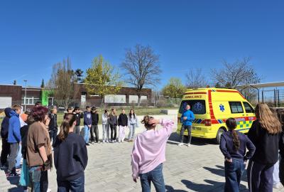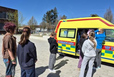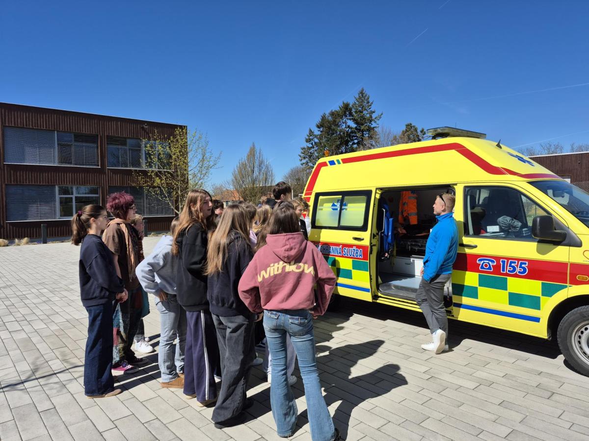 Dnes jsme měli vzácnou návštěvu. Zastavili se u nás členové organizace zdravotníci, kteří s námi probrali zásady první pomoci i základní techniky. Teď už víme, jak vypadá tlakový obvaz, co všechno je v sanitce a nebojíme se ani zavolat na dispečink záchranné služby.
