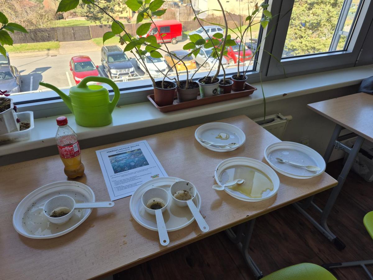 Během hodin zeměpisu a přírodopisu se nám potkalo zajímavé téma – Klimatické změny. Tento velký problém jsme se proto rozhodli prozkoumat na vlastní kůži. Během laboratorní práce došlo na čištění vody, reakci různých materiálů na kyselý déšť nebo počítání času rozkladu různých druhů odpadu. Na závěr jsme přidali mnoho nápadů na řešení těchto i dalších problémů spojených s klimatem.