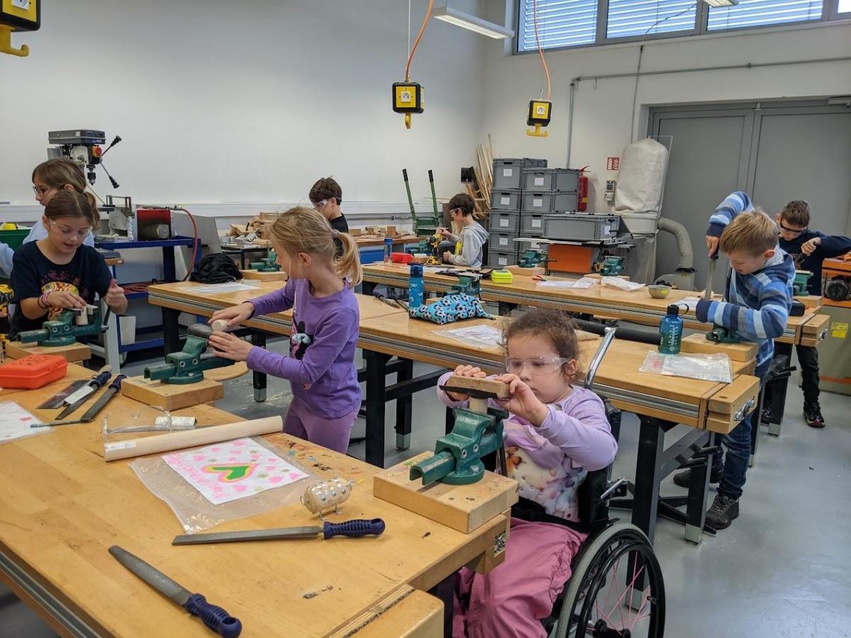 Do dílen se vždycky neskutečně těšíme. Vyzkoušíme si práci s všelijakým pracovním náčiním a pod vedením pana učitele Petra Honzy vždy vzniknou moc hezké výrobky, ze kterých máme ohromnou radost.