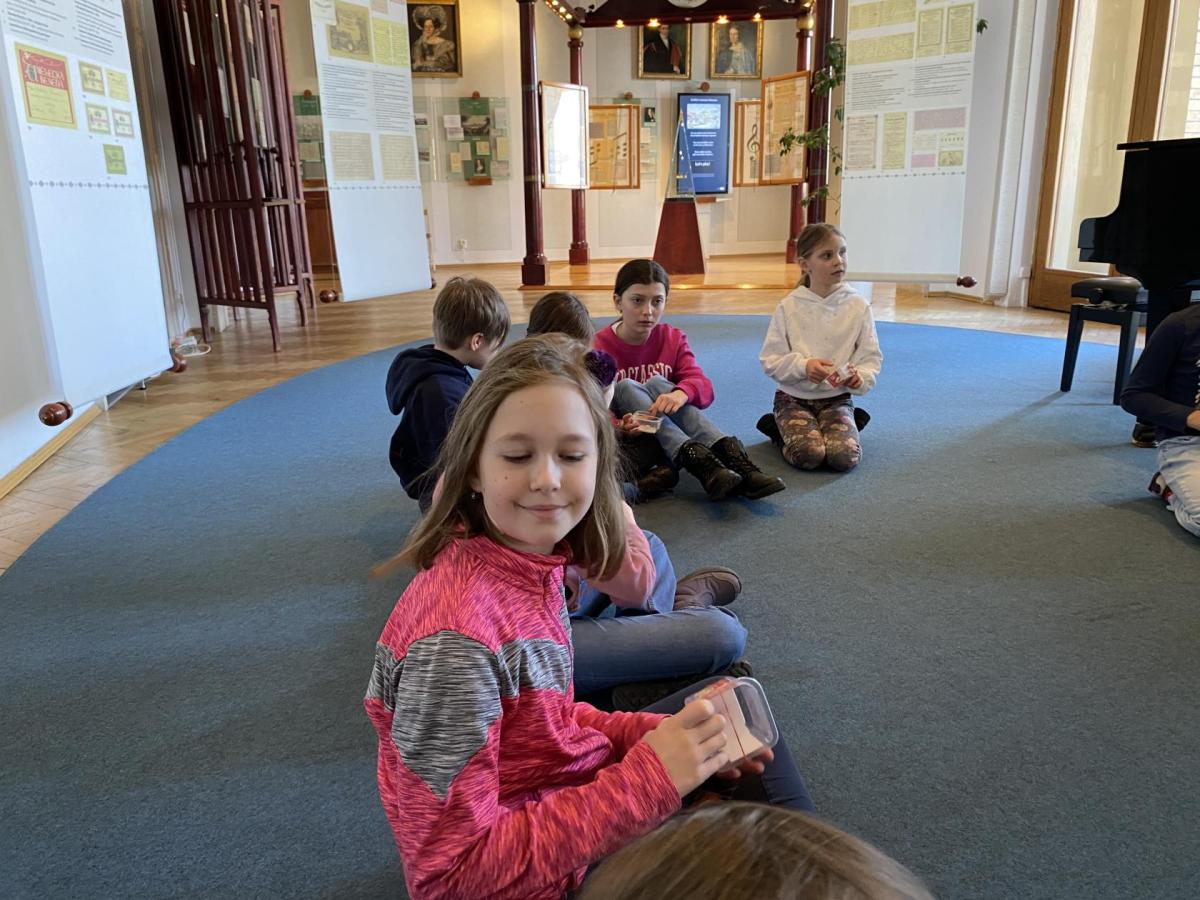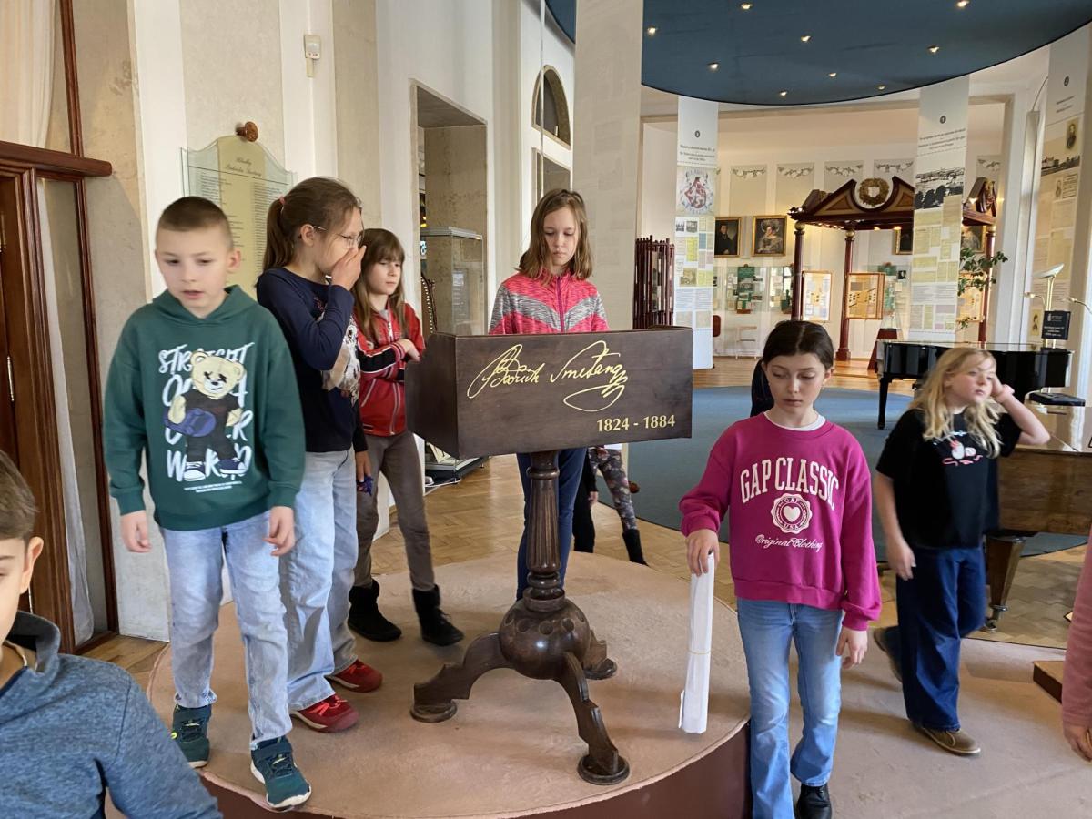 Nejprve jsme se dozvěděli různé informace o skladbě. Poslouchali jsme ukázky hudby a povídali o tom, jak skladatel pomocí tónů popisuje cestu řeky od pramenů až po její tok krajinou. Dozvěděli jsme se také, jak hudba znázorňuje různé scény, například lesy, svatbu na venkově nebo proud řeky. Poté jsme si prohlédli muzejní expozice. Viděli jsme předměty, které Bedřich Smetana skutečně používal - jeho osobní věci, dokumenty a informace o jeho hudební tvorbě. Nejvíc nás zaujalo, jak maličké brýle pan skladatel nosil, a jak nádhernými šperky z českých granátů se zdobila paní Kateřina Smetanová. Návštěva muzea byla zajímavá a poučná. Pomohla nám lépe poznat život a tvorbu jednoho z nejvýznamnějších českých hudebních skladatelů.