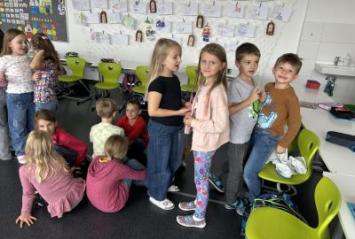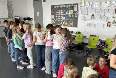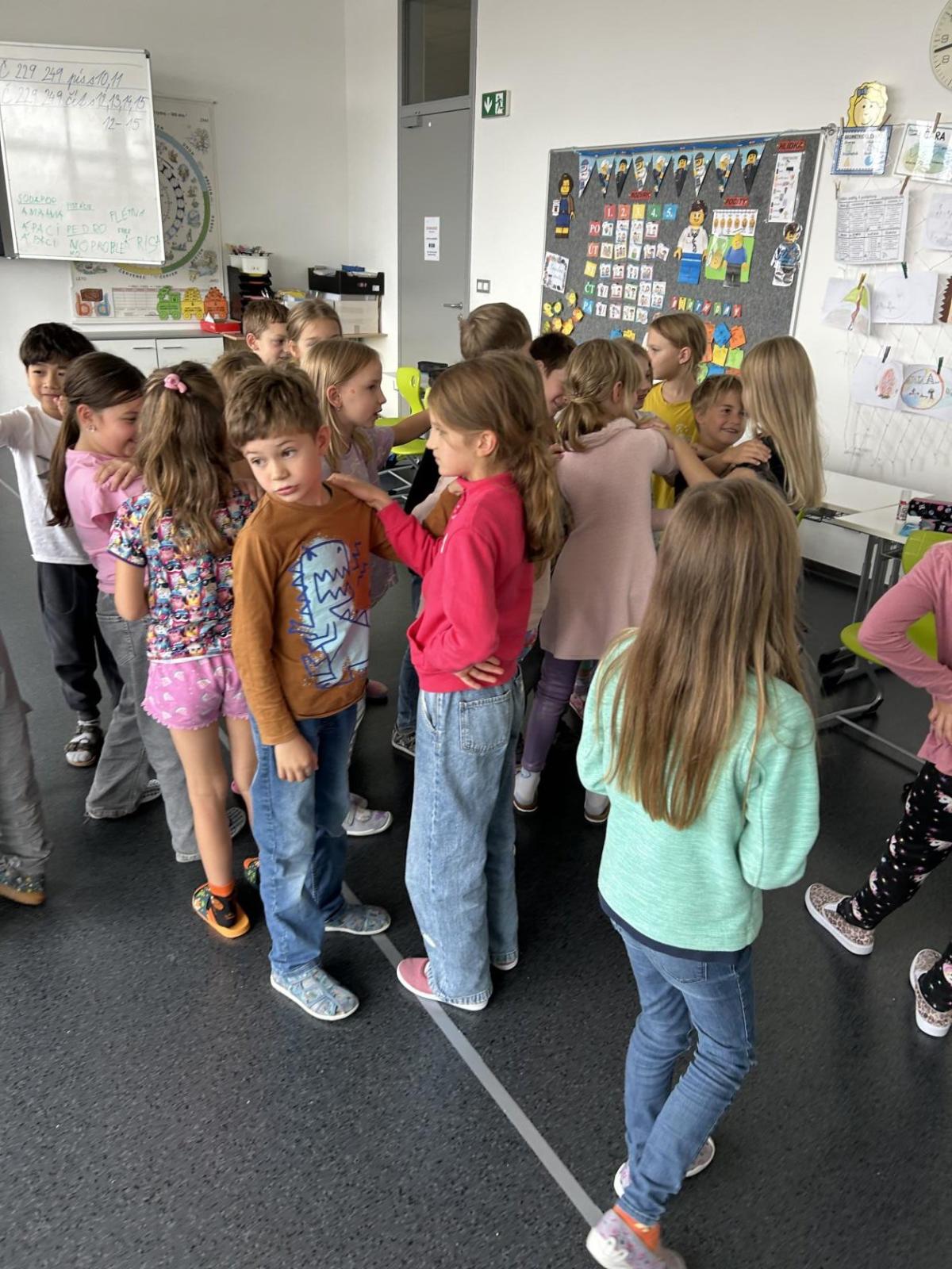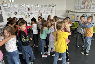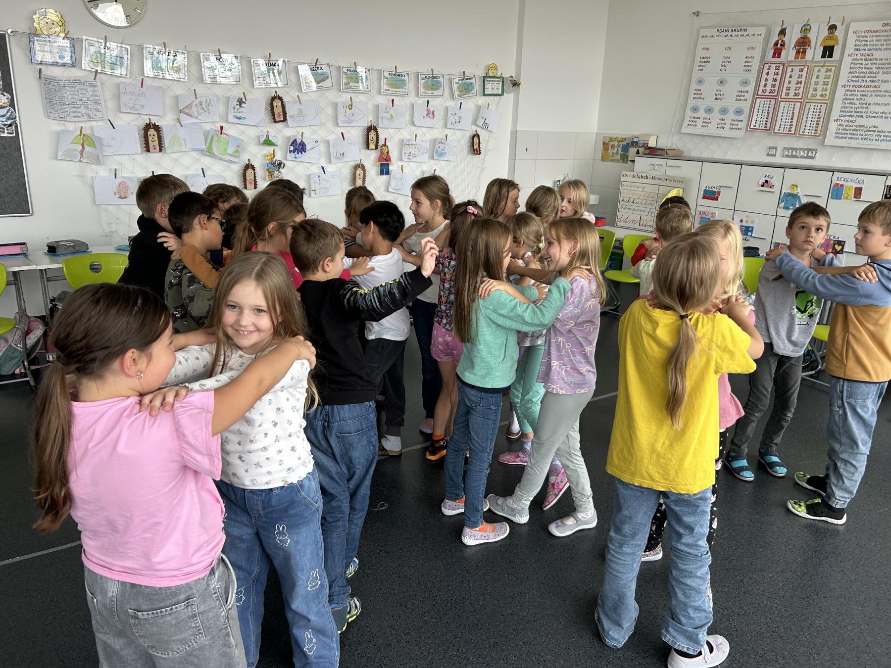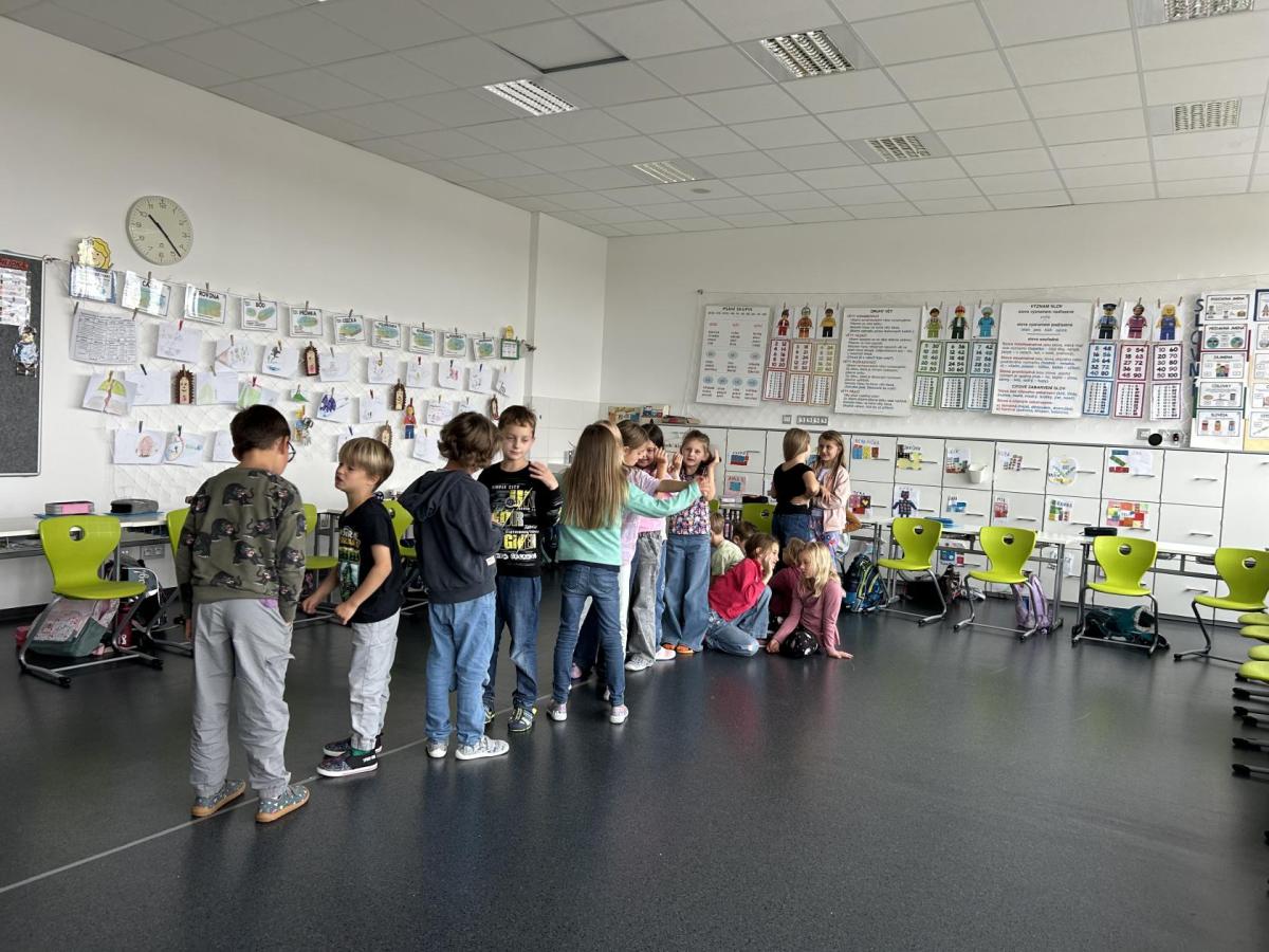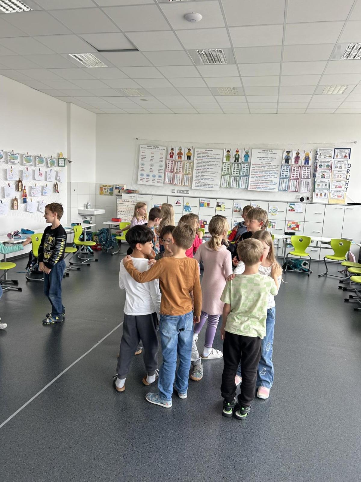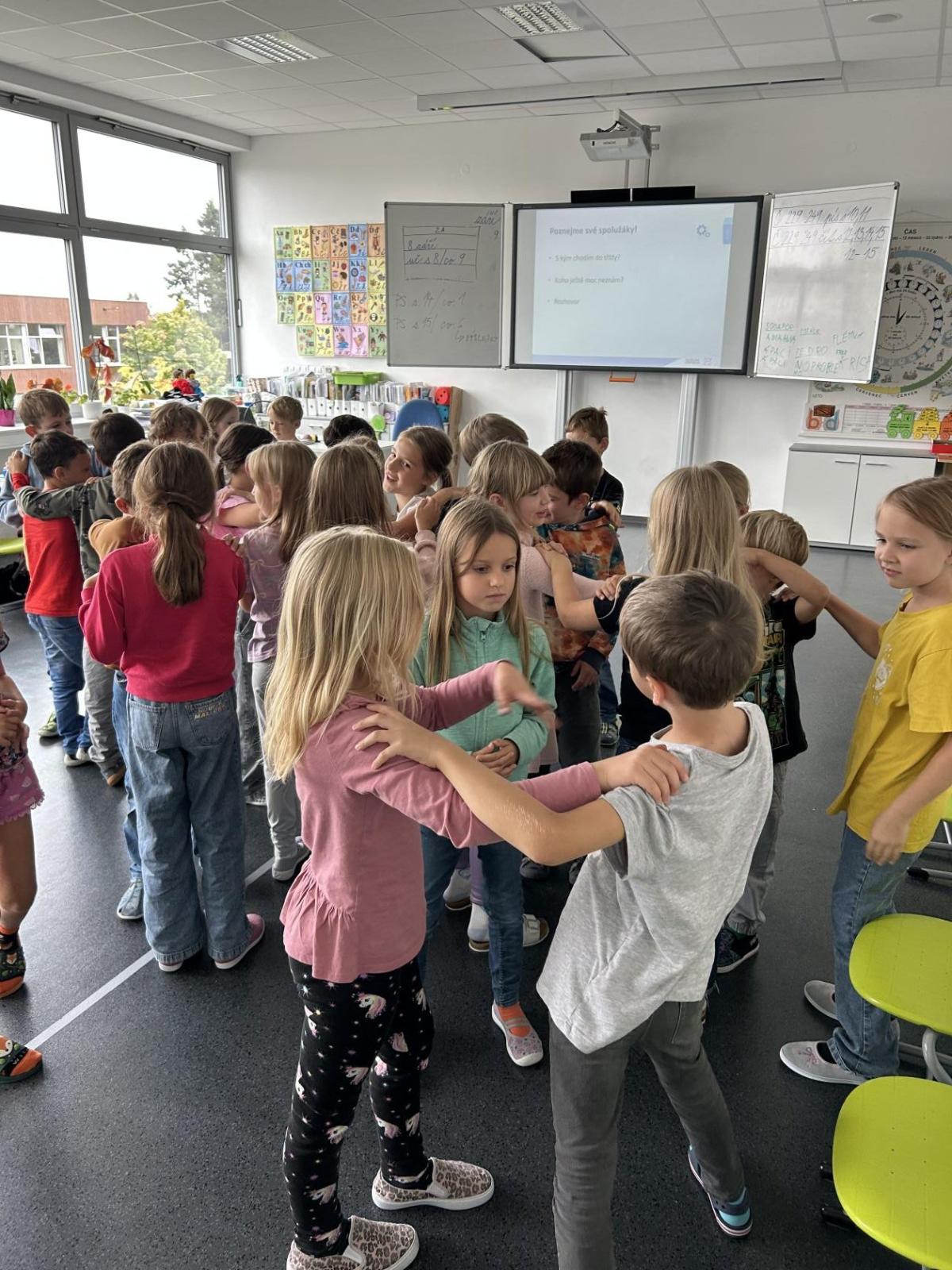 V další části jsme se snažili poznat lépe spolužáky, se kterými se ještě tolik neznáme. Žáčci si povídali o svých zájmech a hledali tím nové věci, které mají společné.