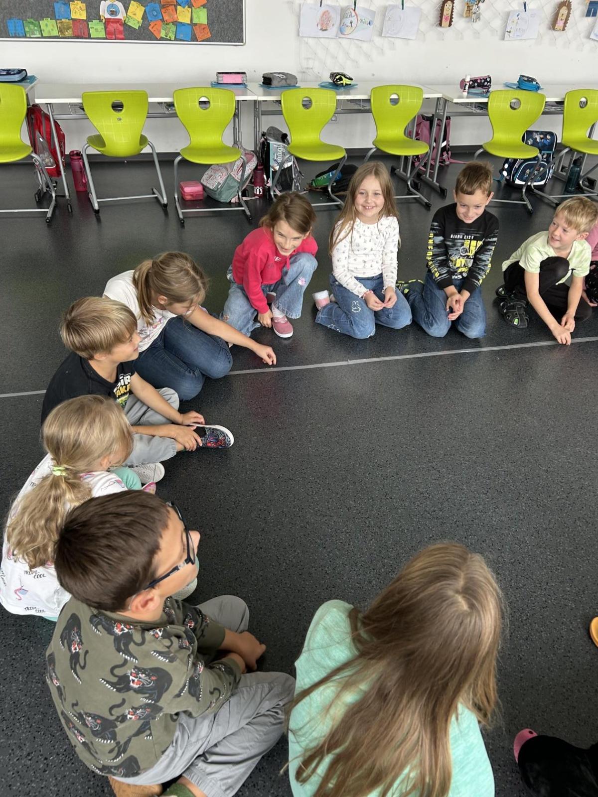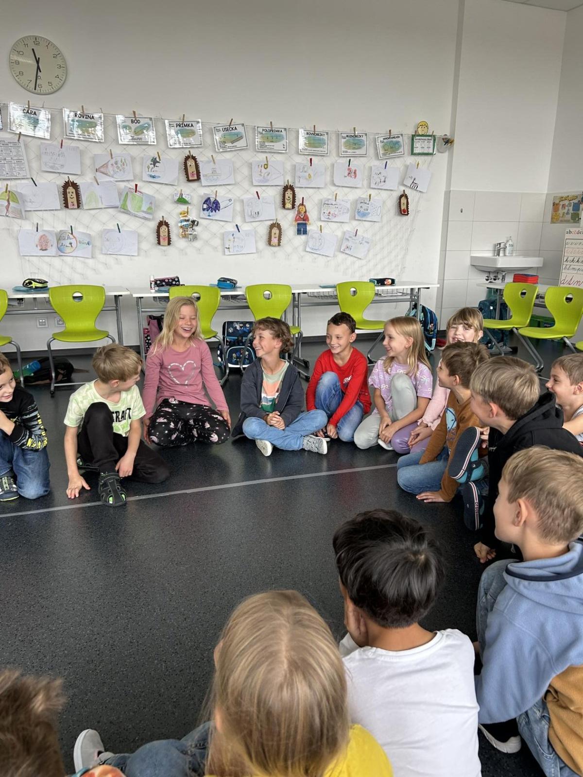 Postupně jsme se dostali k různým pocitům, jež máme ve škole. Začali jsme si povídat o tom, jak vypadá pozitivní atmosféra ve třídě a proč je důležité, aby se každý cítil bezpečně. Společně jsme si vysvětlili, co je to program KiVa a že nám má pomoci k tomu, aby byla škola místem, kde se nikdo nemusí bát a kde se k sobě chováme s respektem.